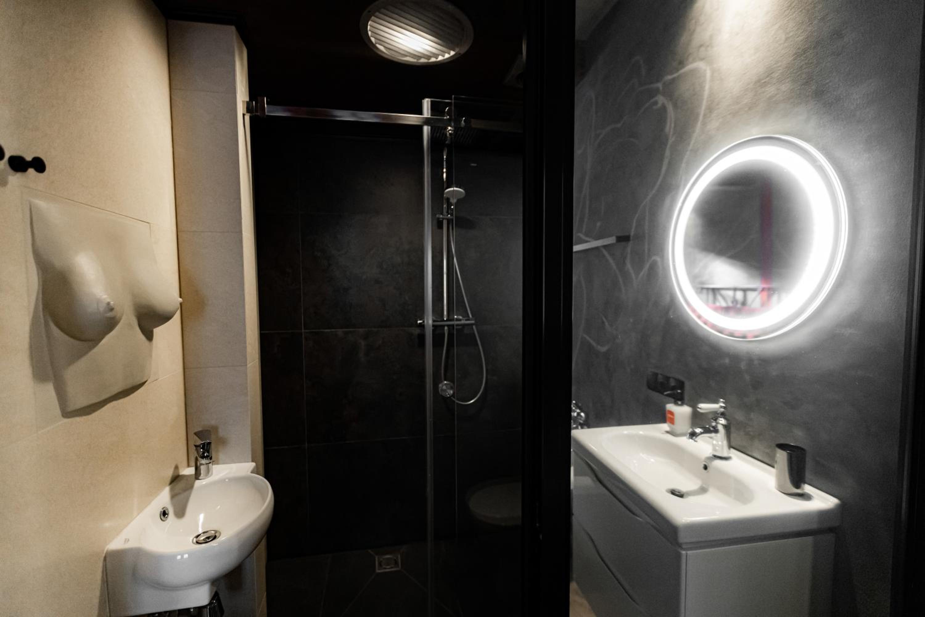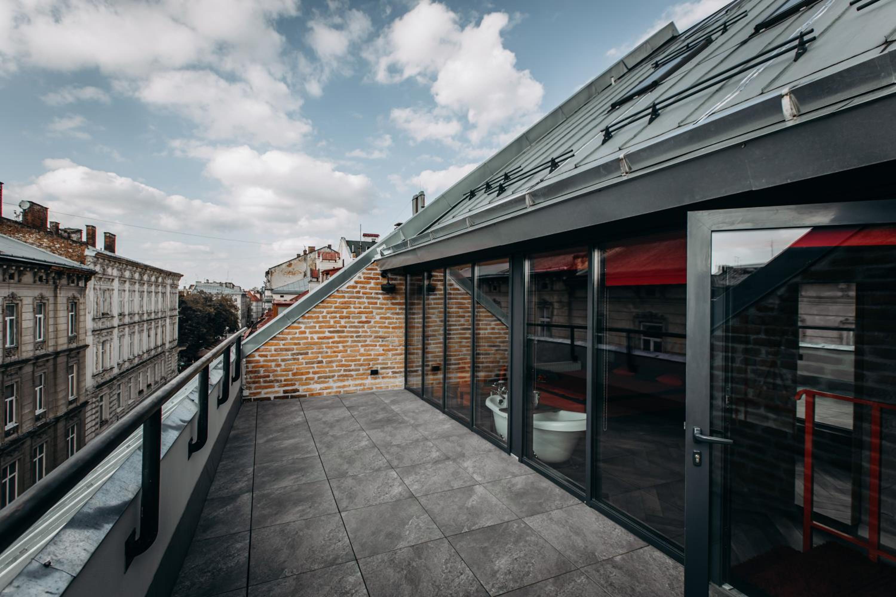 Hotel dla mnie przereklamowany.Stare wyposazenie.To jednak hotel 4* a prysznic i toaleta zniechecala do korzystania.Stare popekane kafelki,grzyb i brudne fugi.Koszmar.Oswietlenie pokoju wieczorem-super,klimatyczne,ale jeszcze czlowiek chcialby funkcjonowac normalnie,chociazby spakowac walizki to brak normalnego swiatla.Na cztery male reflektorki,dwa nie swiecily!!!Sejf kazdy moze wziasc do reki i wyisc.Nie przymocowany i brak mozliwosci zamkniecia.Podloga cala w piasku,nie sprzatane.Bylem dwie doby,sprzataczki nawet nie ooroznily kosza.Brak mozliwosci ustawienia indywidualnie temperatury/klimatyzacji!!!Brak w pokoju cennika minibaru!!! Slabe sniadanie,ktore trzeba zjesc w polmroku,nie widzac co jemy.Bardzo slabo wyciszone drzwi.Nie dostalismy Proseco,nie dostalismy darmowych drinkow.Niby za wypelnienie ankiety,ale nikt nic nie powiedzial,a nie pytalismy,bo nie zalezalo nam zbytnio.Pokoj dostaje sie dokladnie o 14..Brak mozliwosci wczesniejszego zameldowania.W pokoju tylko krzyz erotyczny przy scianie,z wypadajacym lancuchem i jeden wysluzony pejcz na scianie.Nic poza tym.Personel srednio uprzejmy.Bez dzien dobry,do widzenia…Wpatrzony w ekran telefonu.Do tego dosc wysoka cena,jak na Lwow i standard hotelu.Ogolne rozczarowanie.