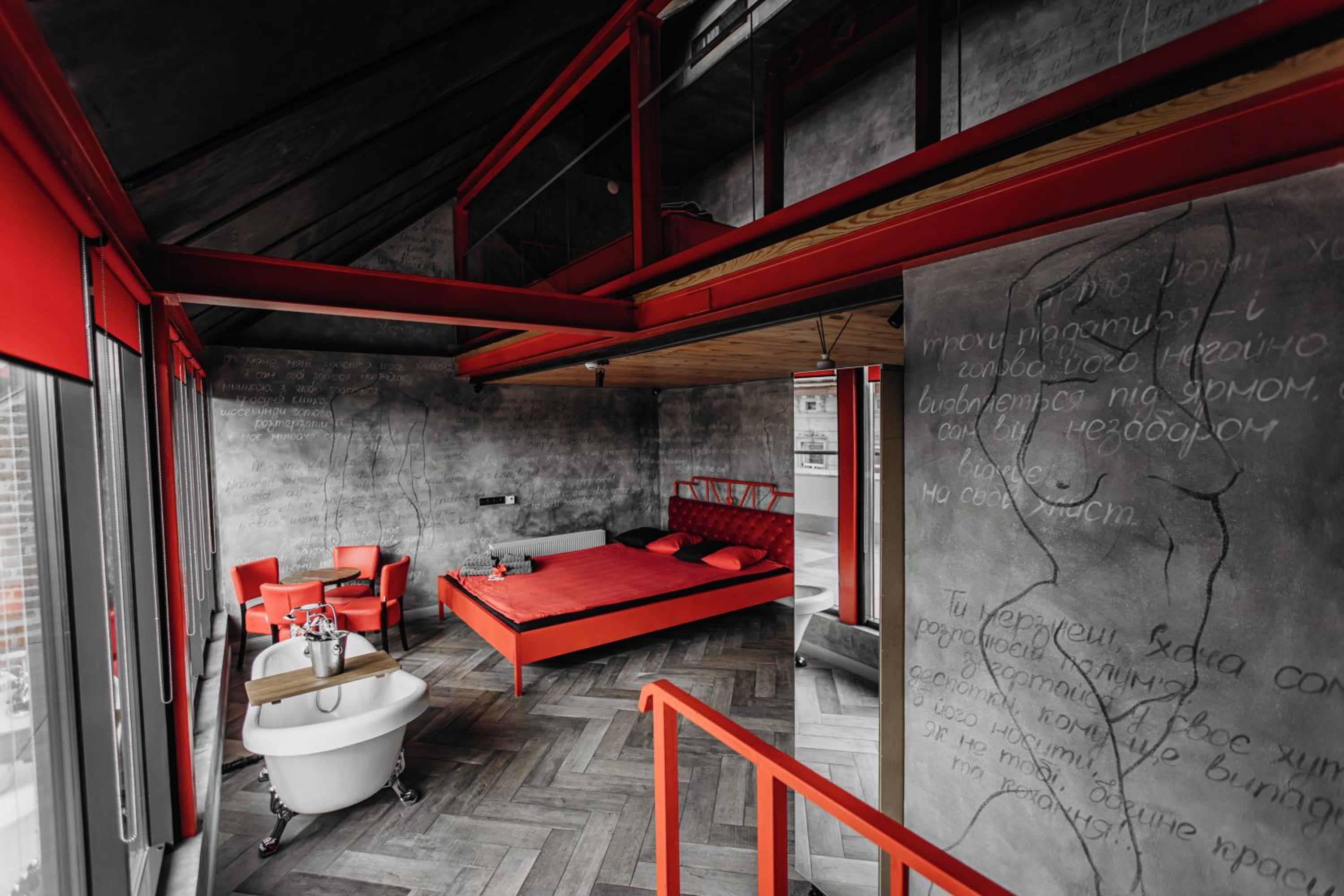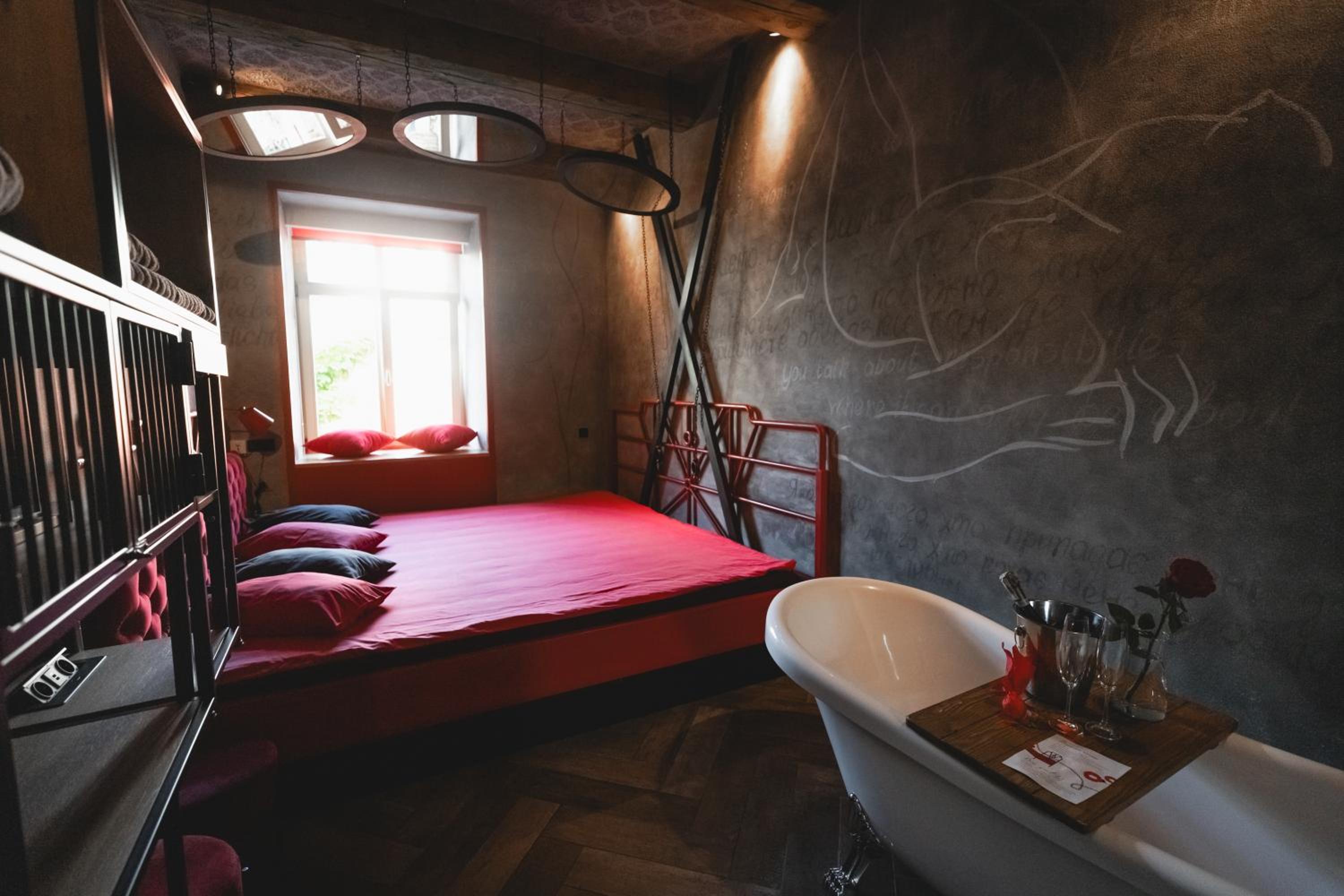 Відмінне розташування, цікава концепція закладу. Ванна в кімнаті і 2.4м ширина ліжка просто вау