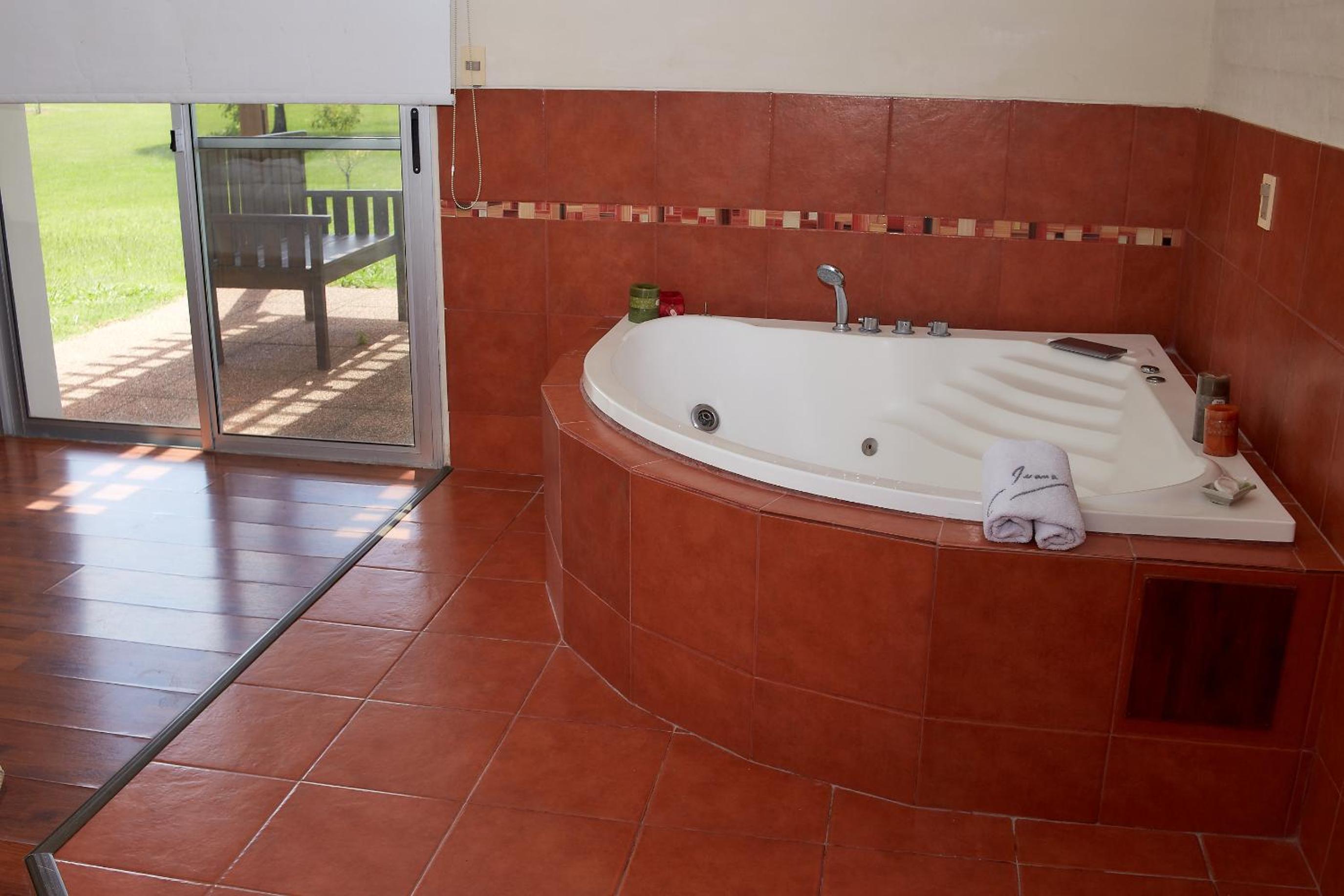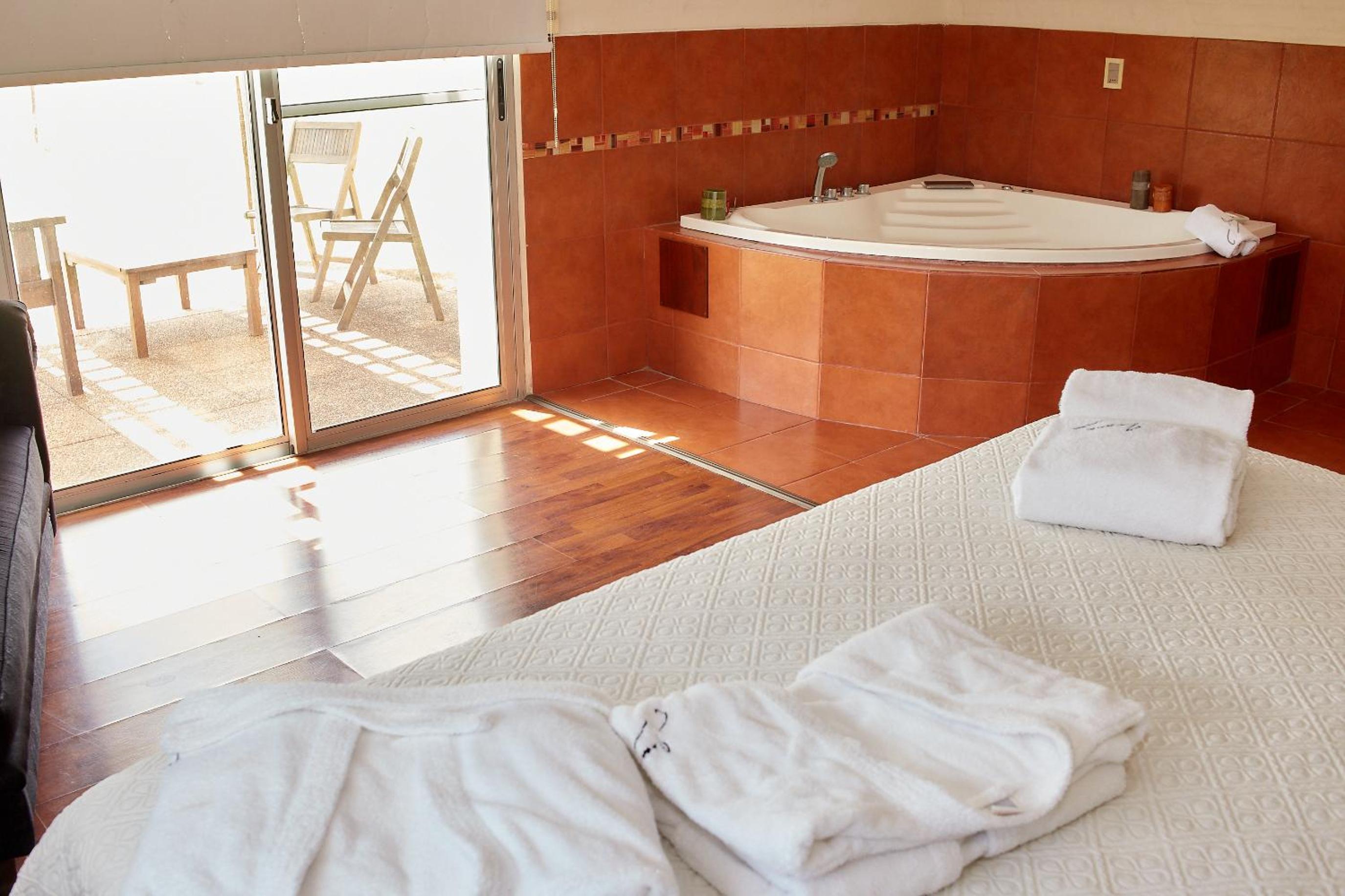 The rooms at Juana de Ibarbourou are elegantly decorated with parquet floors and exposed brick walls, offering a cozy ambiance. Guests can enjoy picturesque views of the garden from the large windows in the rooms.