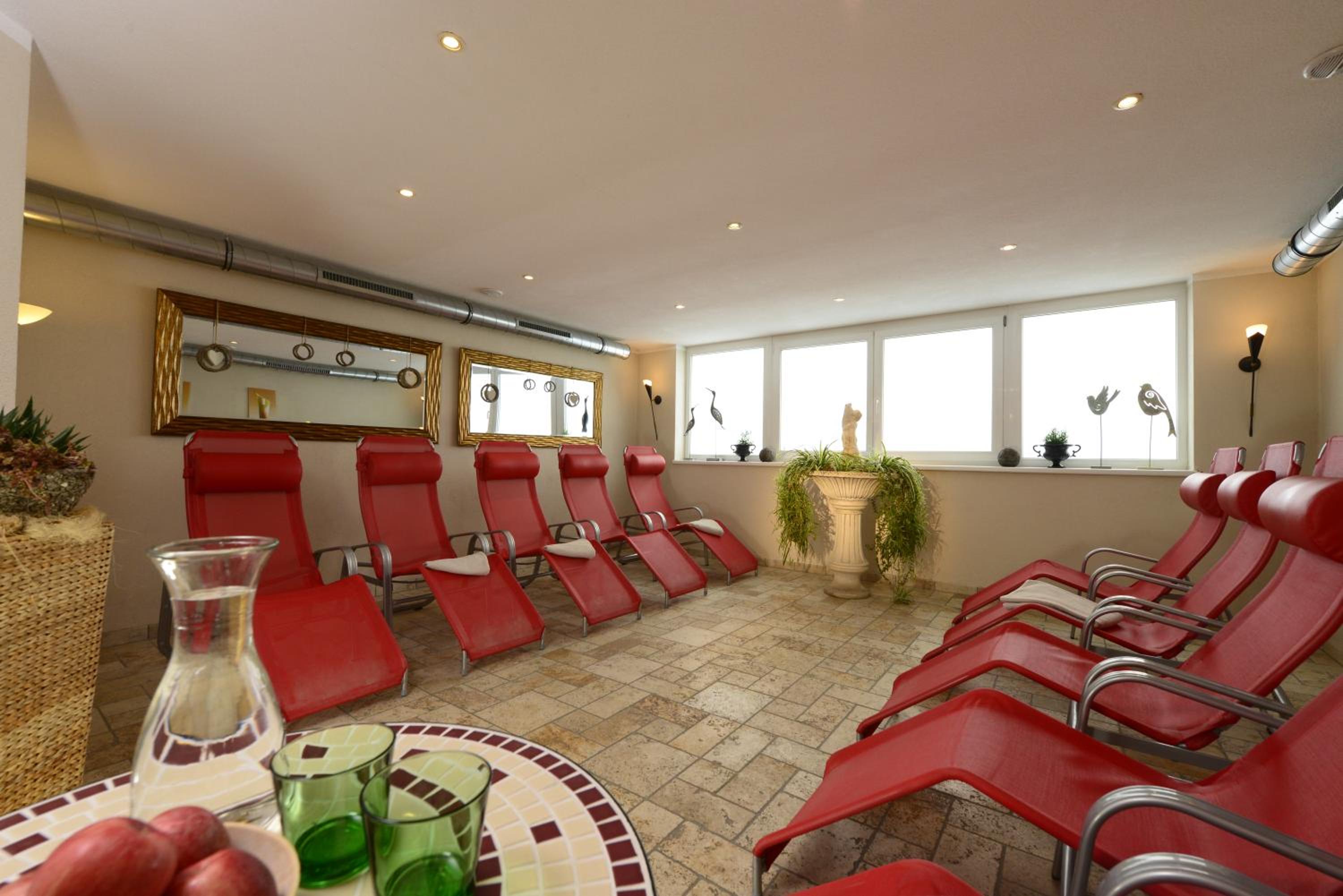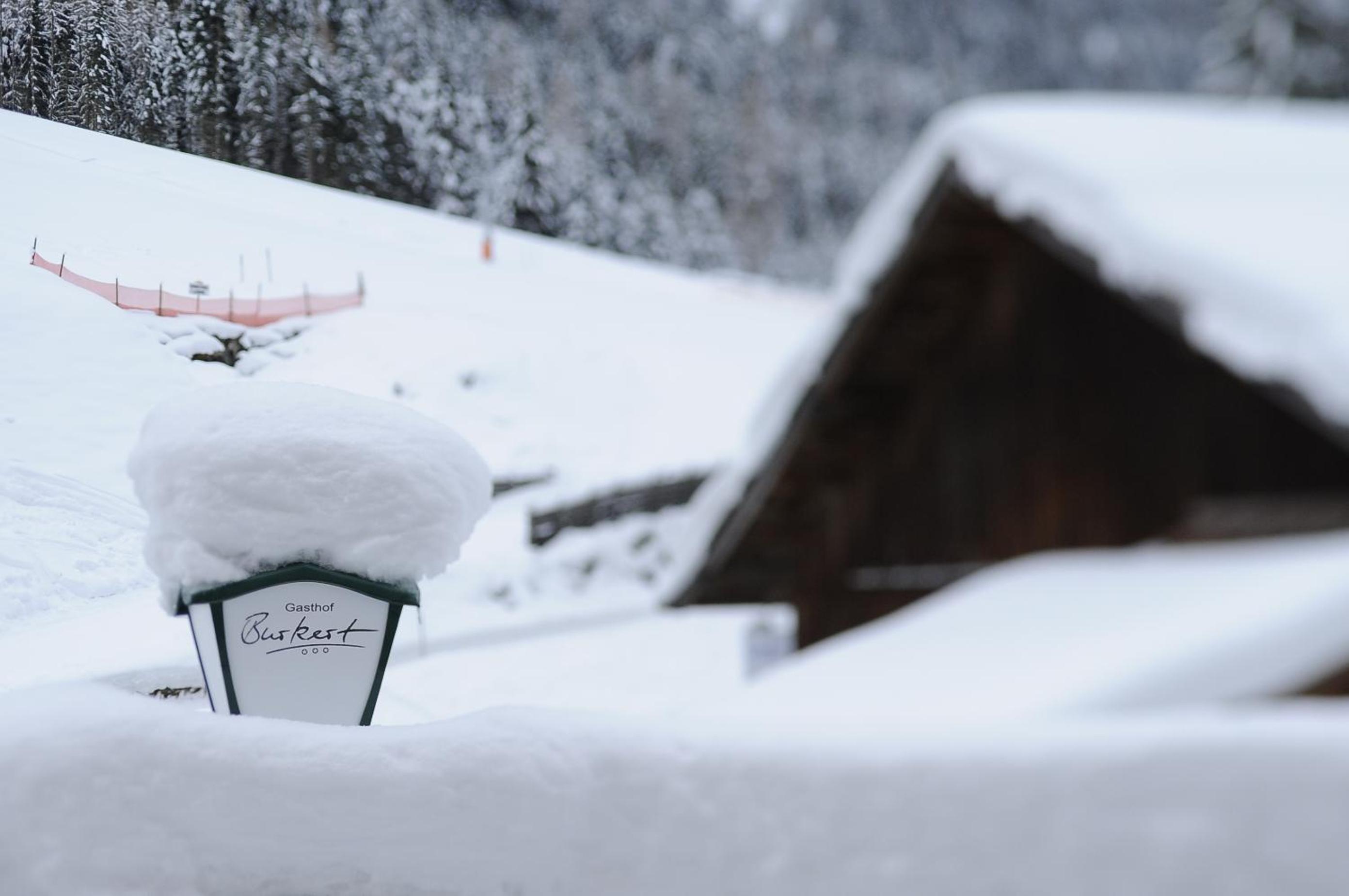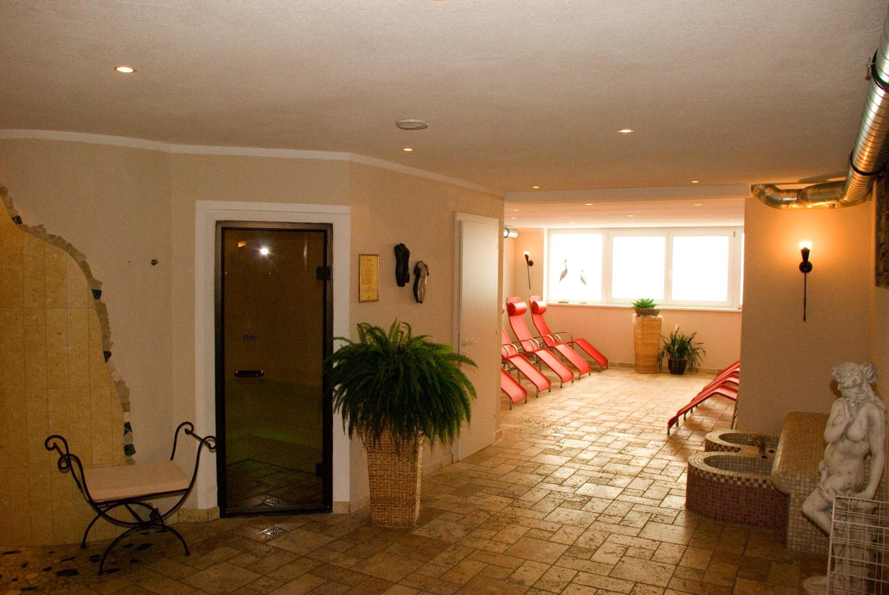 Indulge in relaxation at Gasthof Burkert's spa area featuring multiple saunas and convenient ski-to-door access, perfect for winter enthusiasts.