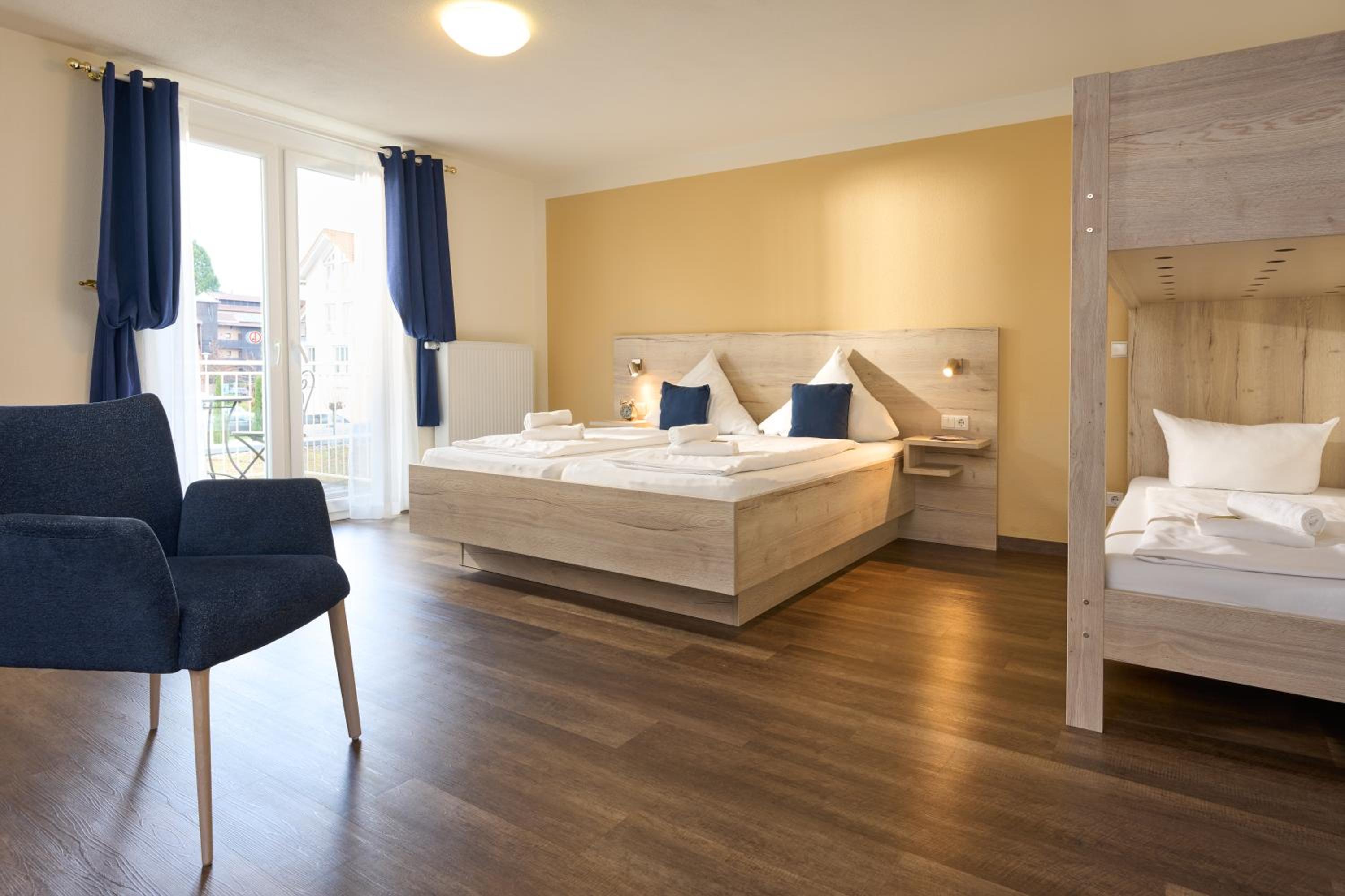 Chambre familiale spacieuse, petit déjeuner copieux et variés avec des produits de qualité, parking offert par l'hôtel pour Rulantica