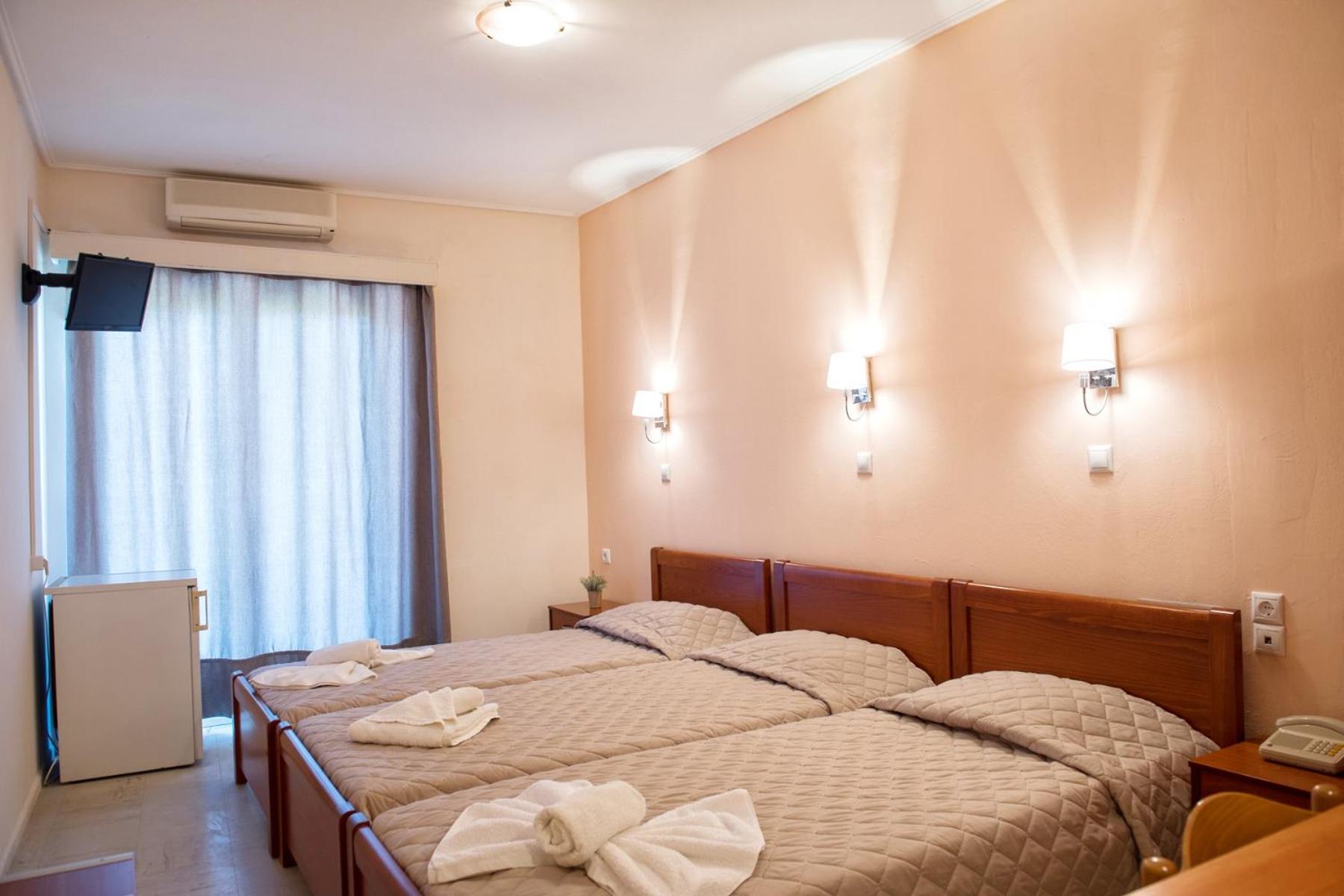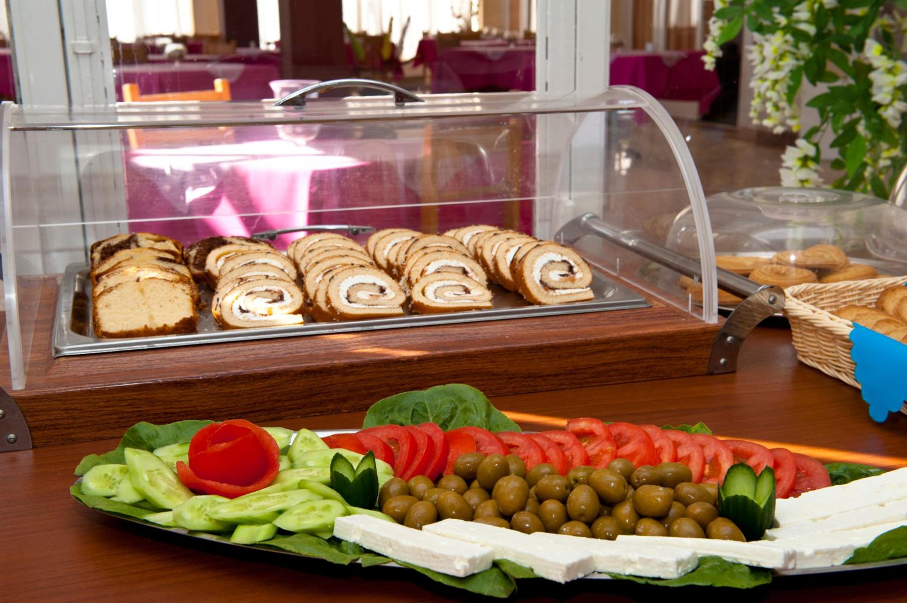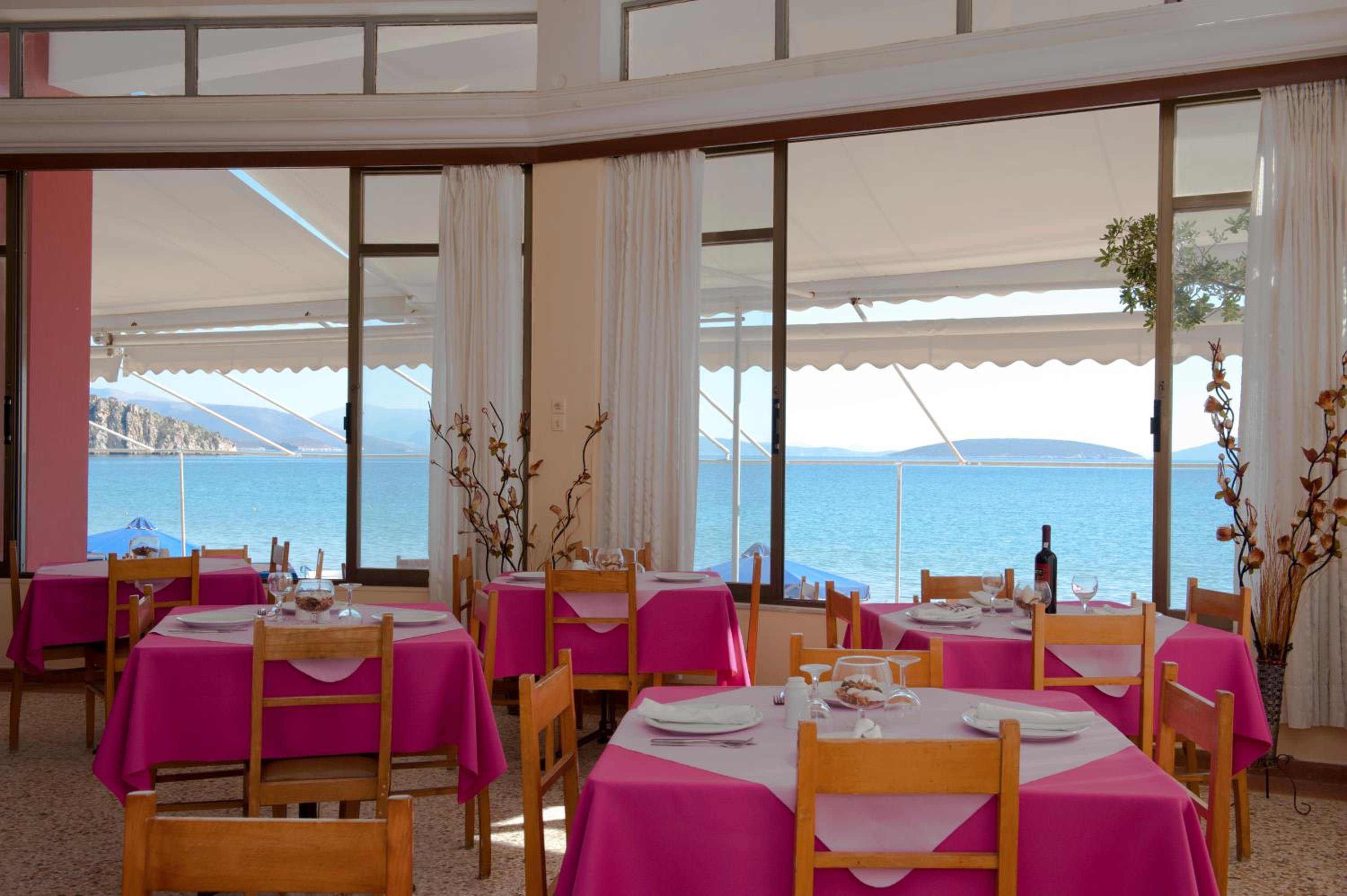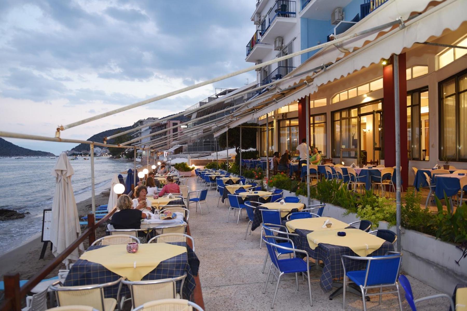 Indulge in traditional Greek cuisine at the on-site restaurant, offering buffet-style breakfast and delicious Greek dishes for lunch and dinner. After a day at the beach with provided umbrellas and sun loungers, unwind with a coffee or drink at the bar.