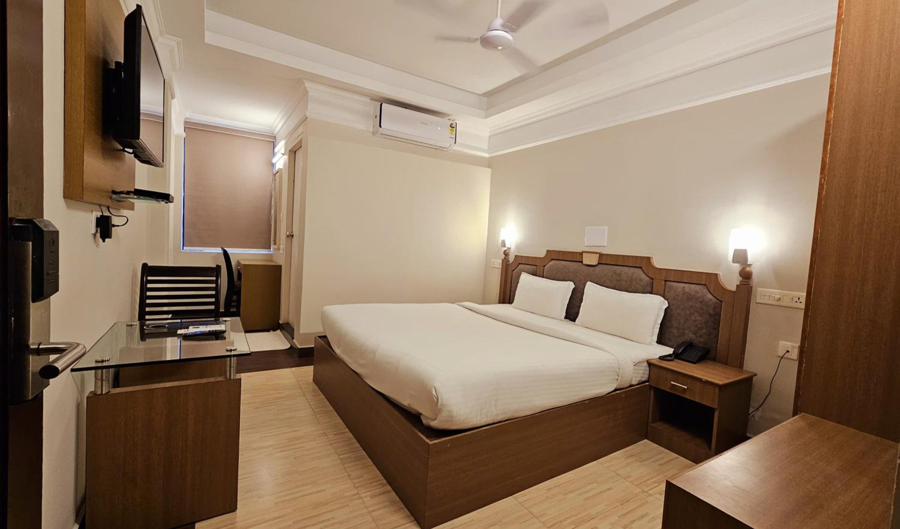 Royal Residency in Kochi offers elegant rooms equipped with modern amenities including flat-screen TVs, air conditioning, and free Wi-Fi. The private bathrooms come with complimentary toiletries, ensuring a comfortable stay for guests.