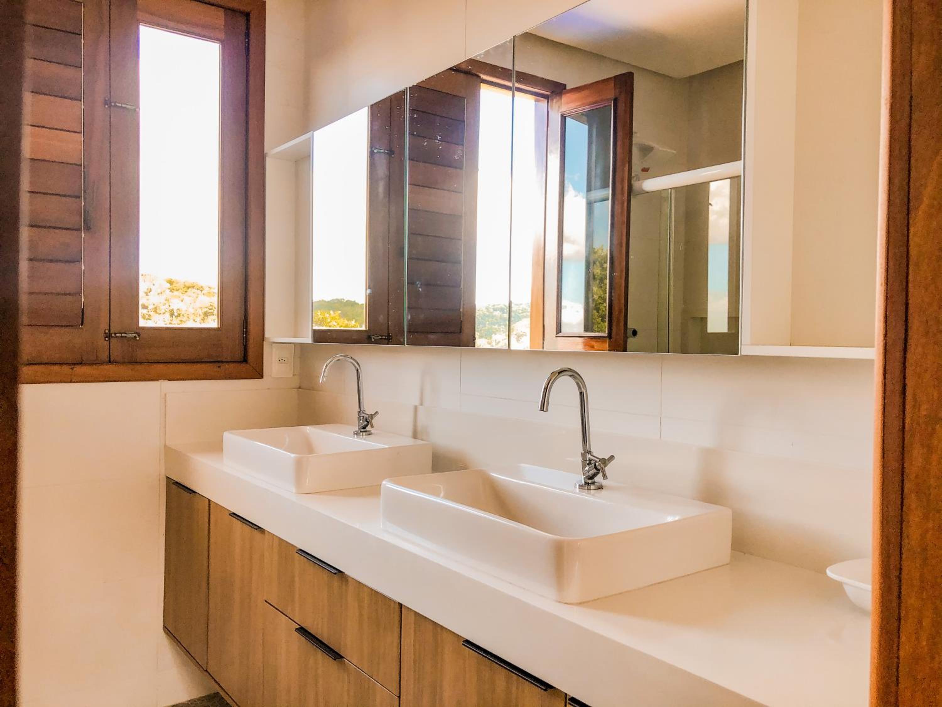 Camas, iluminação e banheiro