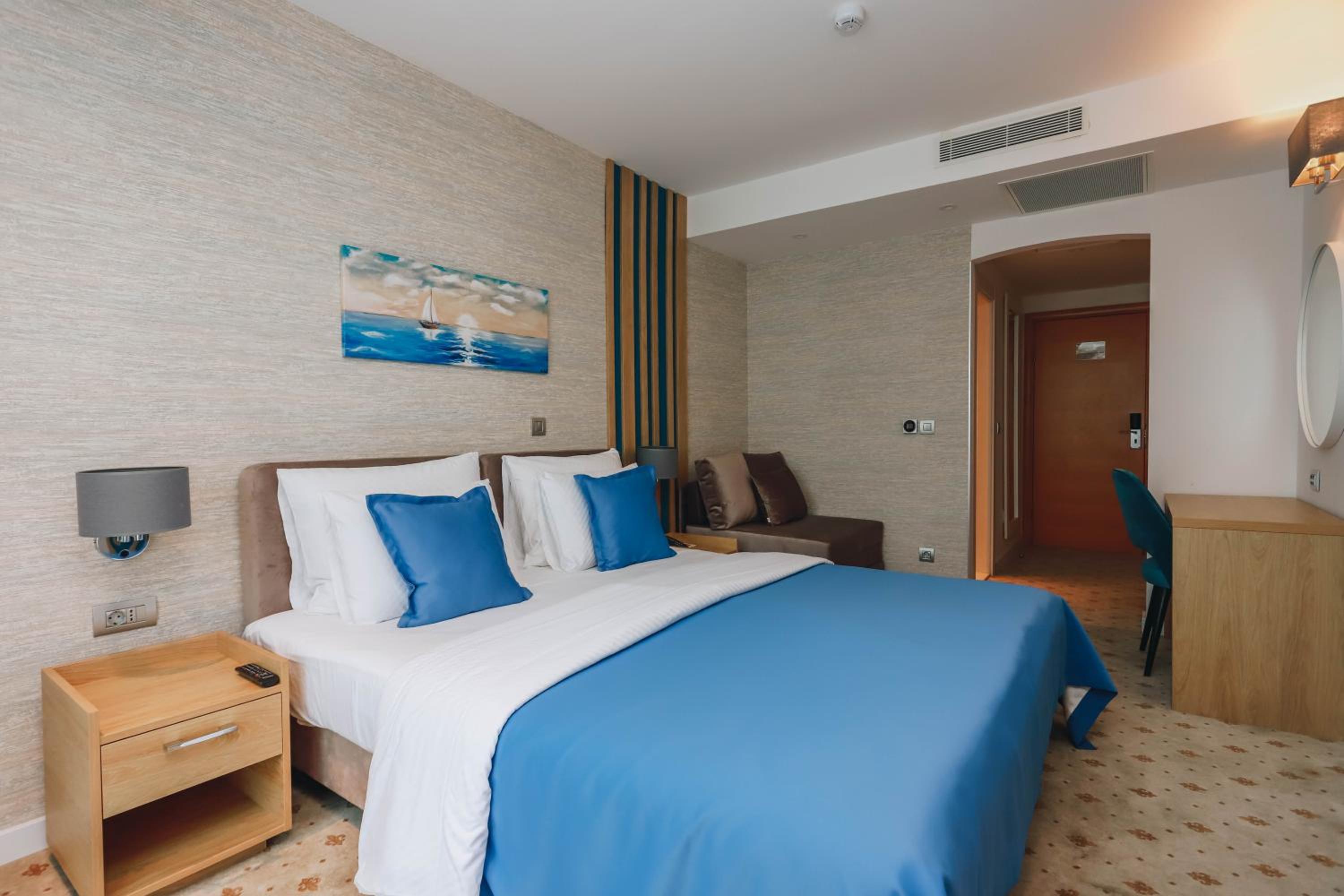 The bright rooms feature cable TV, minibar, and safe, with a private bathroom equipped with bathrobe and toiletries. With free private parking and an on-site night club, Hotel Montenegro ensures a convenient and enjoyable stay.