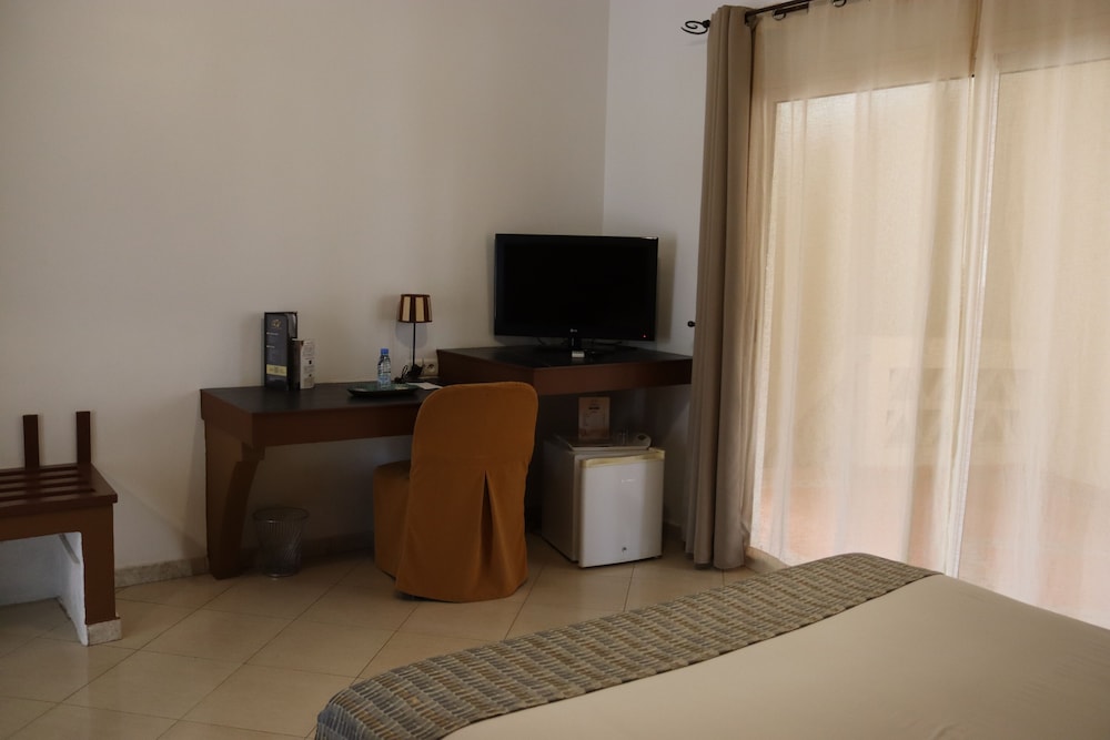 This airport is sometimes described as an airport hotel but, be warned, it is next to the old, little used Dakar airport and nowhere near the new international airport. That said, it does have quite a good location, close to the beach and the road which runs around the coast of the city centre promontory. I arrived late evening and was required to pay the room rate immediately. The reception's card machine wasn't working and I was taken next door to the casino to pay in advance. The next day, I had to pay for a breakfast time coffee and, again, the card machine was useless. They were keen for a cash payment but I had no CFA, they had no small change Euros. Eventually, they settled on US$ 4 ....for a small coffee. In fact, this is rather an overpriced hotel. The general style of the place is nice and the rooms are workable without being pleasant. The windows had fly screens but there were no mosquito nets....and, admittedly, I didn't see any mosquitoes. The plumbing all worked OK.