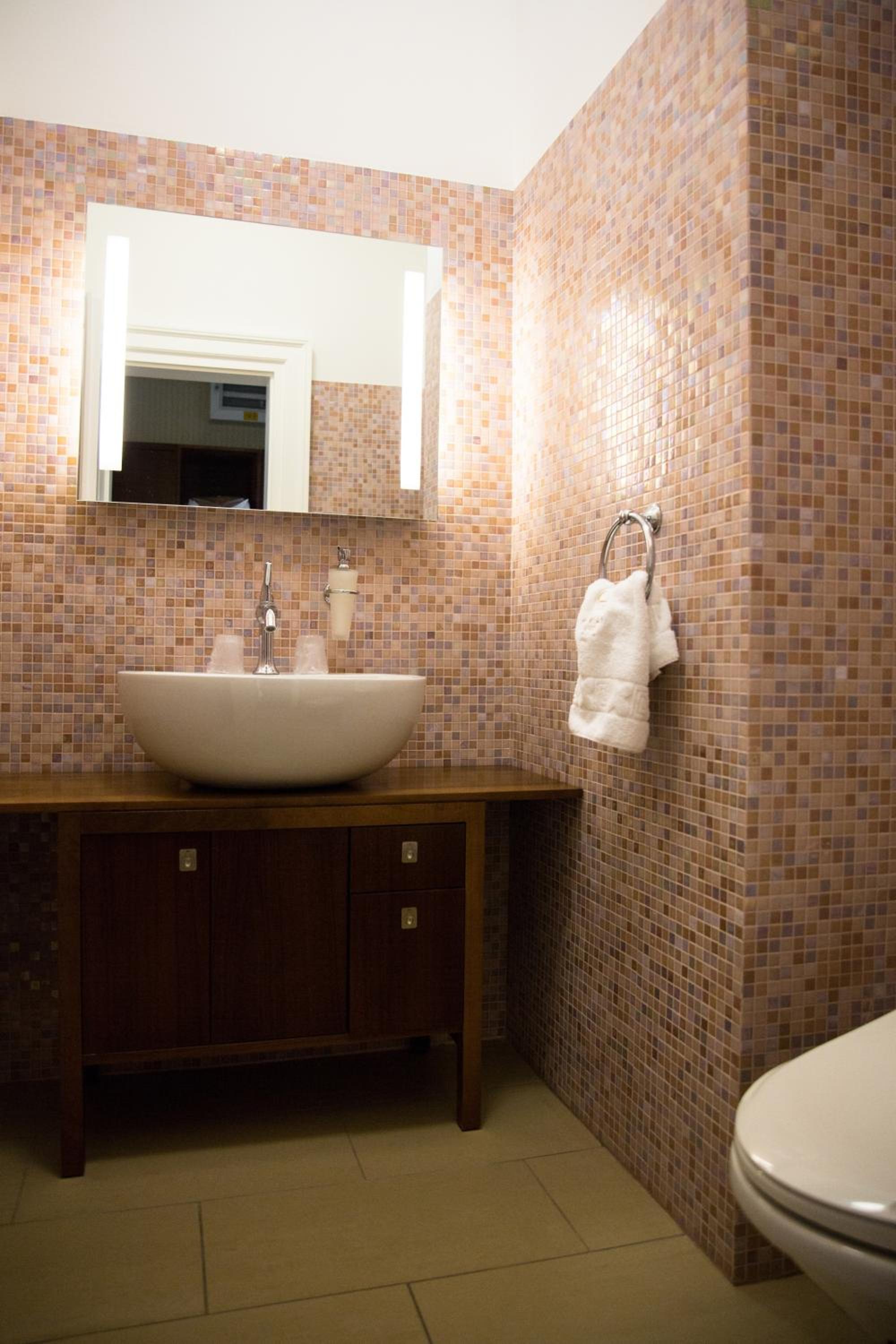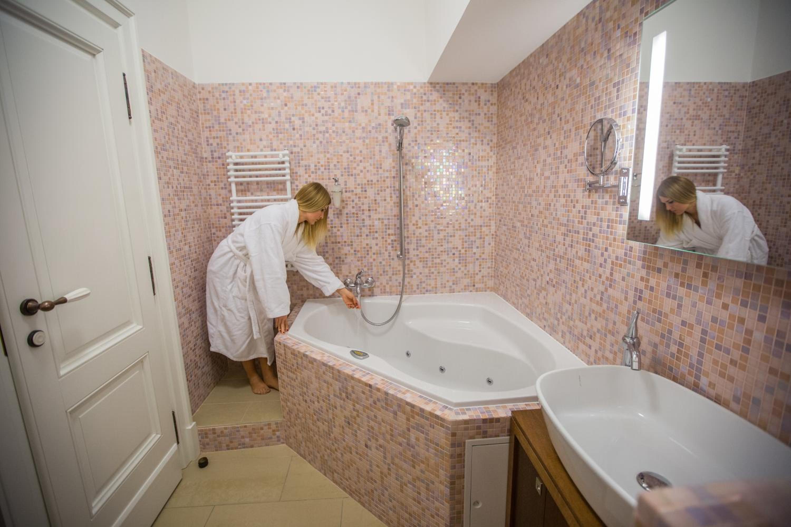 A legnagyobb gond (amit sajnos több wellness hotelben megtapasztaltunk már), hogy télen nagyon meleg van a szobában. A szobában (volt helyi hőmérő) végig 26 fok volt, a meleg alulról jött (előszoba és fürdőszoba alól) a nem megfelelően szigetelt vízvezetékekből. A termosztát ki volt kapcsolva (a hűtés érdemben nem működött, de abszúrd is lett volna februárban a túlfűtött szobát megpróbálni "visszalégkondizni"), az ablakot nem lehetett nyitva hagyni, mert este füst volt kint. Maradt az unortodox megoldás: nyitva hagytuk éjszakára a szoba ajtaját, hogy legalább a folyosóról jöjjön be egy kis levegő...Egyébként ez egy általános helyzet lehetett, mert szoba csere után voltunk, a másik szobában először 27 fokot mutatott a hőmérő amikor megérkeztünk. Szobát azért kellett cserélni, mert a fürdőkádban benne hagyta a karbantartó a glett maradékokat. Ezt egyébként nem hoztuk volna fel, mert a recepción segítőkészen rögtön intézkedtek. Kisebb hiányosság, hogy az ablakfelület egy kicsit kicsi a szoba méretéhez képest. Az étteremhez ki kell menni pár métert a régi épülethez, de ez nem jelentős probléma.