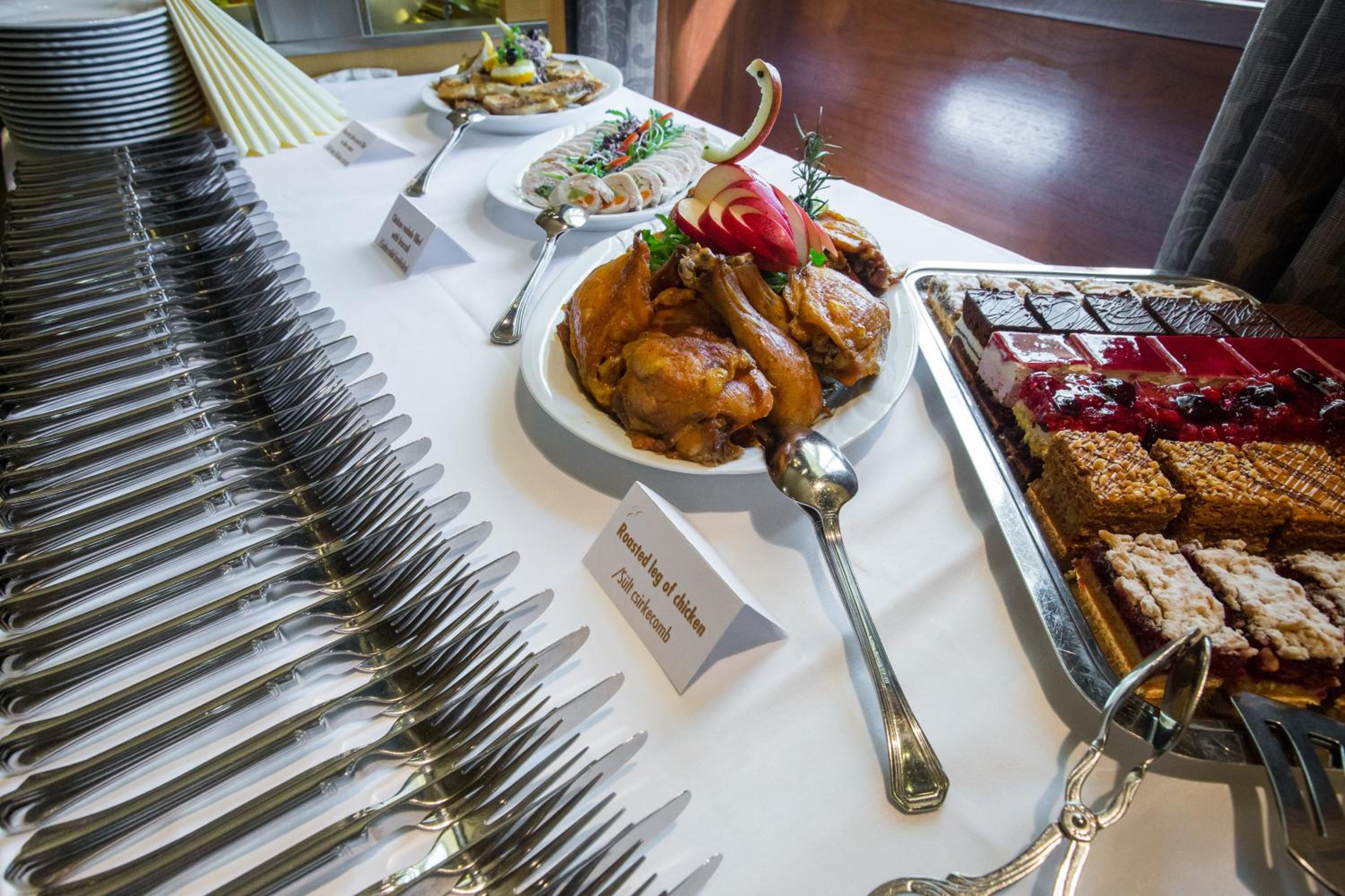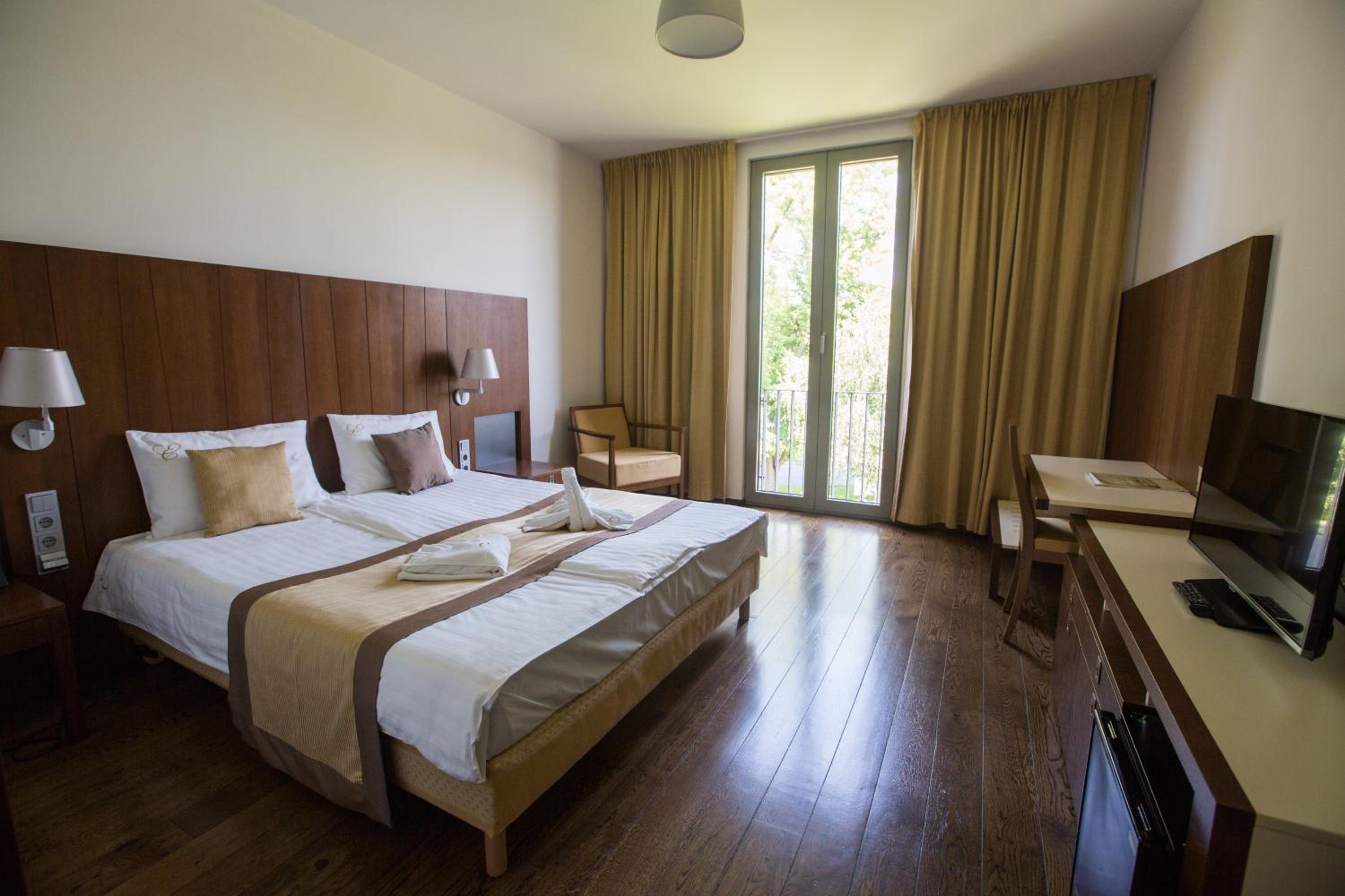 Indulge in the comfort of air-conditioned rooms with spacious bathrooms and modern amenities like free wired internet and a flat-screen TV. Start your day with a delicious buffet breakfast and savor Hungarian and international cuisine for dinner at the Erzsébet Restaurant.