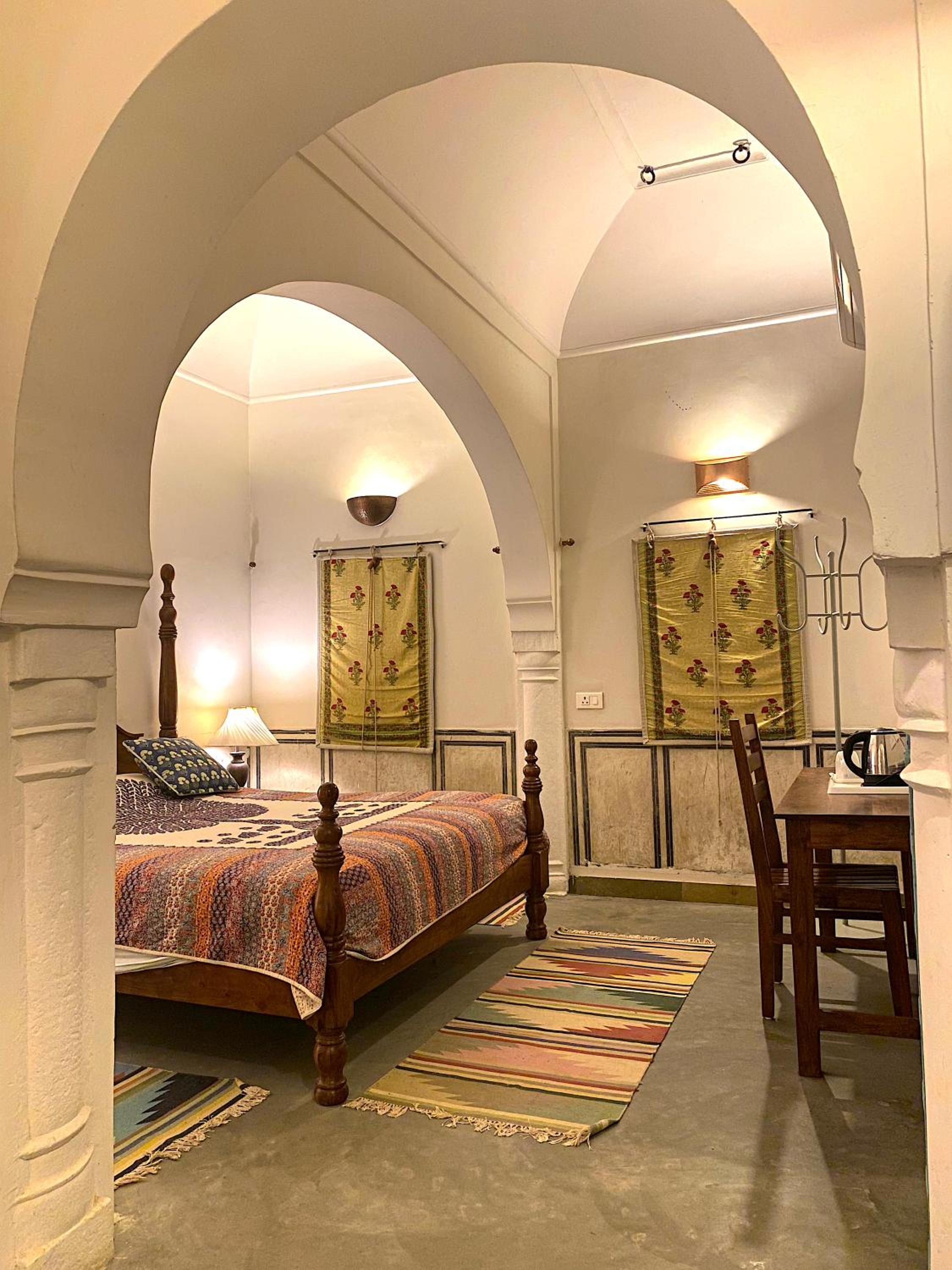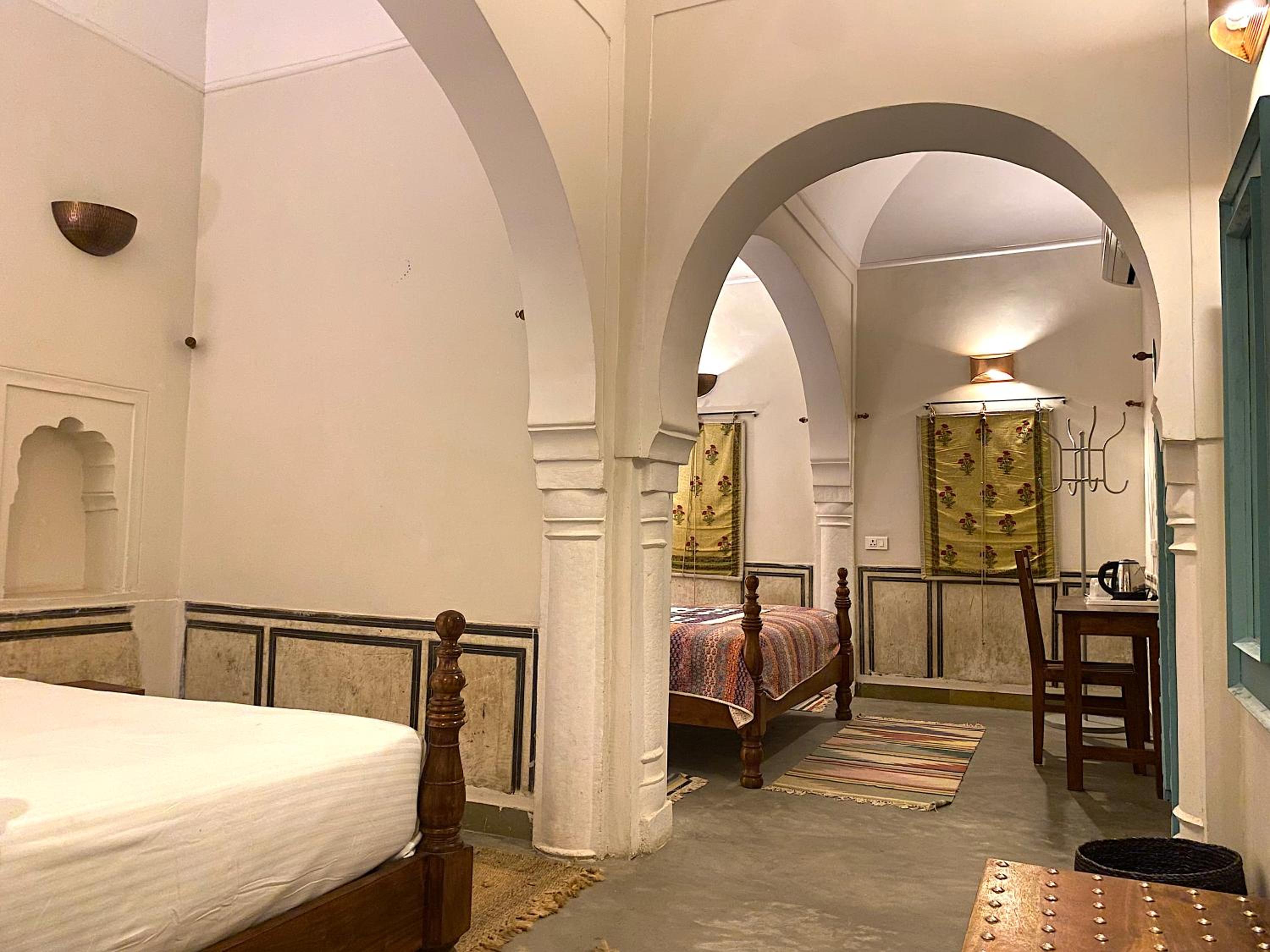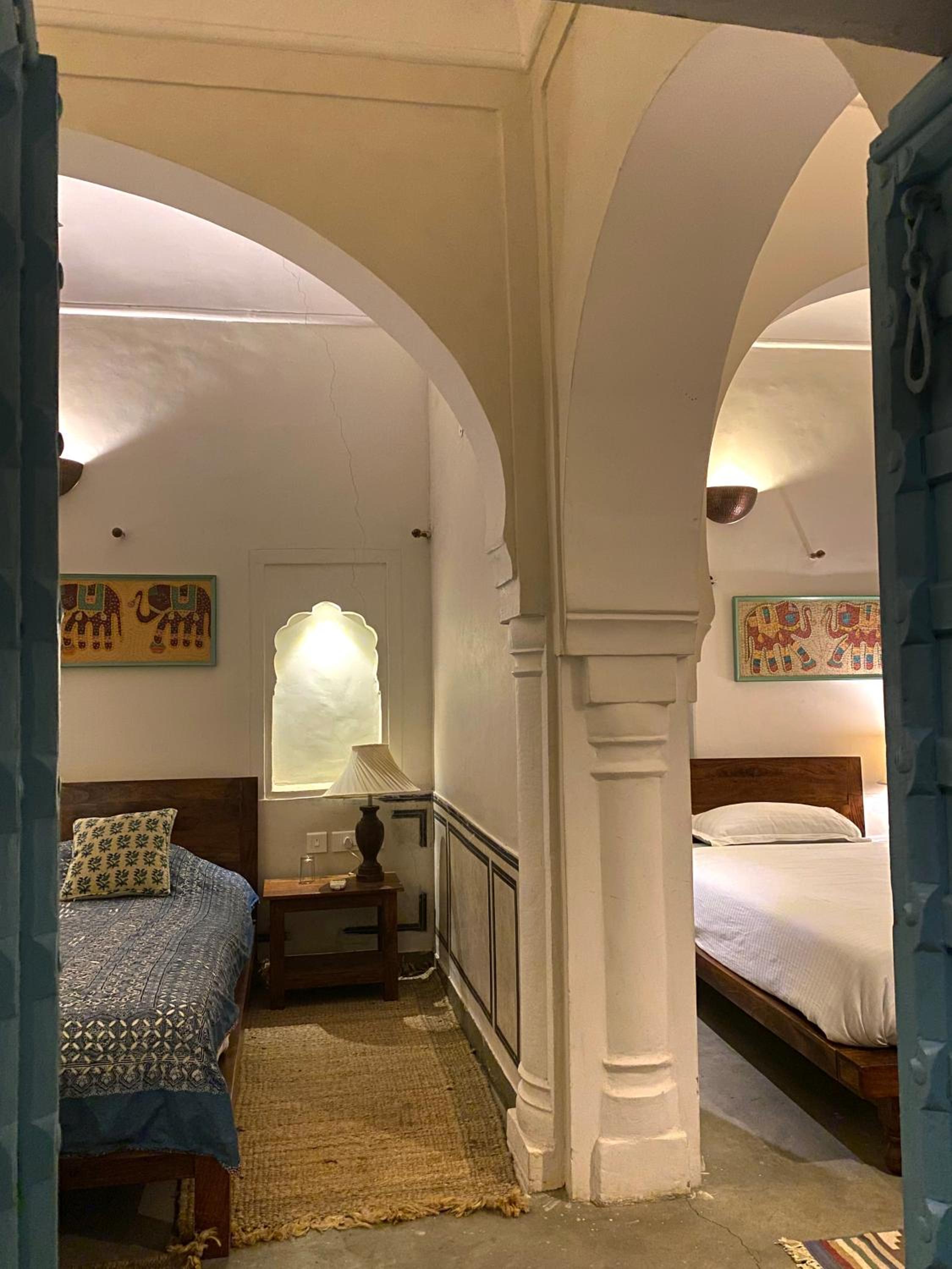 The architecture is breathtaking—every corridor, courtyard, and archway echoes stories of royal lineage and tradition. The rooms are tastefully adorned with antique furniture, intricate frescoes, and vintage decor, offering a perfect blend of heritage and modern comfort. Staying here truly felt like living in history, without compromising on luxury.
