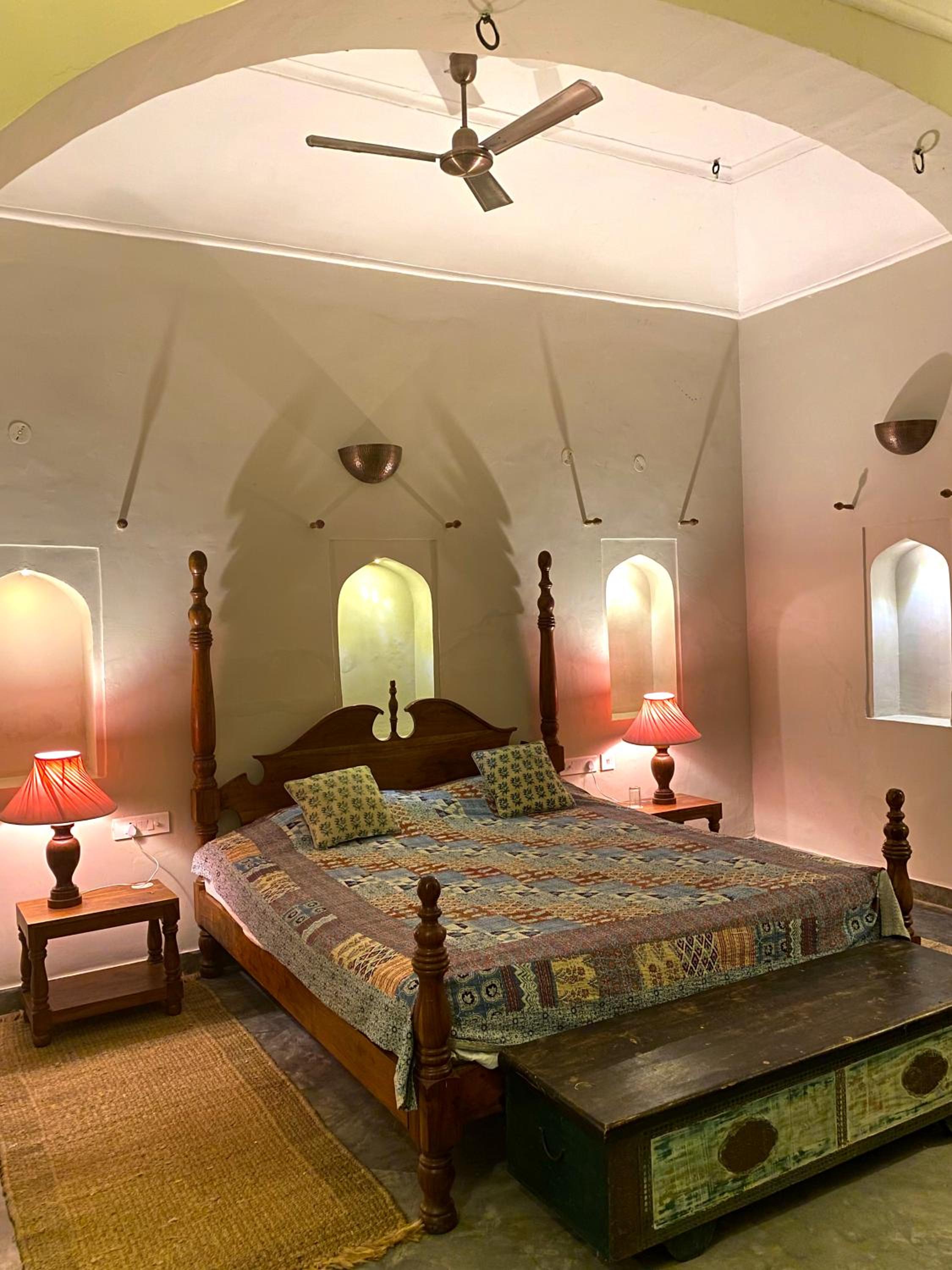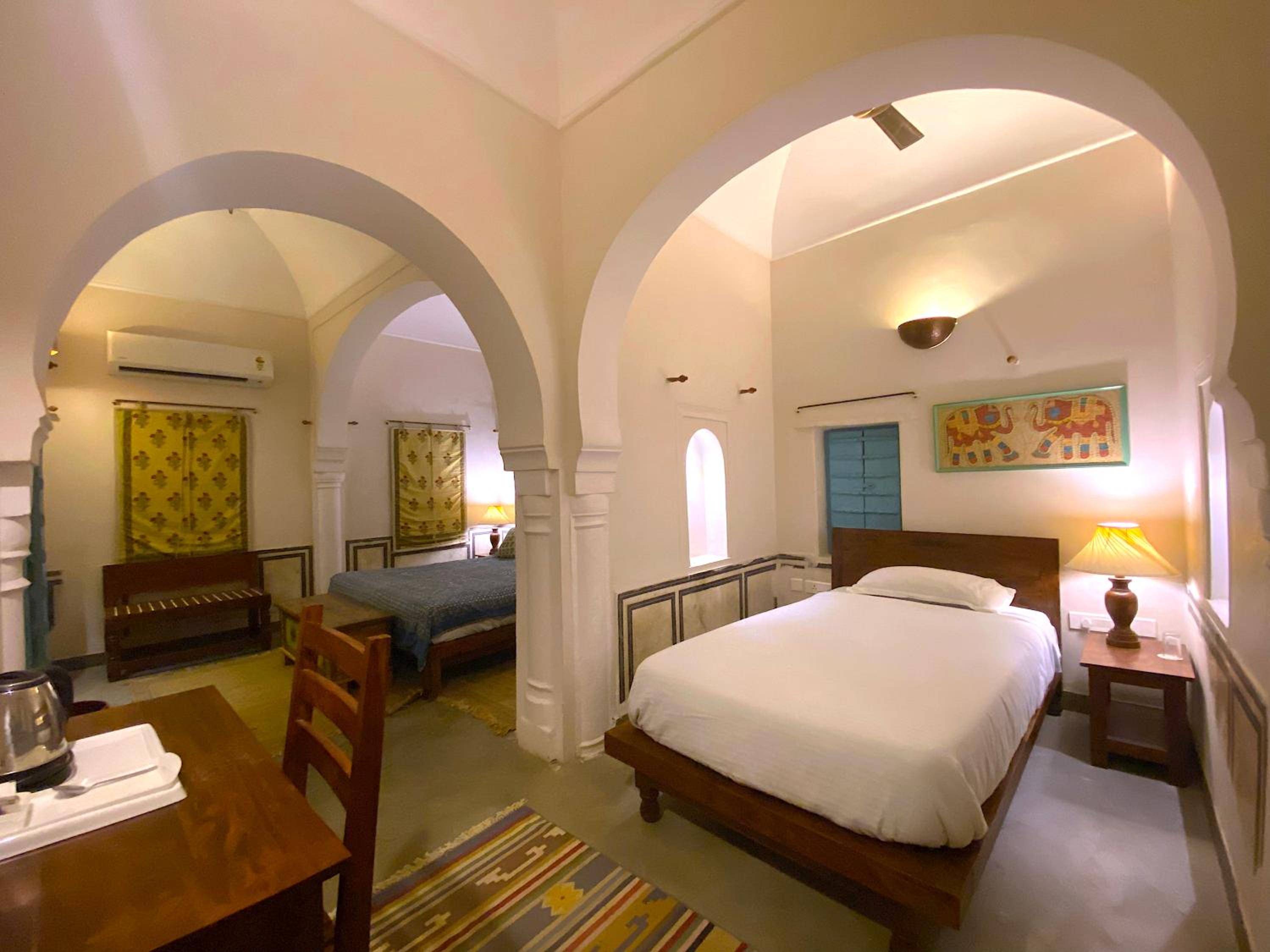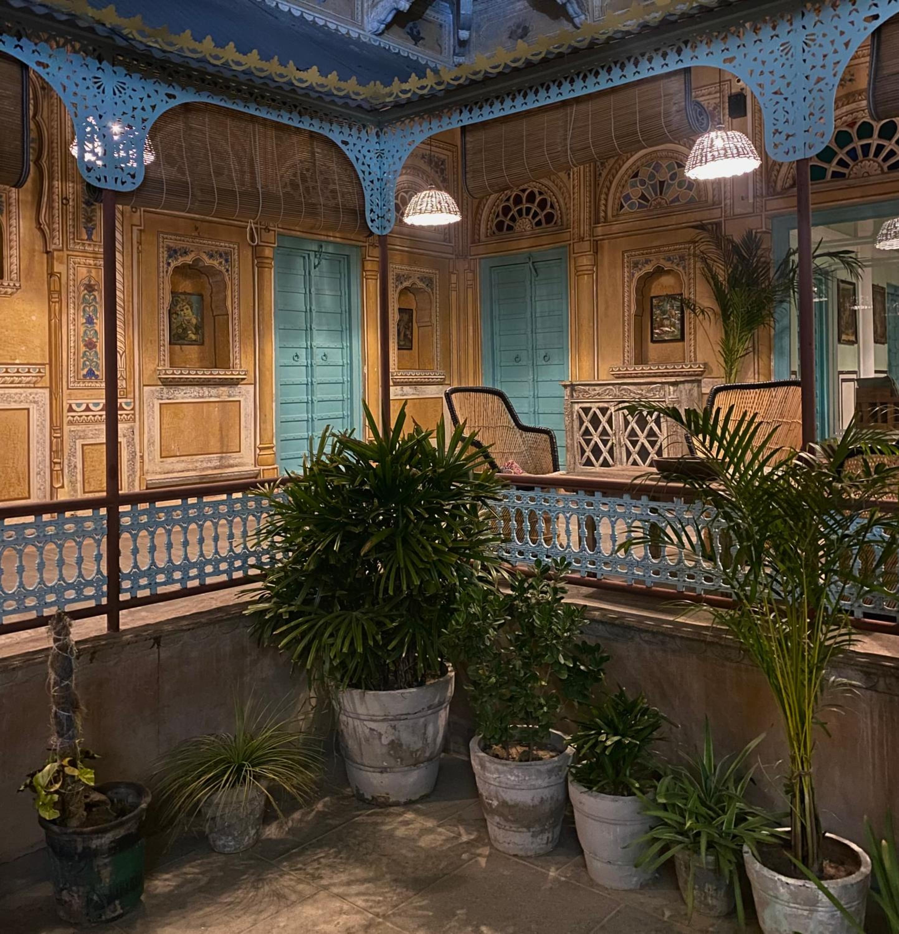 The architecture is breathtaking—every corridor, courtyard, and archway echoes stories of royal lineage and tradition. The rooms are tastefully adorned with antique furniture, intricate frescoes, and vintage decor, offering a perfect blend of heritage and modern comfort. Staying here truly felt like living in history, without compromising on luxury.