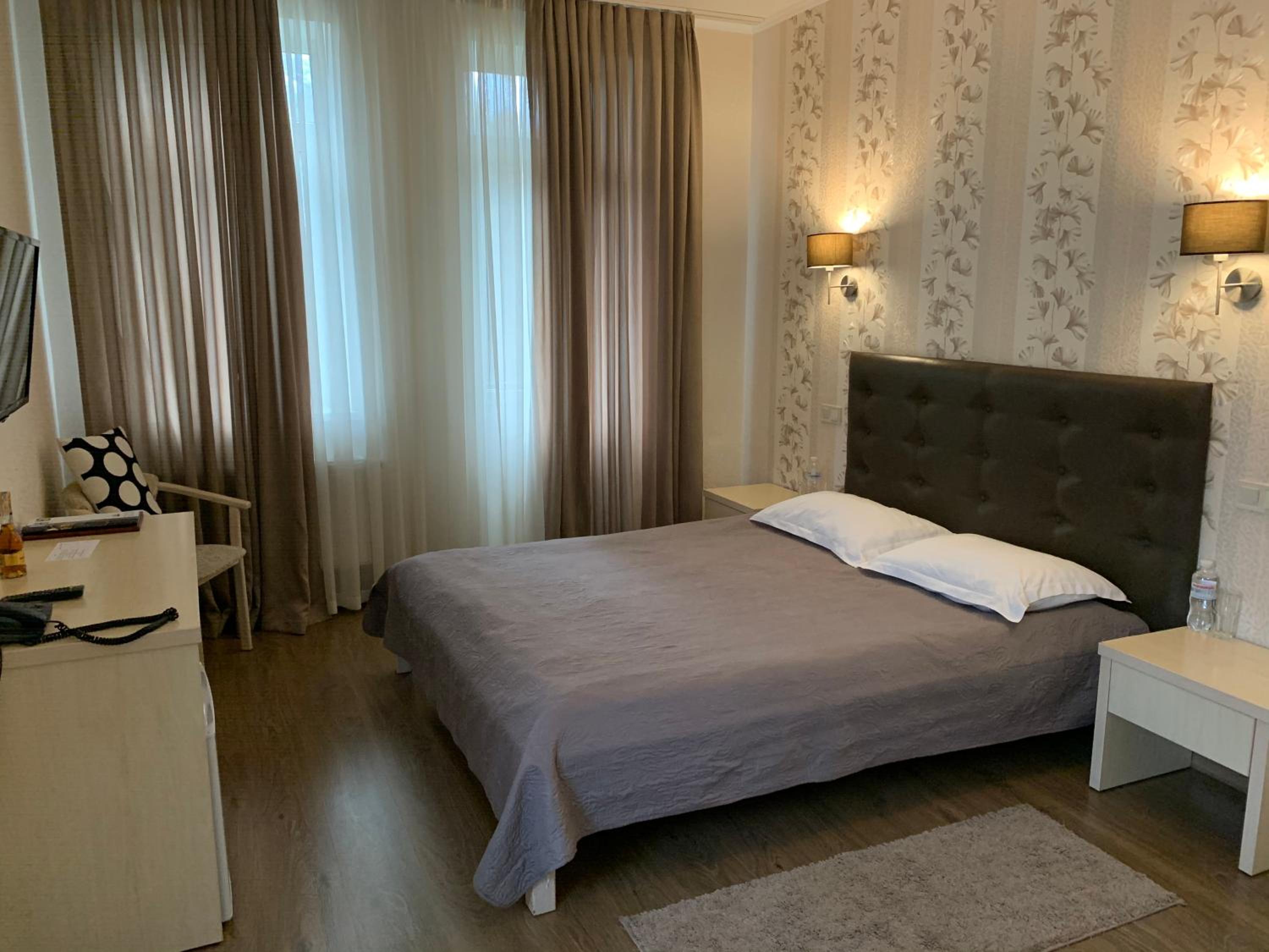 Viktoria Park Hotel, nestled in Bucha just 15 km from Kiev, offers stylish rooms with modern amenities. Each room features a flat-screen TV, plush bedding, and a sleek bathroom stocked with complimentary toiletries.