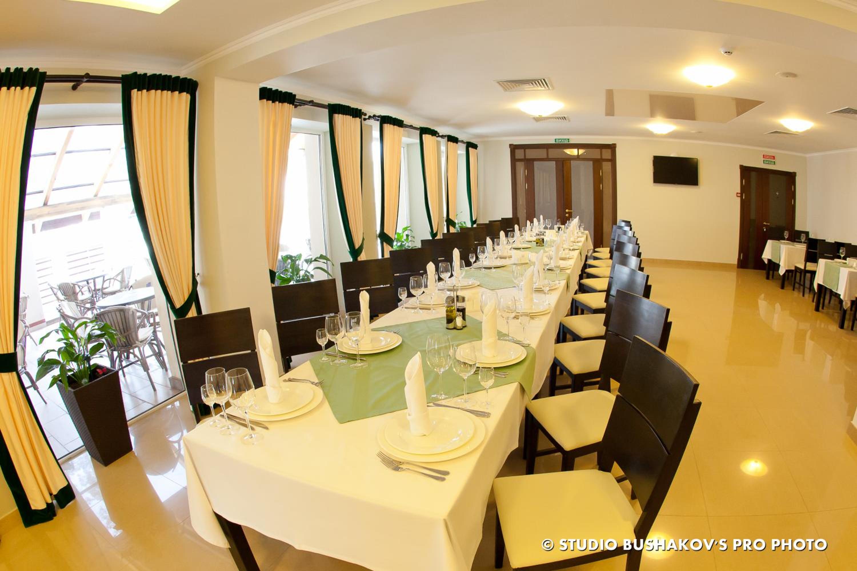 Indulge in a culinary journey at the on-site restaurant serving delectable Mediterranean cuisine. Unwind with a wide selection of beverages at the cozy bar, perfect for a relaxing evening after a day of exploring Bucha.