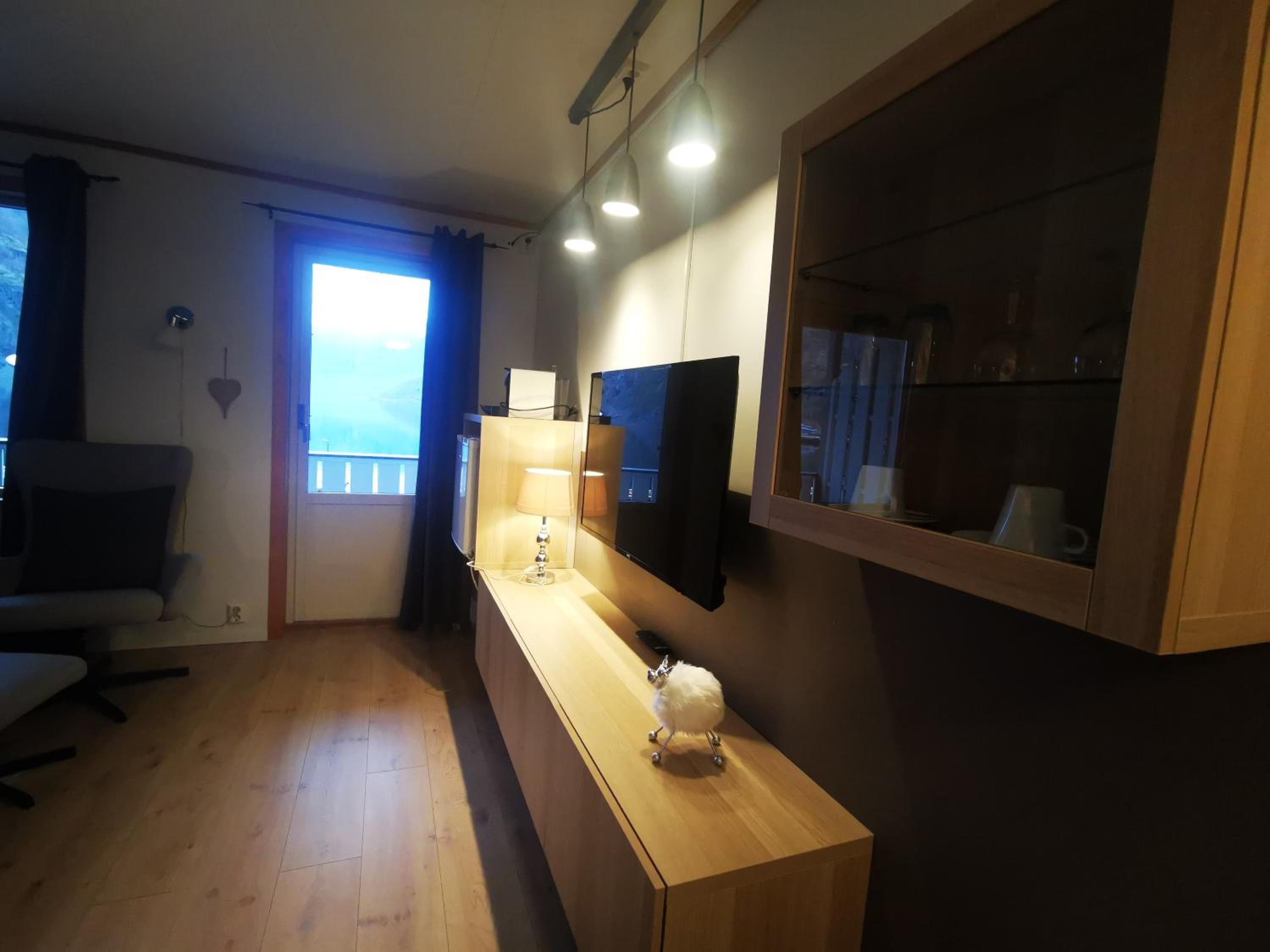 房間的內部設施不錯,窗戶打開可看到峽灣。