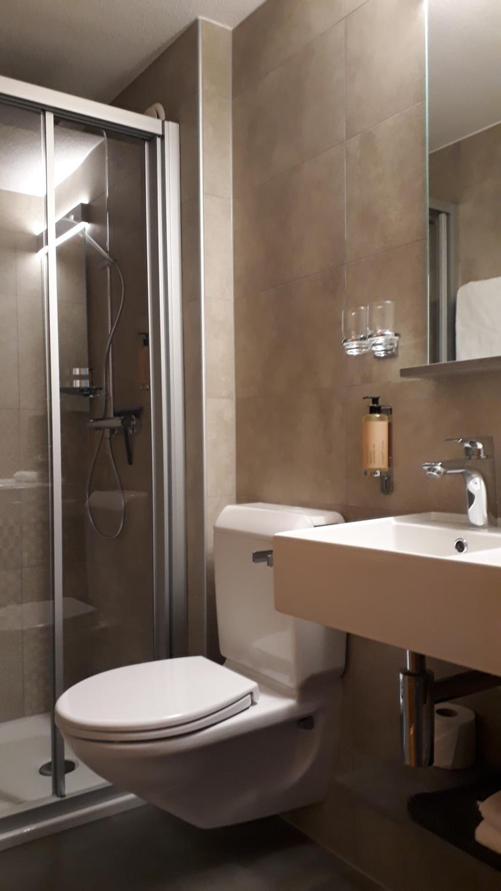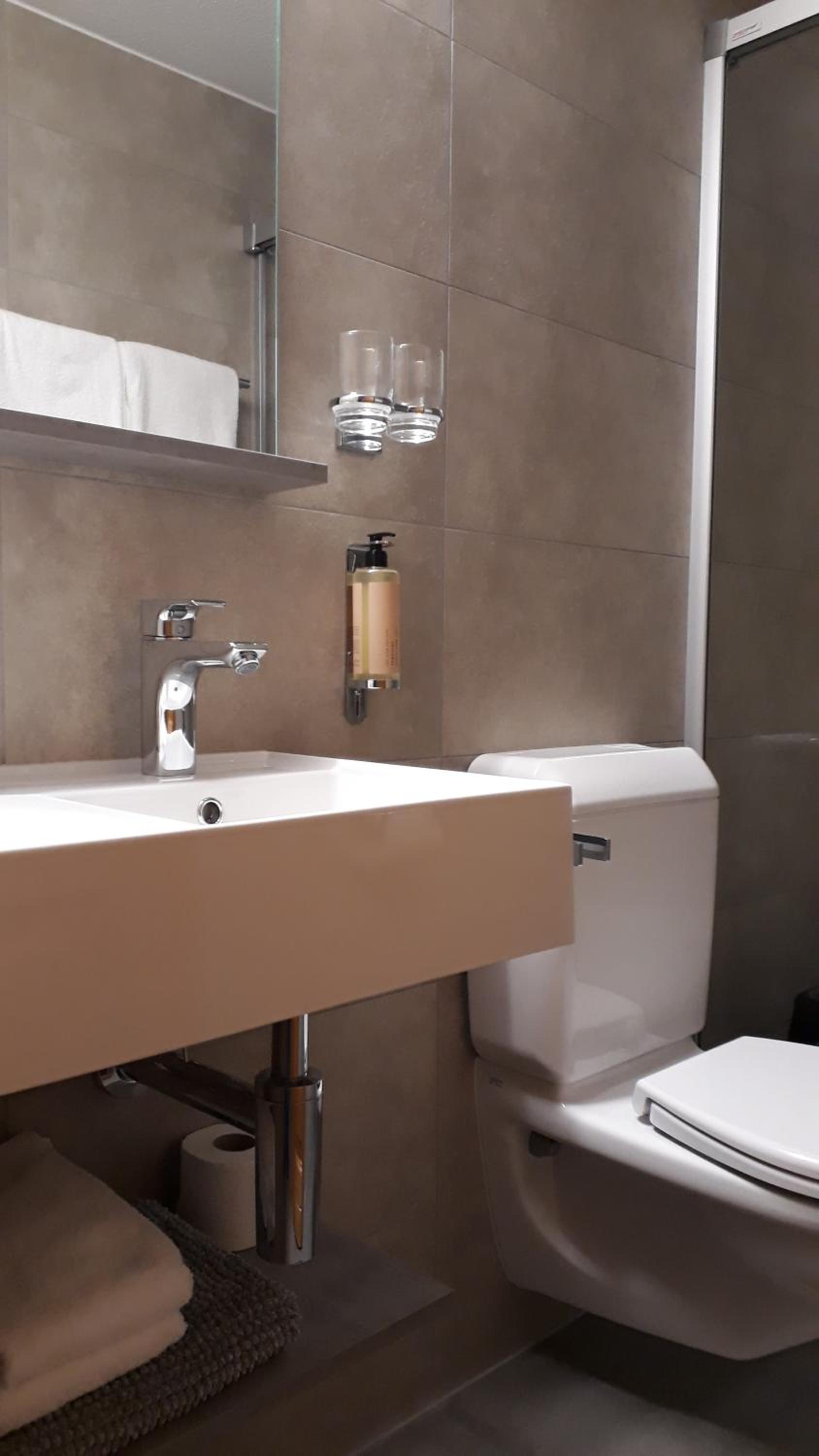 Very big room, clean, comfortable. 3 towels for one person, hairdryer, body cream, shampoo and everything needed in the bathroom. Coffee machine, with mugs, biscuits, tee and coffee in the room. No noise, I didn't hear neighbours.