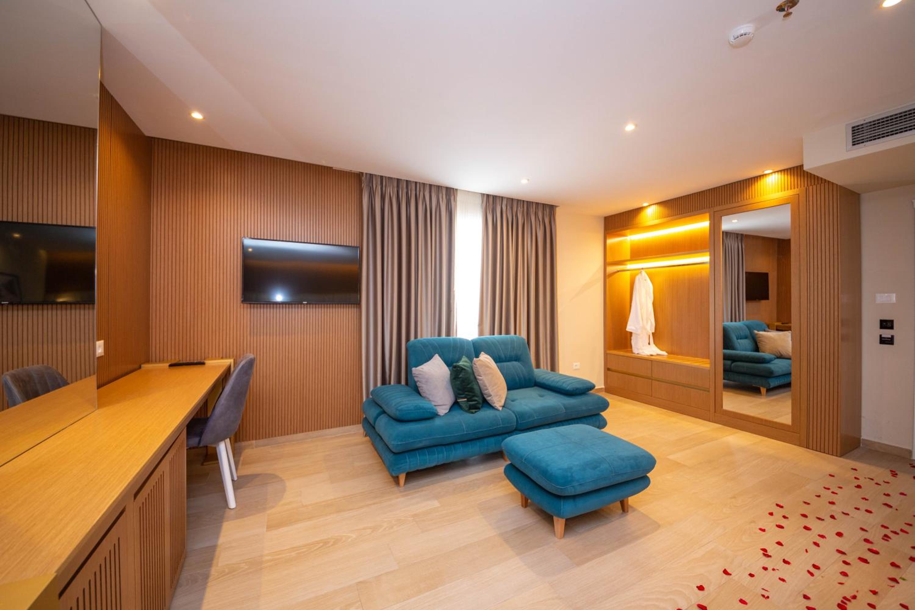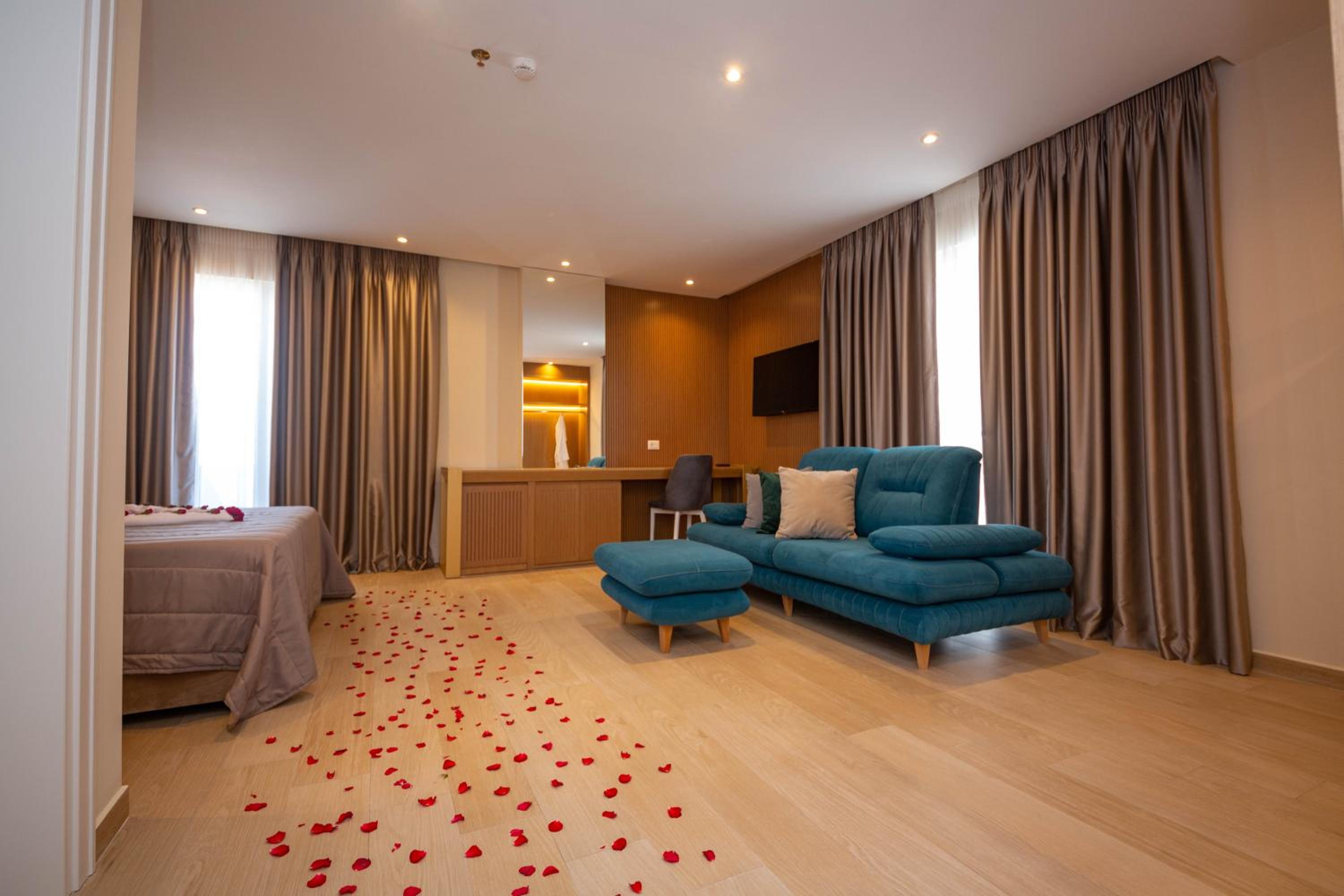 Merar Hotel, located in Golem just 200 meters from Qerret Beach, offers 4-star accommodation with a private beach area and free WiFi. The air-conditioned rooms are elegantly furnished and equipped with modern amenities for a comfortable stay.