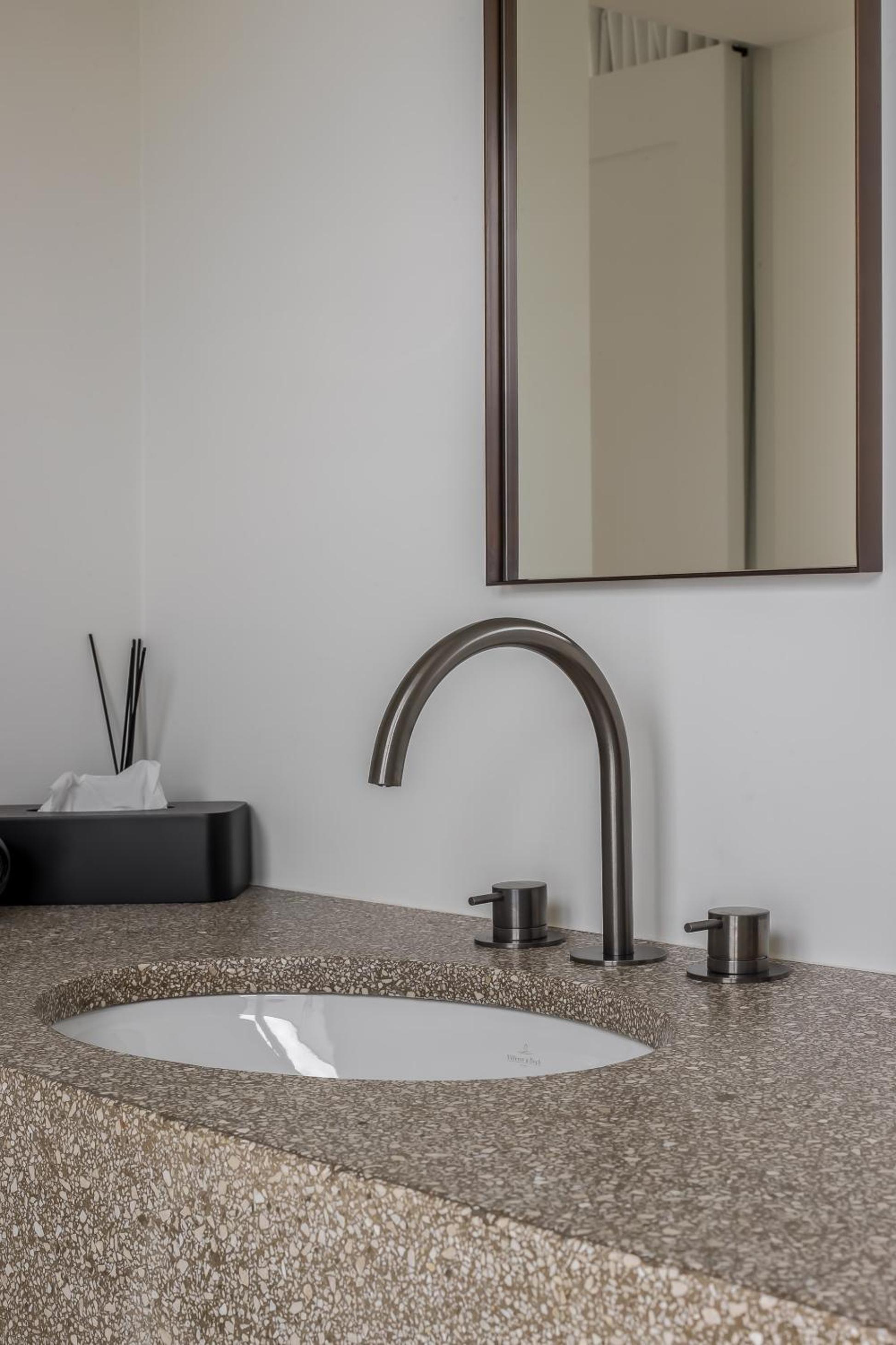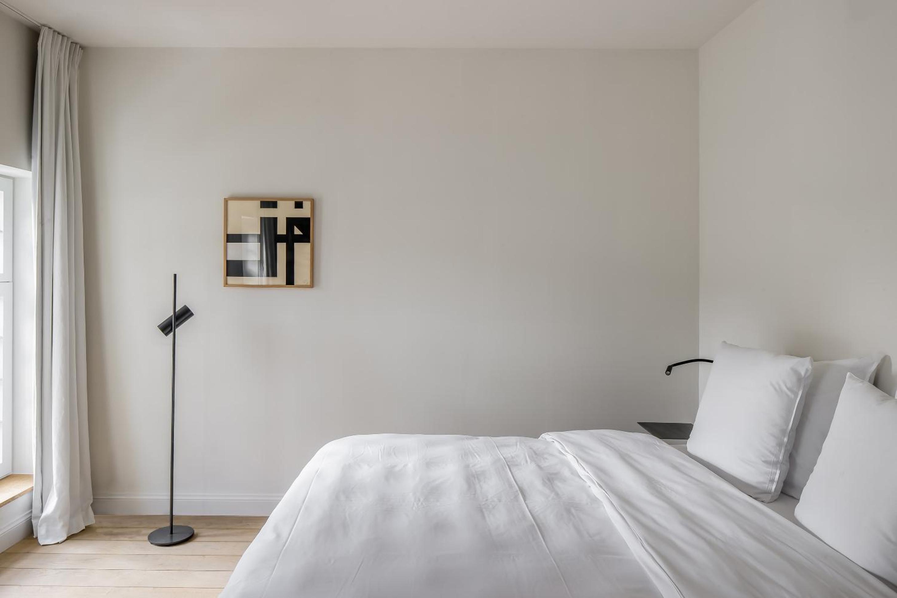 Sobre et moderne, de beaux matériaux, quelques œuvres d'artistes, très confortable.