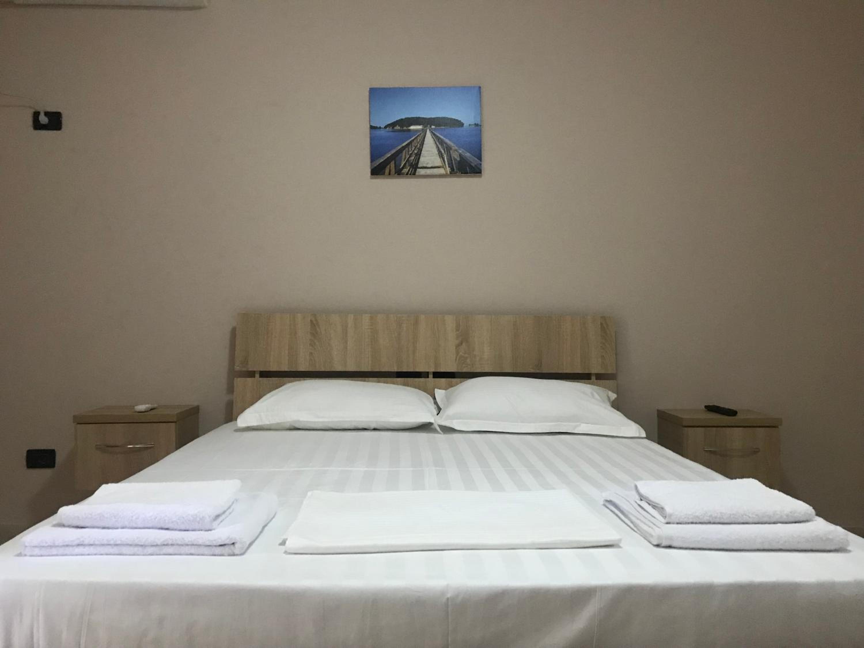 Hotel Villa Aljor, nestled in Golem just steps away from Mali I Robit Beach, offers a tranquil escape with its garden oasis and convenient amenities. Each room boasts a private balcony overlooking lush greenery, ensuring a relaxing stay. The modern rooms feature flat-screen TVs, air conditioning, and elegant decor, with some even including a charming terrace. Guests can unwind at the on-site restaurant and bar after a day of exploring nearby beaches like Golem Beach and Qerret Beach. Additionally, the complimentary WiFi and available airport shuttle service add to the overall convenience of this exquisite hotel. Book your stay at Hotel Villa Aljor for a memorable seaside retreat.