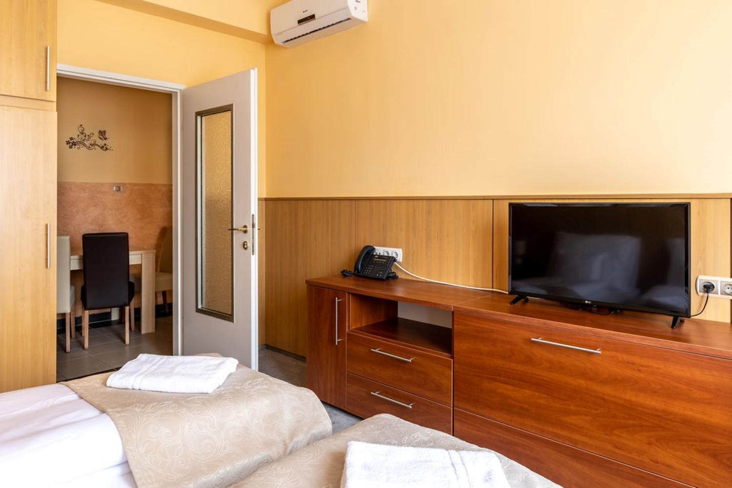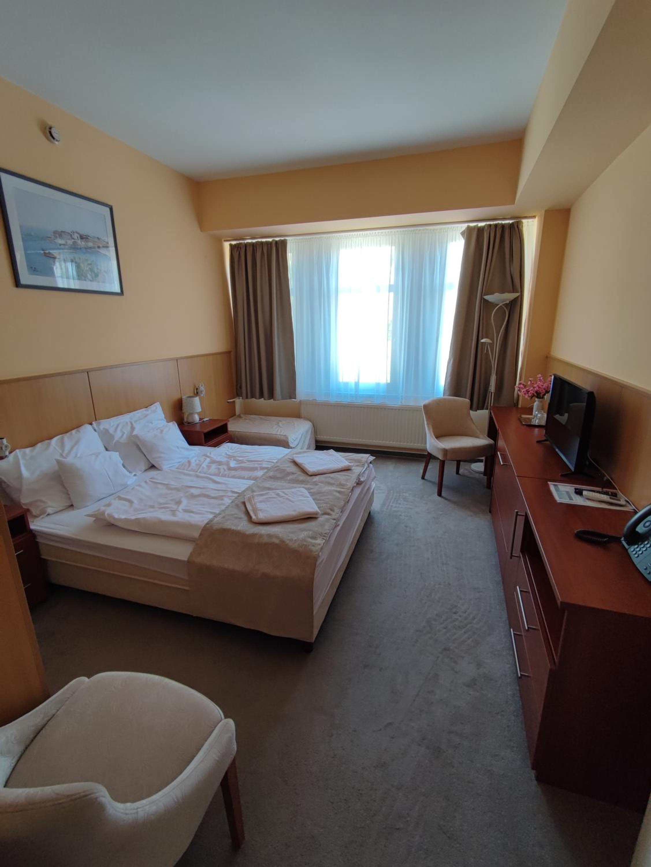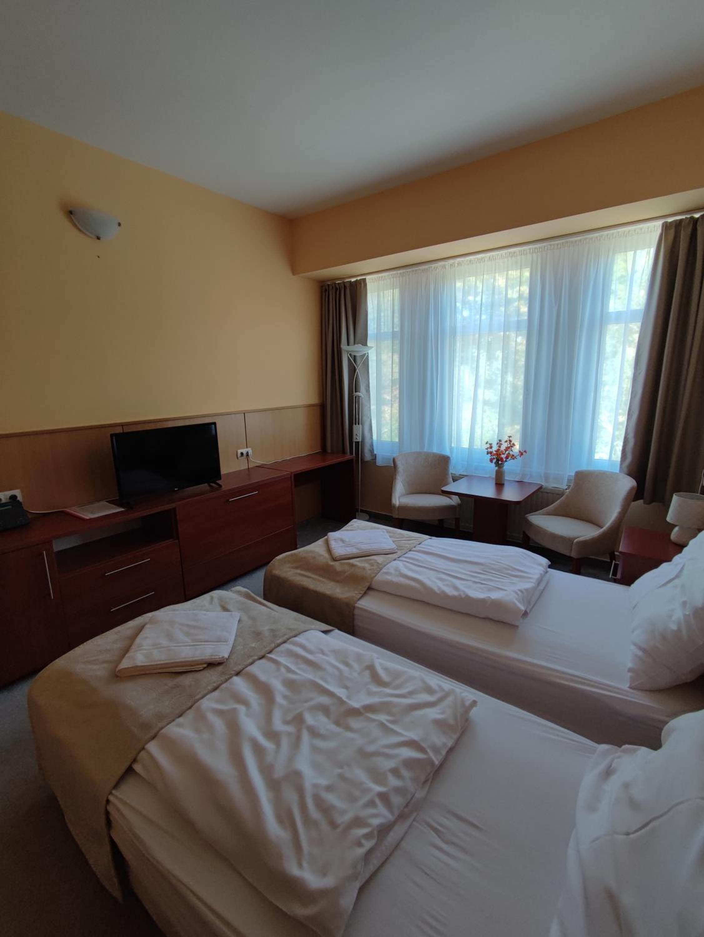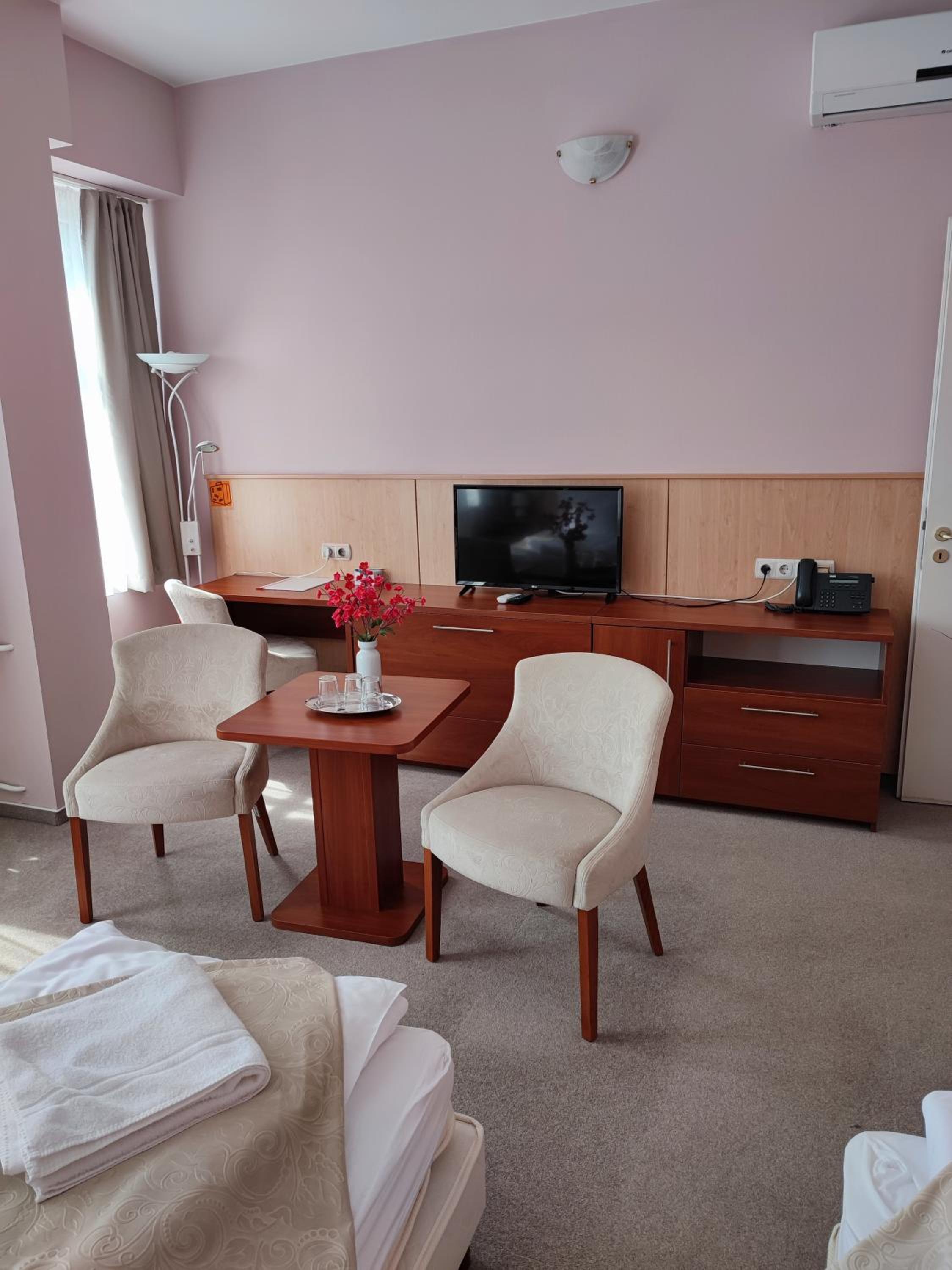 Experience comfort and style at D-Hotel, centrally located in Gyula. Enjoy air-conditioned rooms with free Wi-Fi, LCD satellite TV, and en-suite bathrooms with showers.
