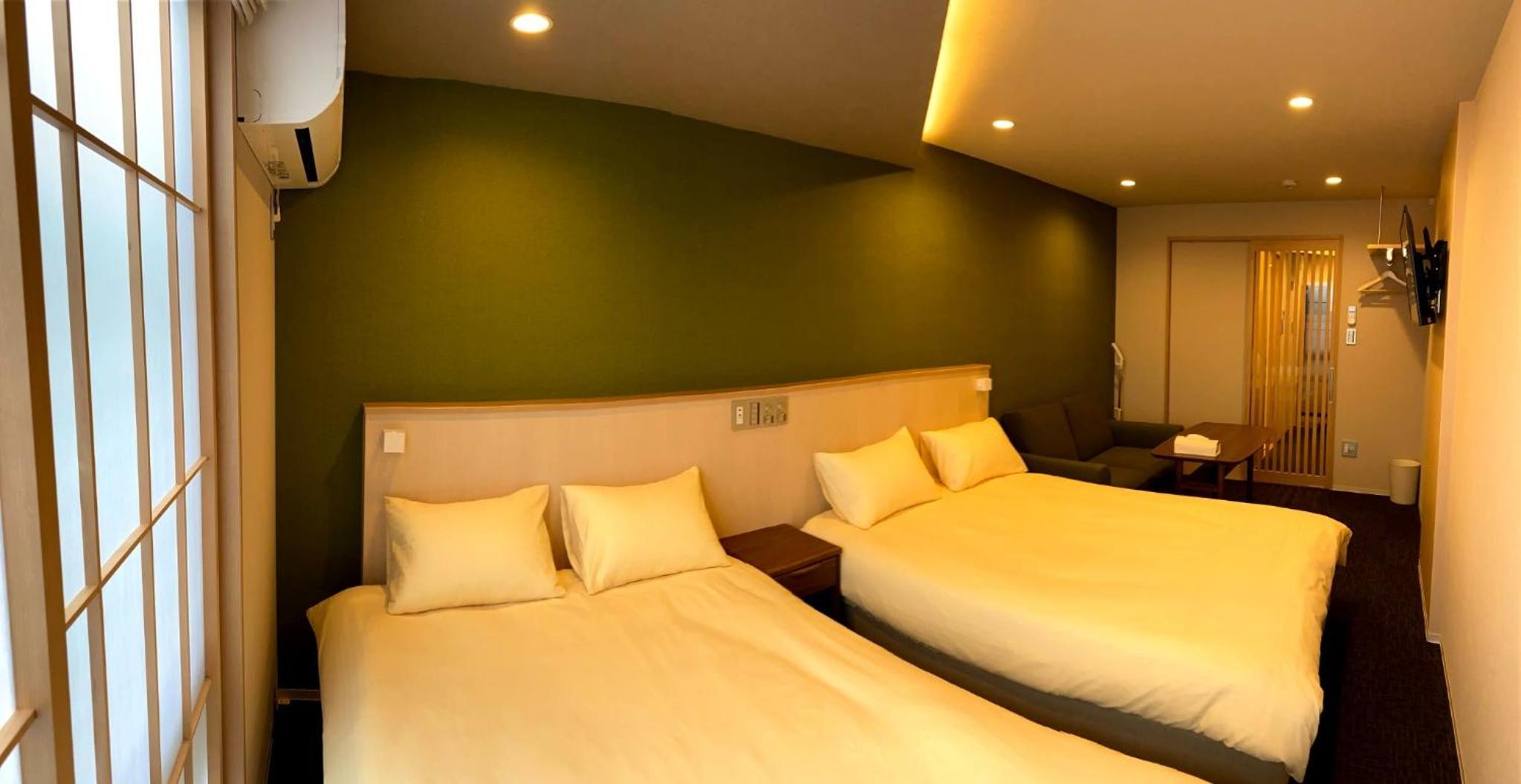 Each room is thoughtfully equipped with a desk and a fridge for added convenience. The hotel's proximity to Samurai Kembu Kyoto and other popular landmarks like Shoren-in Temple and Heian Shrine makes it an ideal choice for travelers seeking a blend of comfort and culture.