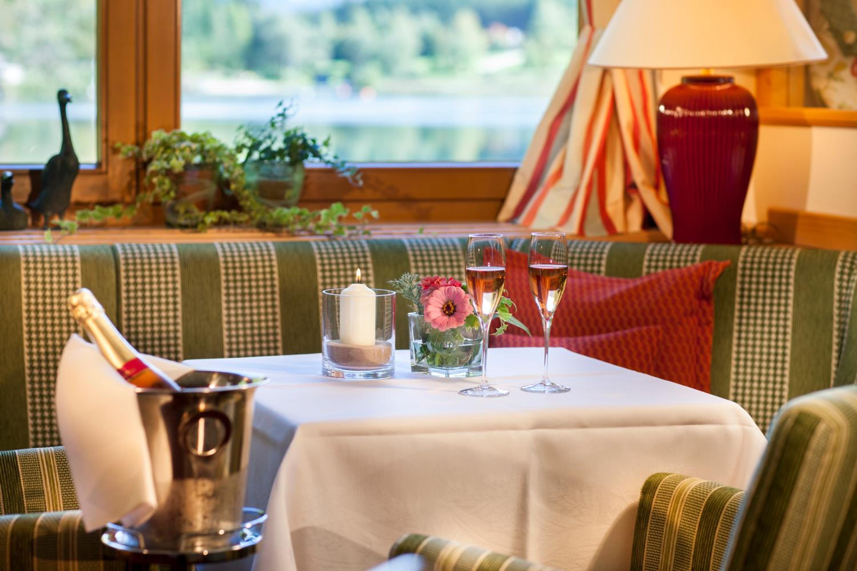 Indulge in a variety of regional and international dishes in the cosy Tyrolean restaurants or on the spacious lakeside terrace. Don't forget to savor the fresh fish from the hotel's own ponds as a specialty.