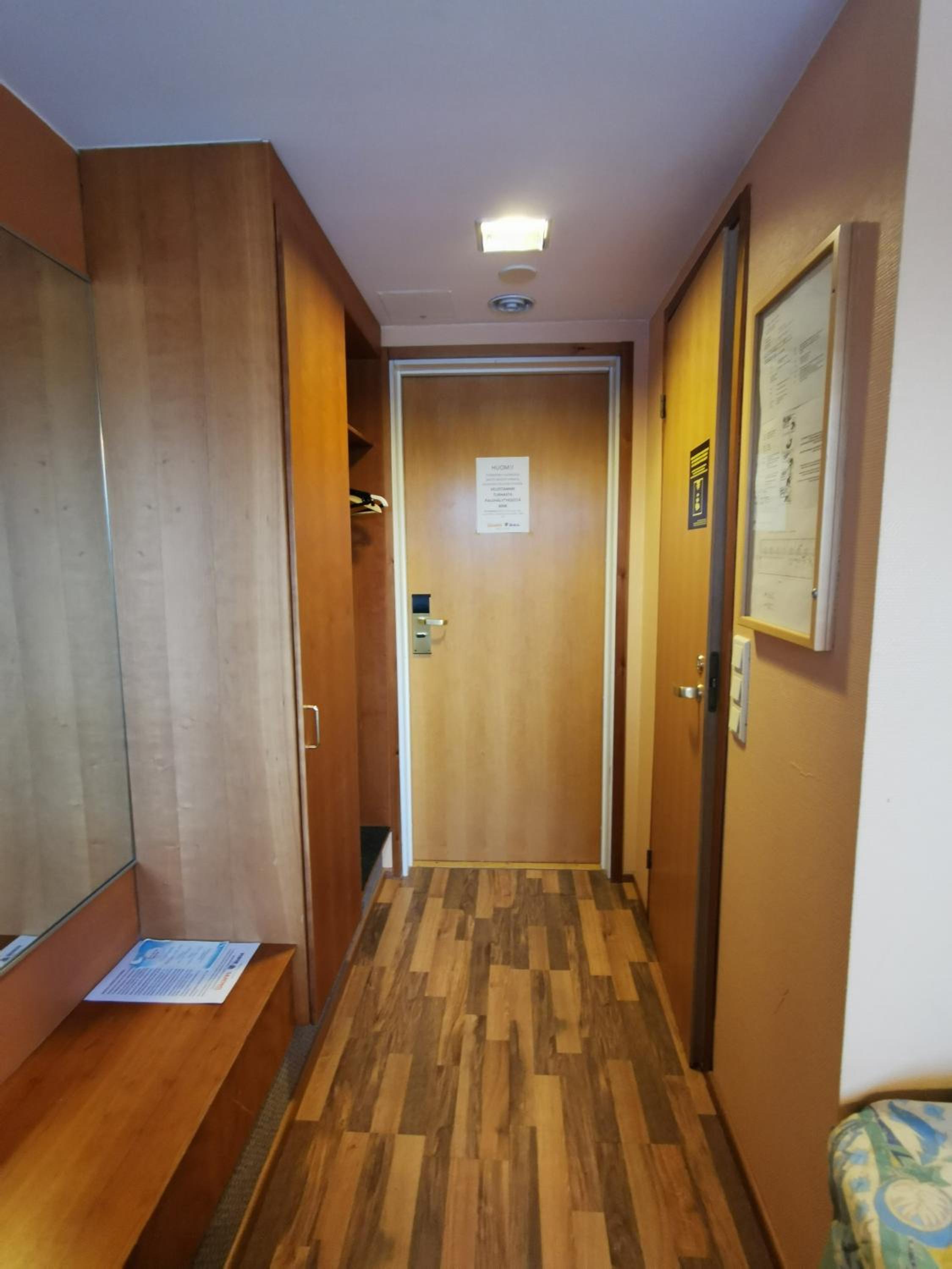 - huoneen ovi ei auennut kunolla otti lattiaan kiinni, avainkortti ei toiminut ovea piti työntää voimakkaasti.