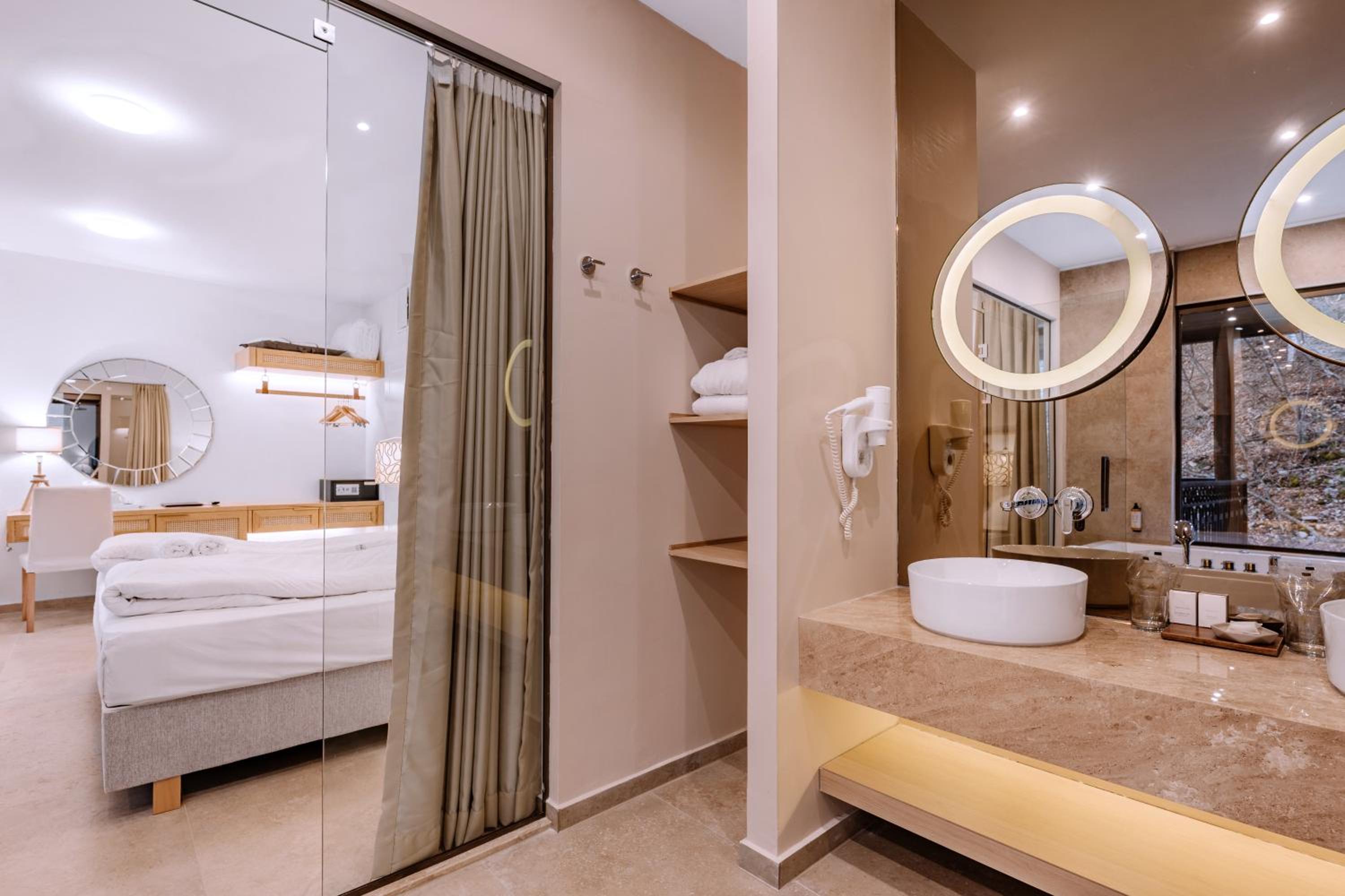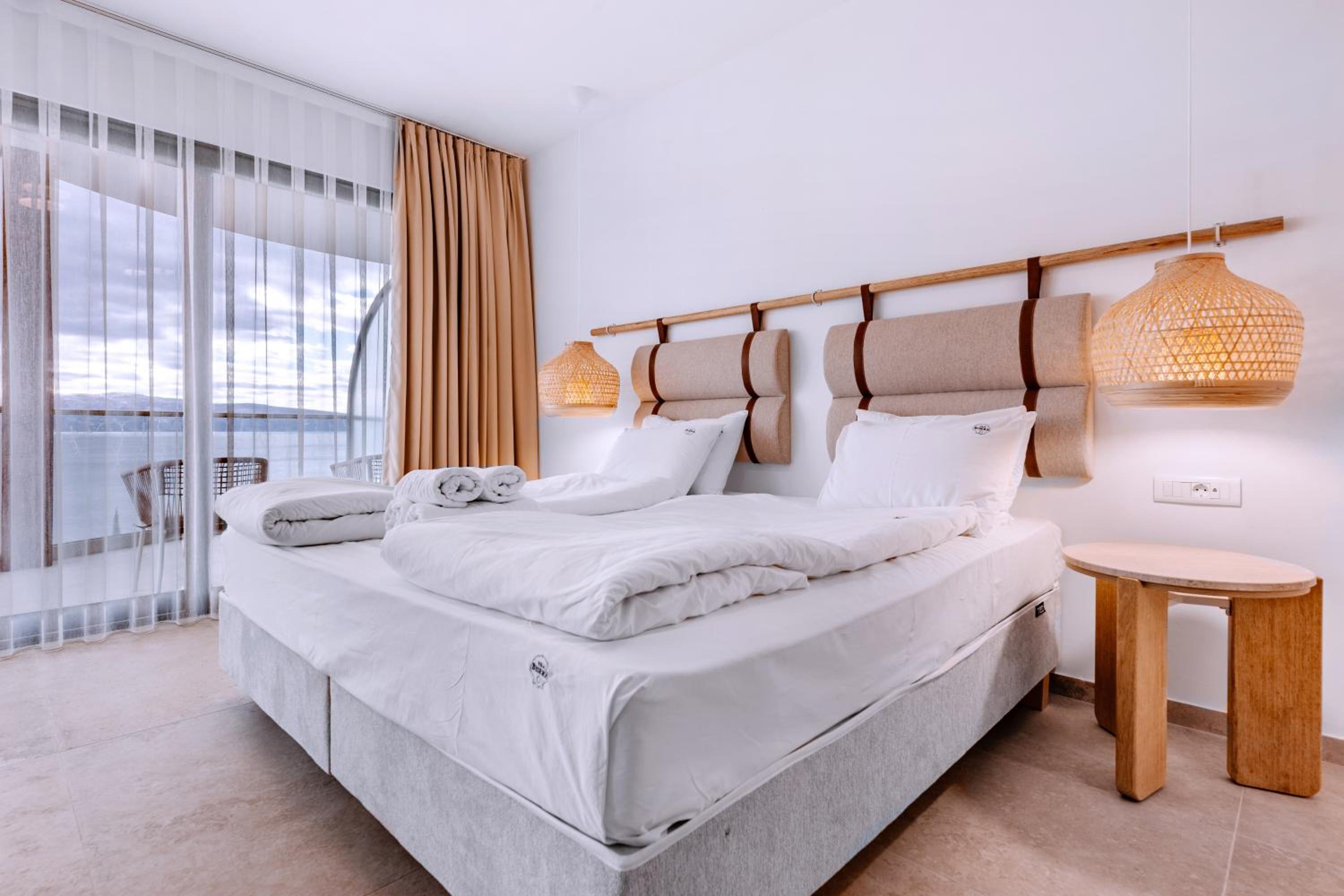 Много красиво и спокойно място, голям комплекс с всичко необходимо за почивка, гледка към езерото, изключително богата и разнообразна закуска с много салати, използвани са естествени материали, много удобно легло.
