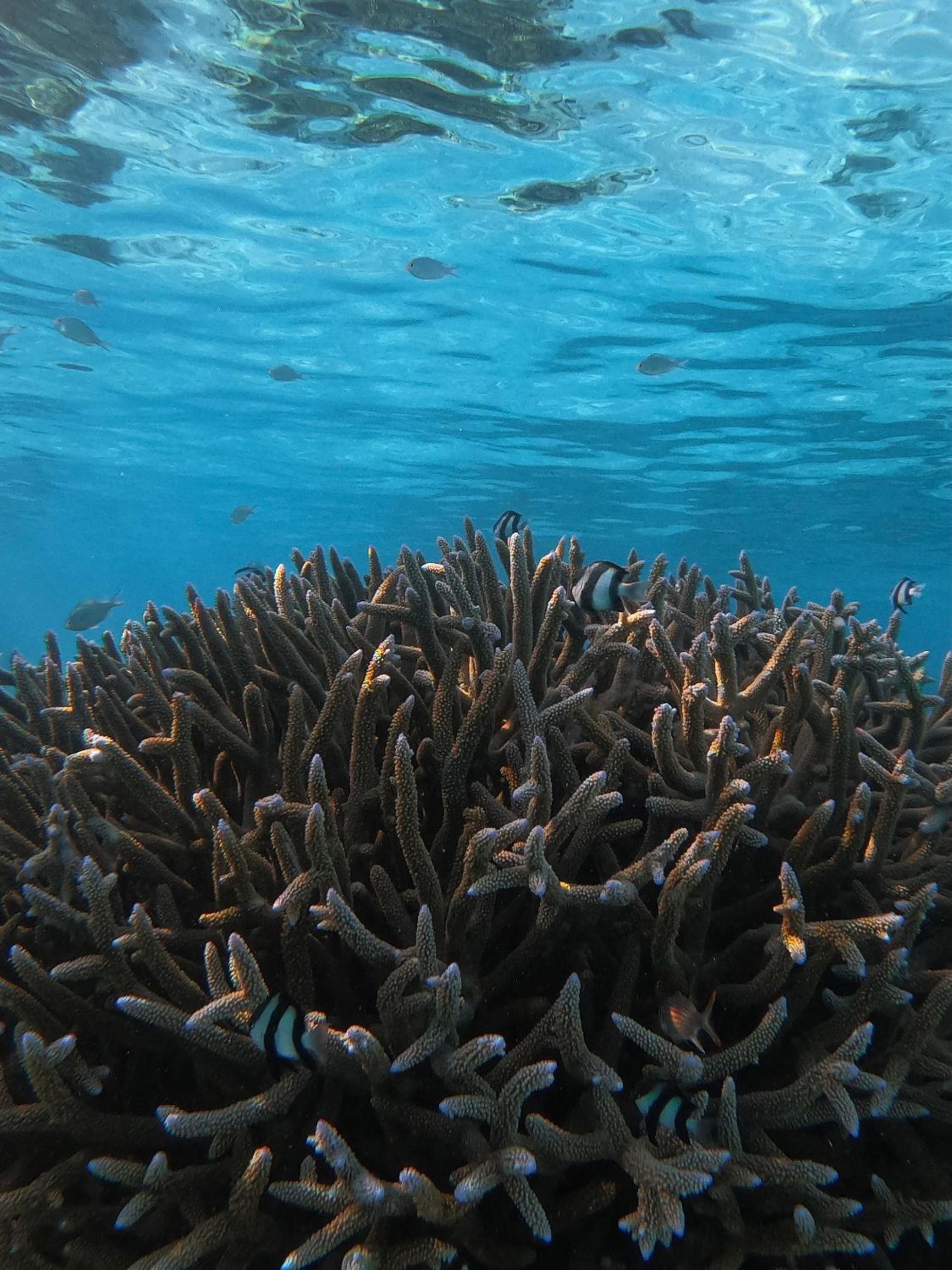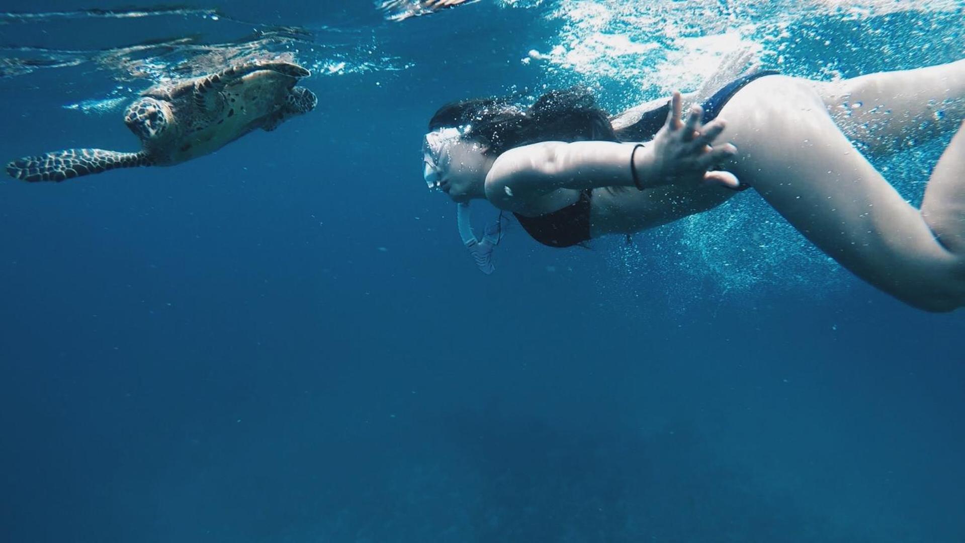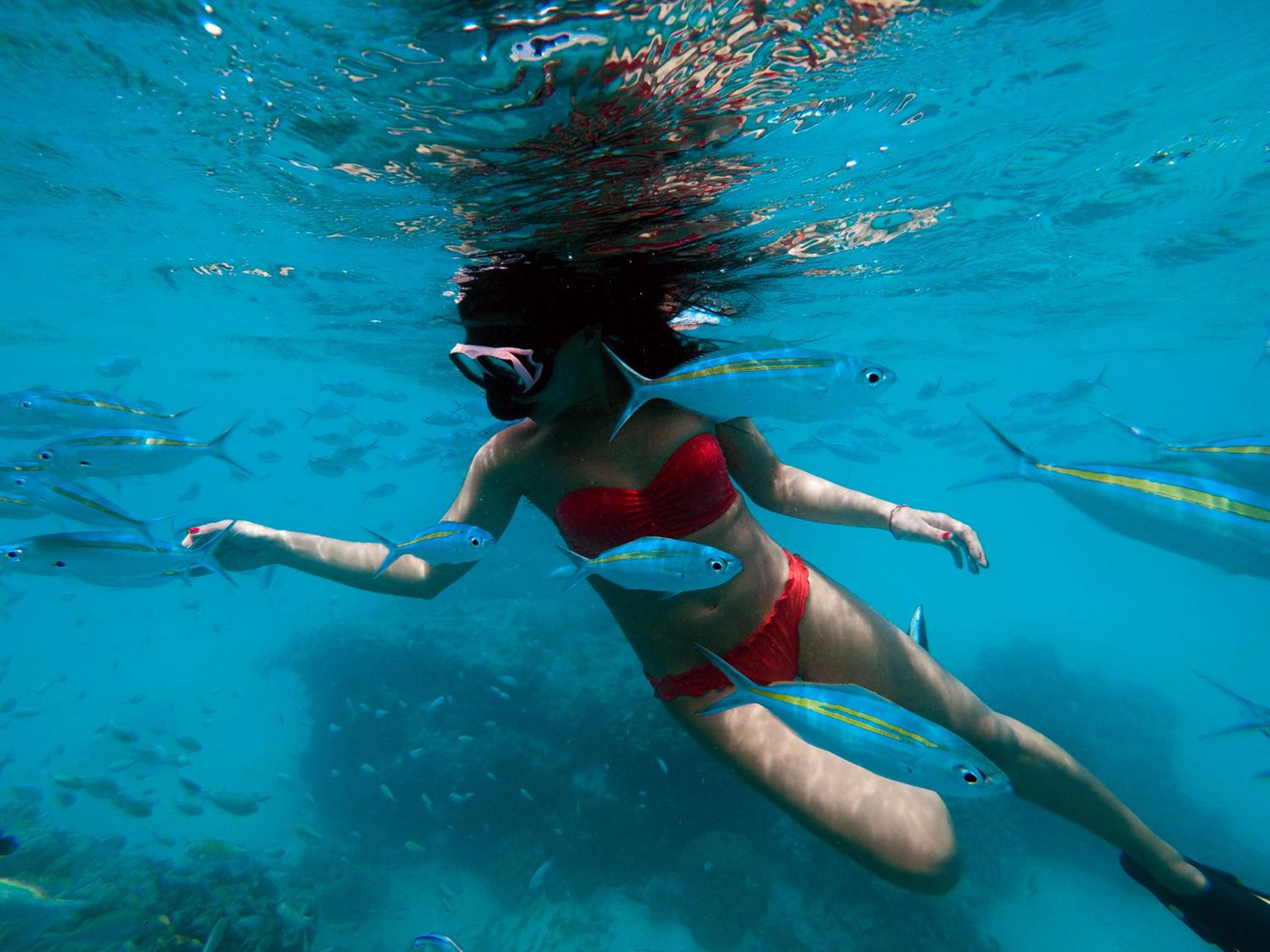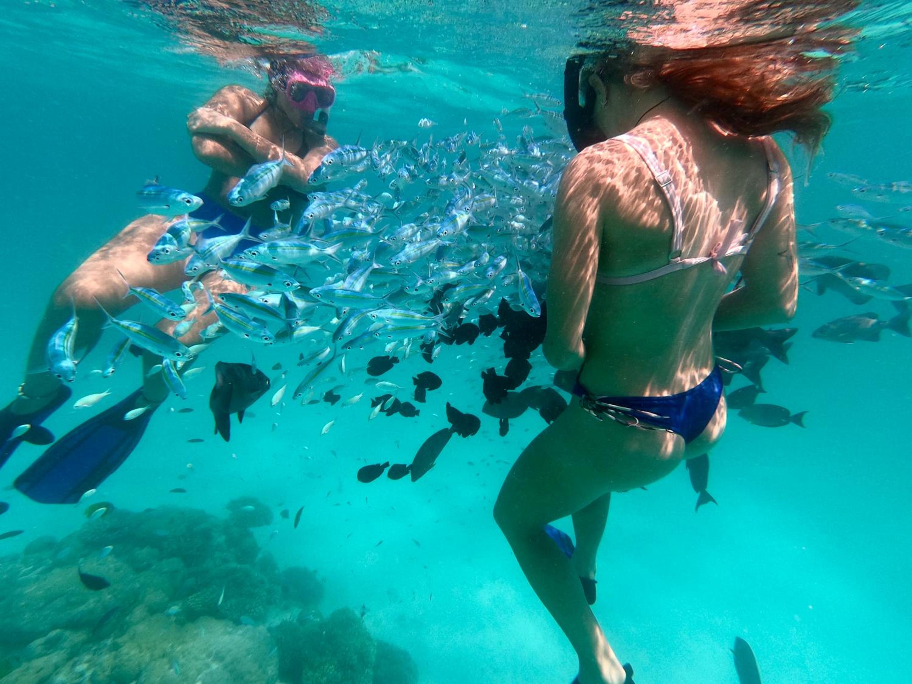 Все было идеально. Свой бикини пляж прям возле геста. Стоят лодки, немного - на них и на рыбалку и на снорклинг и прочие экскурсии. Удобный заход в воду. Но дальше 10 метров всеж нужны коралки на ноги. Есть рыбки небольшие до 30 см в длину, но разные. Можно стоя из воды в маске за ними наблюдать. И рыба игла, и группер, и рыба попугай - много разных видов.