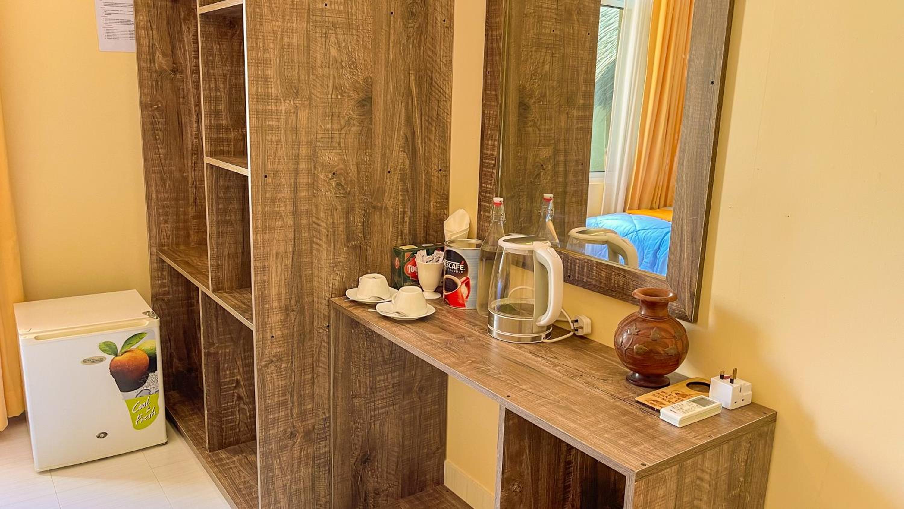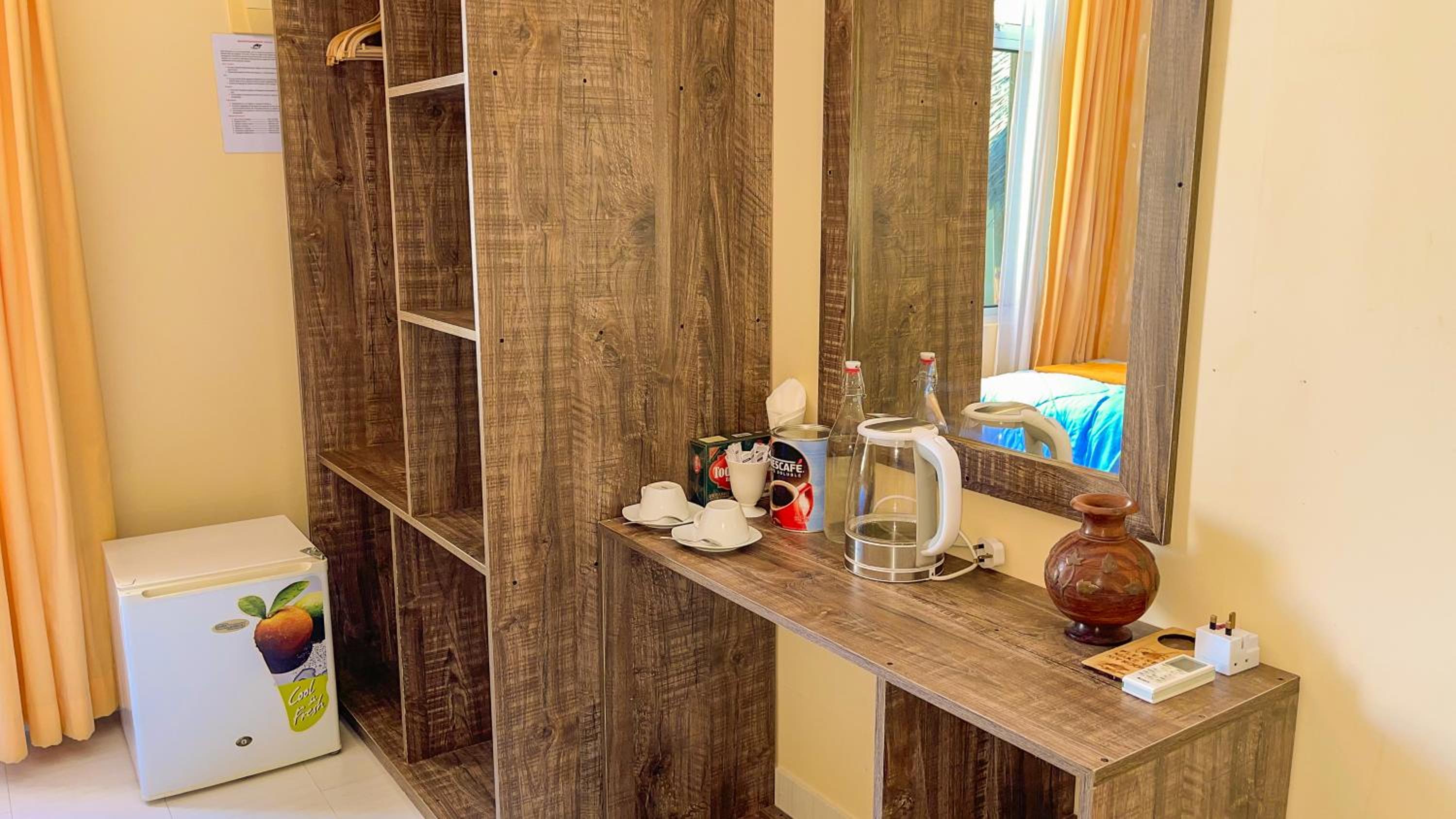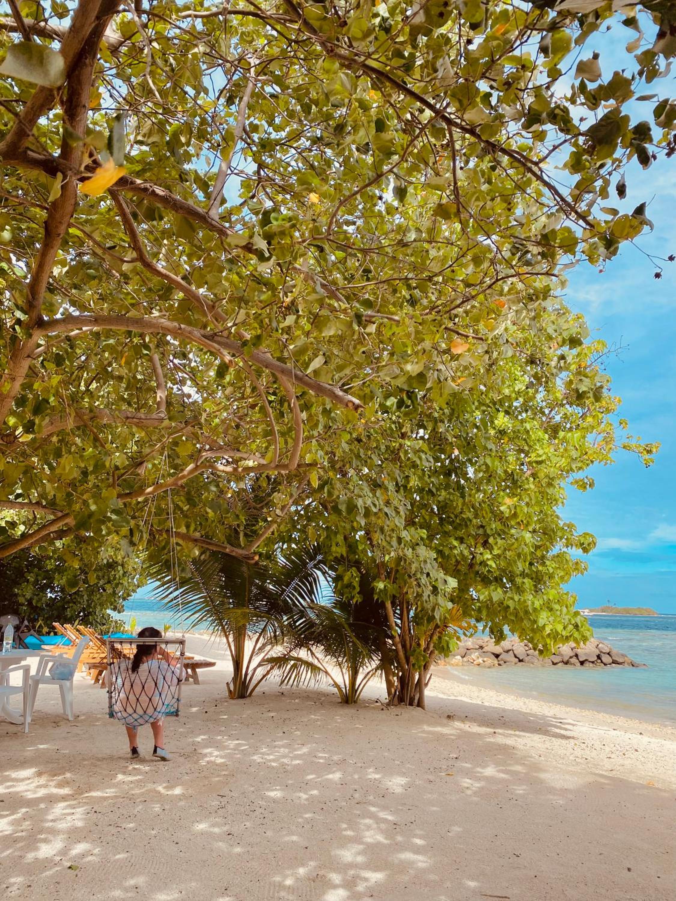 Lo mejor del hotel es la playa privada de arena blanca, ducha, hamacas y un buen esnorquel. El hotel tiene toallas de playa en una estantería y puedes cogerlas cuando necesites.