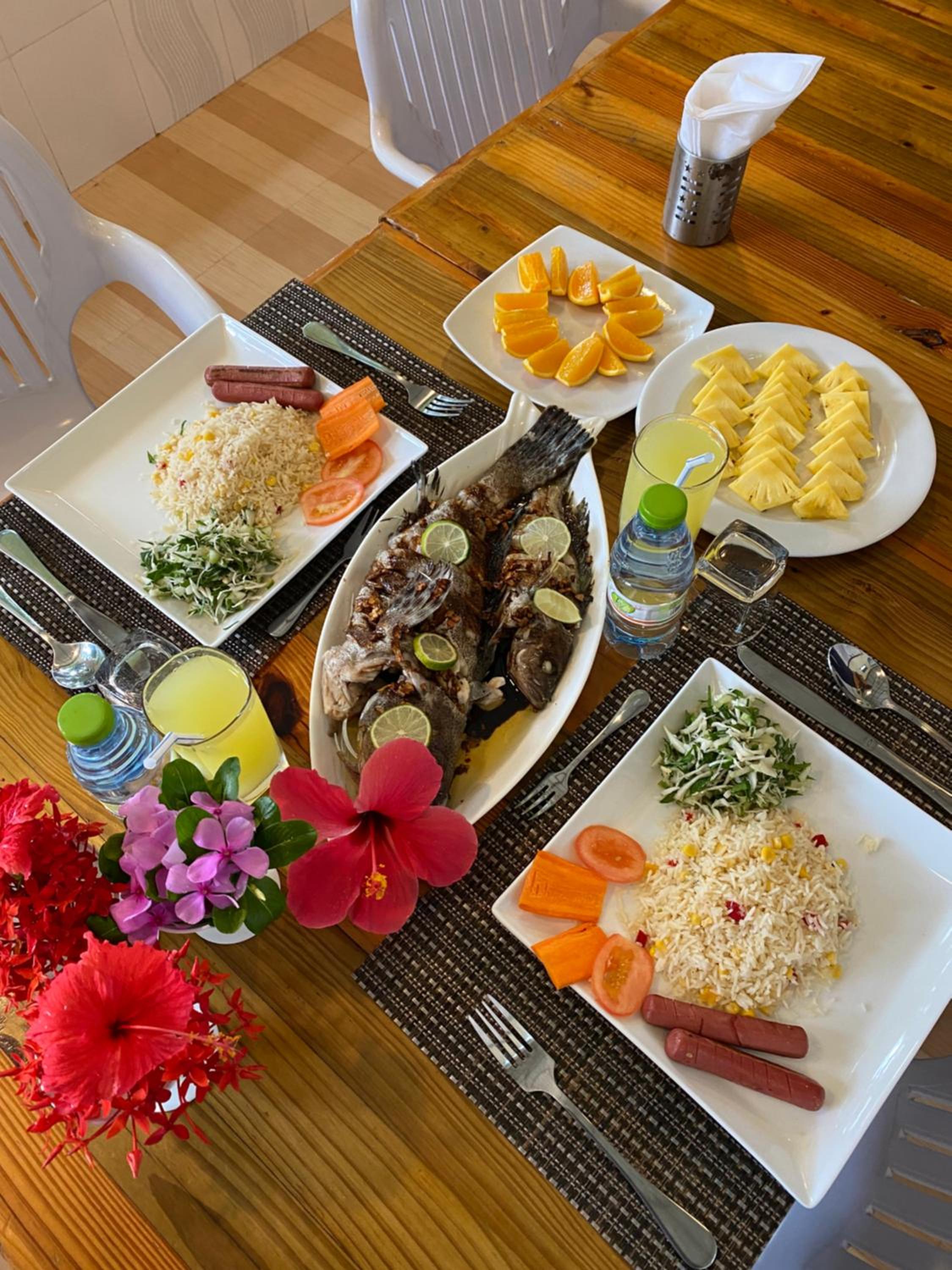 На завтрак вы получите пережаренный омлет, 2 ужасные сосиски и сок, наполовину разбавленный водой, на ужин ( мы оплачивали завтраки и ужины) обугленную до черноты рыбу, большую миску риса и тарелку невкусных овощей. На пляже отеля постоянно находятся 4 лодки и плавать придется между ними. Рядом строится многоэтажный отель, судя по всему этого же владельца...Я не знаю, кто и почему мог написать хоть что-то хорошее об этом ужасном месте. Мы были на Мальдивах 15 раз, жили в разных отелях и гестах, но такого ужаса не видели негде...Фото прилагаю