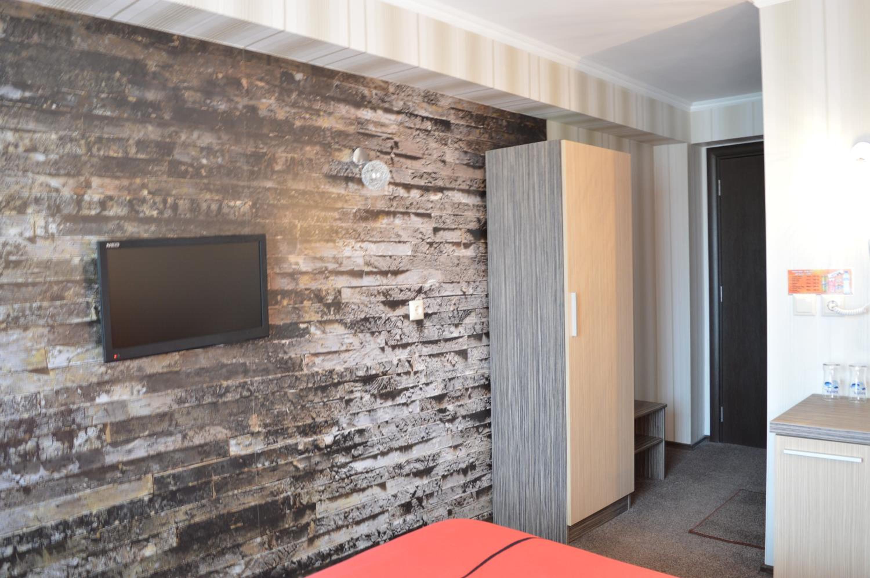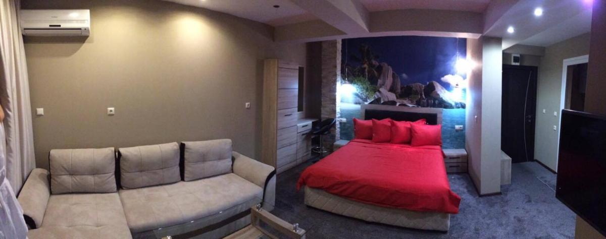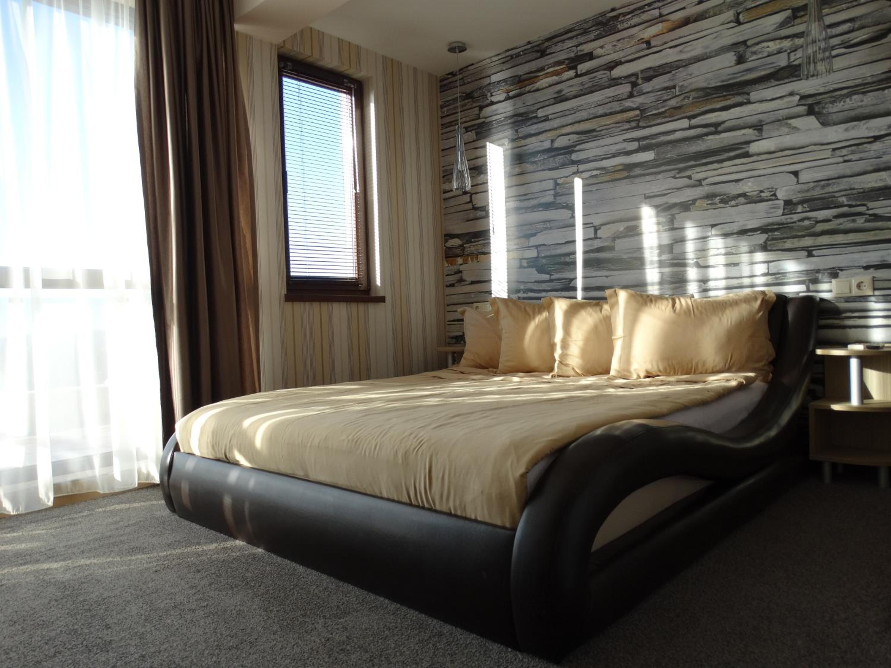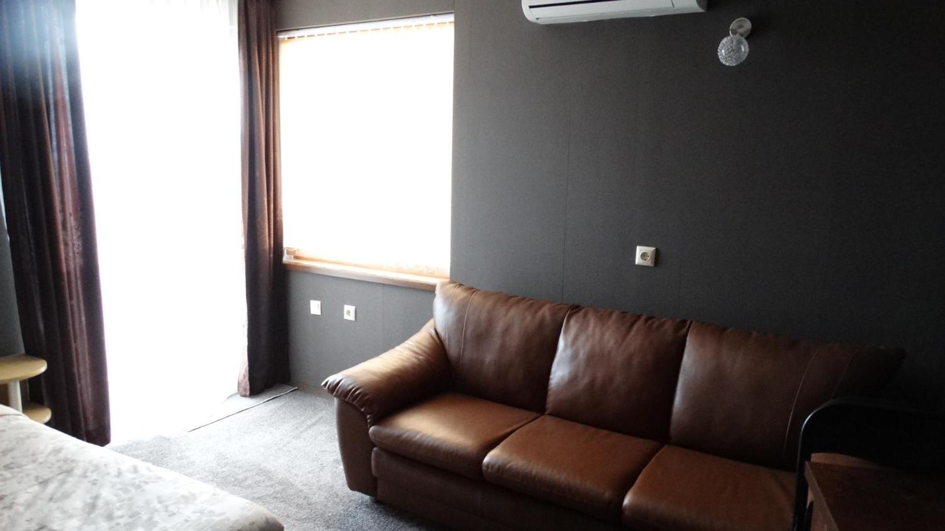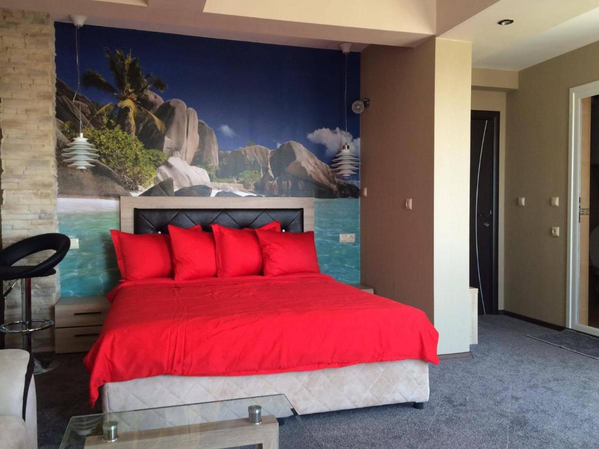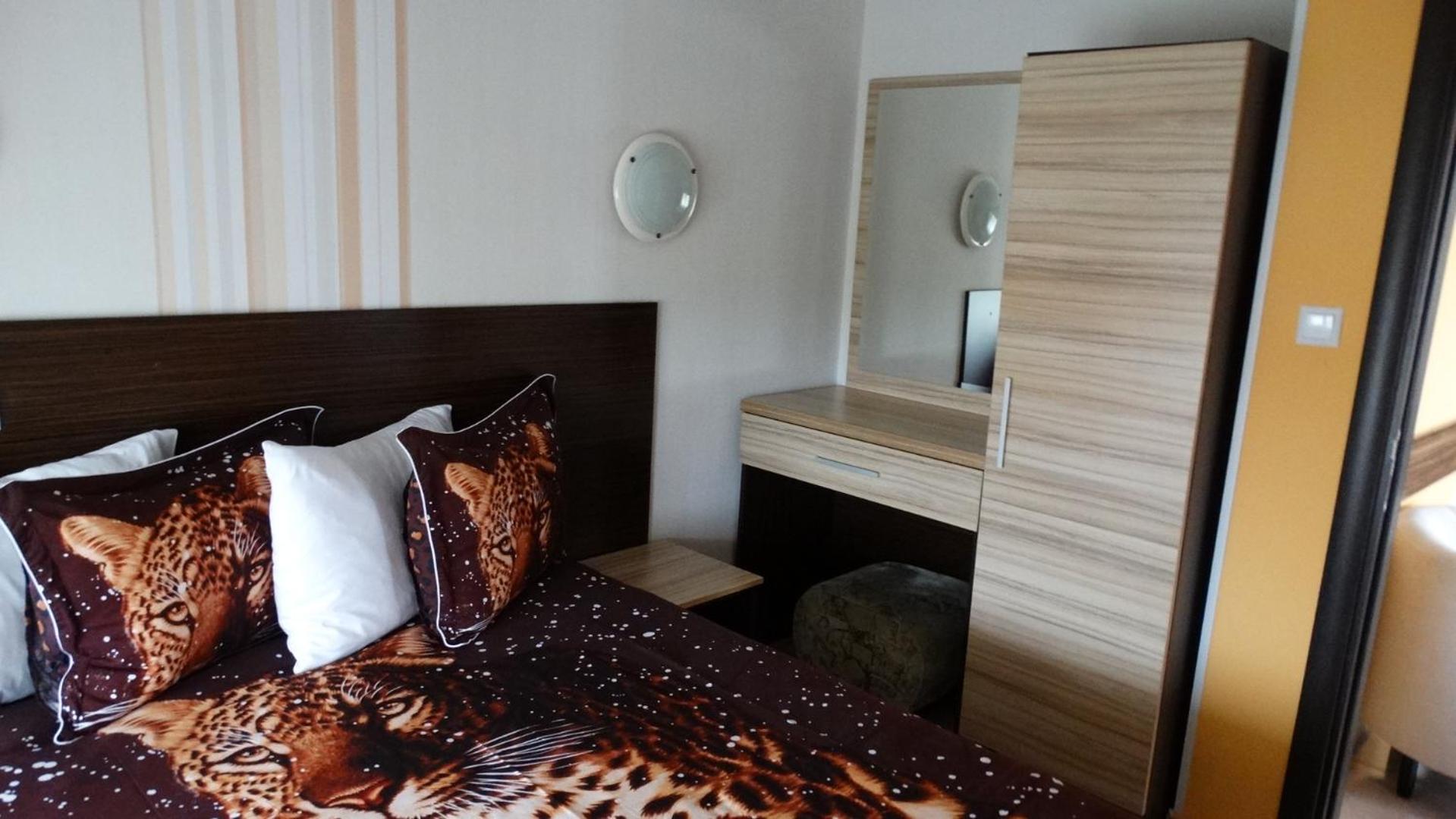 Hotel Lazur in Kiten offers comfortable rooms with air conditioning, balconies, and modern amenities. Some rooms even feature flat-screen TVs and spacious living areas, providing a luxurious stay for guests.