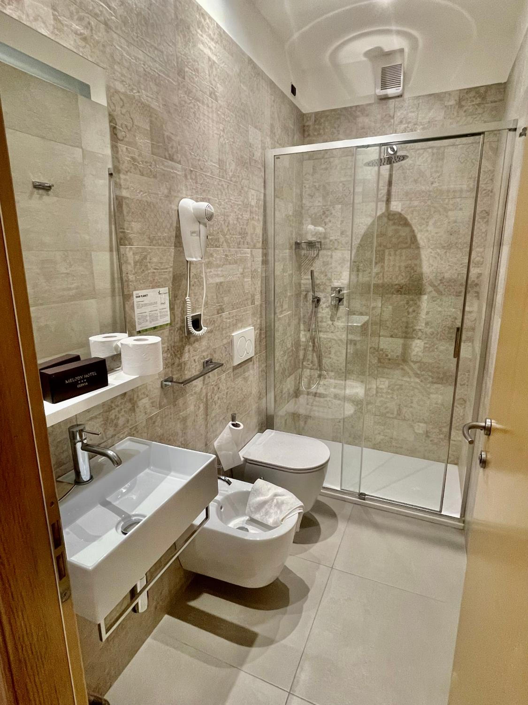 Nelle camere qualcosa da migliorare, un po' troppo basic. Nel bagno, porta rovinata da aggiustare.