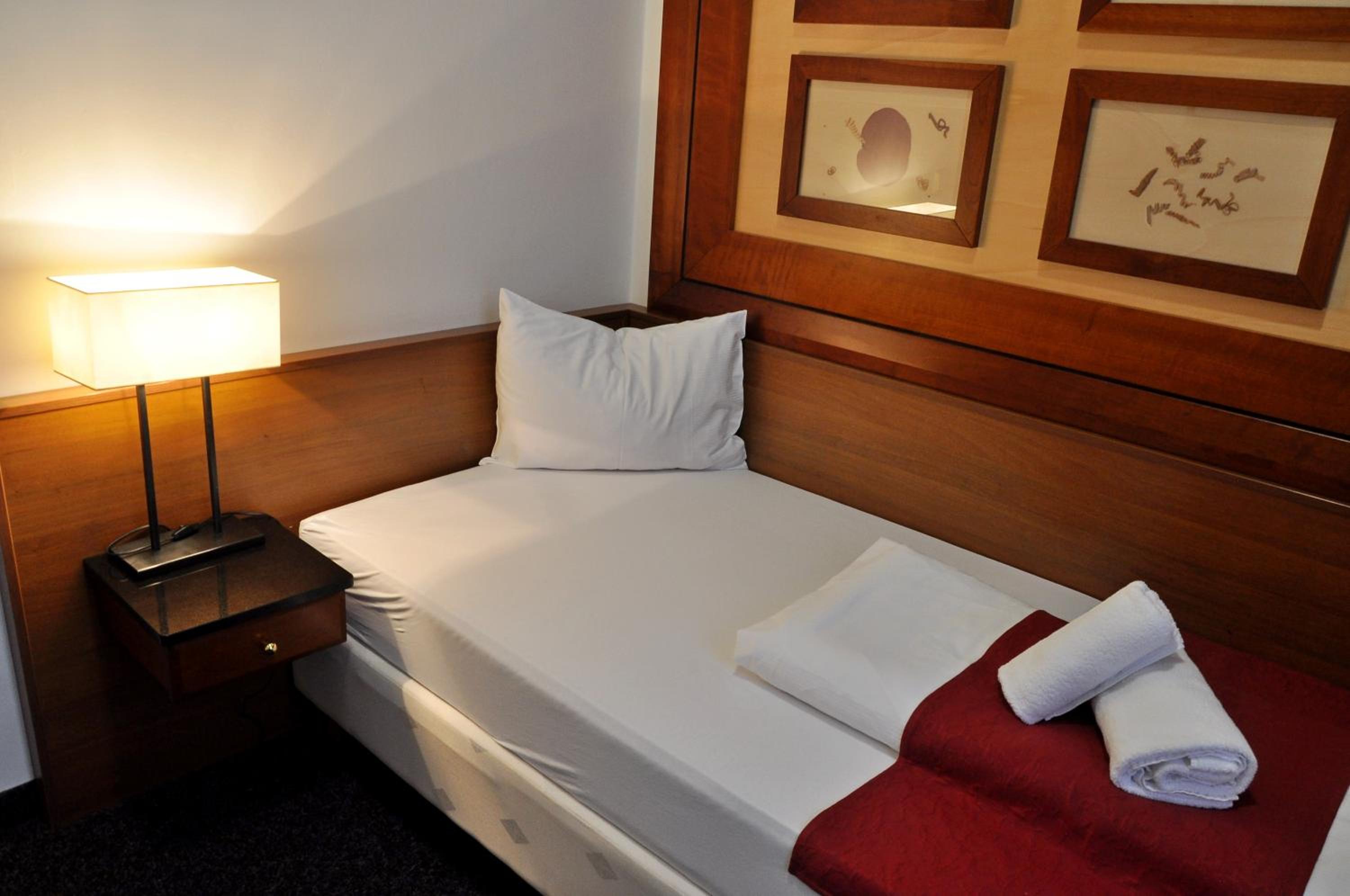 Krásný hotel s vkusným vybavení zapadajícím do historického centra,pohodlné matrace,velký a prostorný rodinný dvojpokoj,velice milý a vstřícný personál,restaurace přímo v hotelu,kde jsme si po trochu pozdějším příjezdu dali dobrou večeři a sklenku vína,děti ocenili "smažák" v nabídce :D