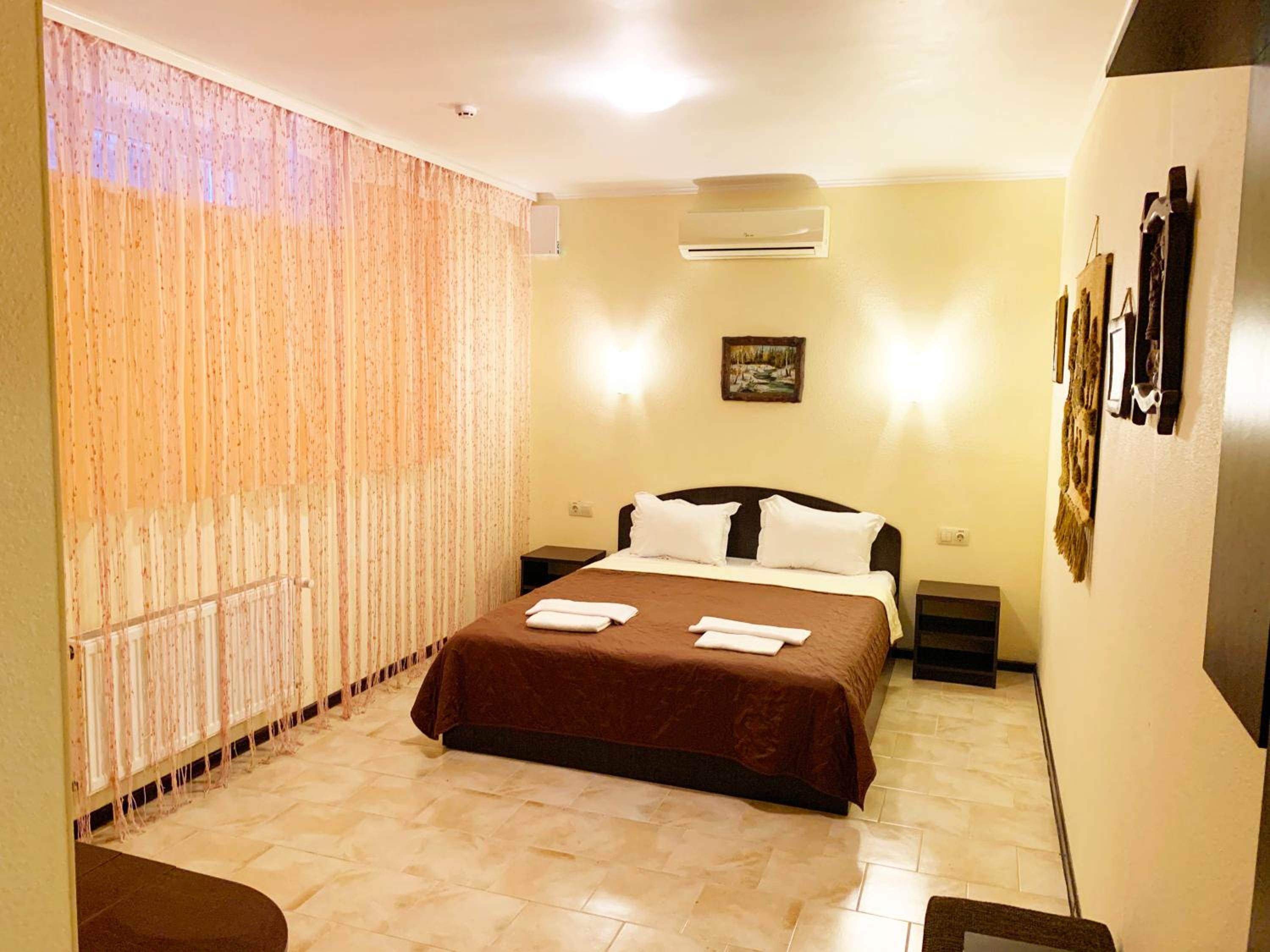 Номер чистий ,охайний,є все необхідне для проживання холодильник,кондиціонер