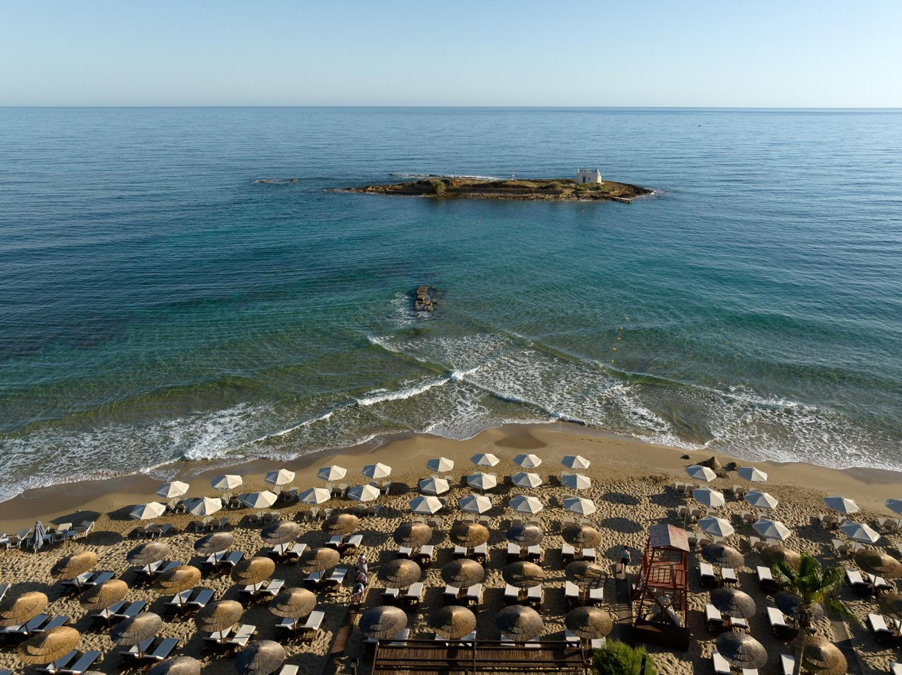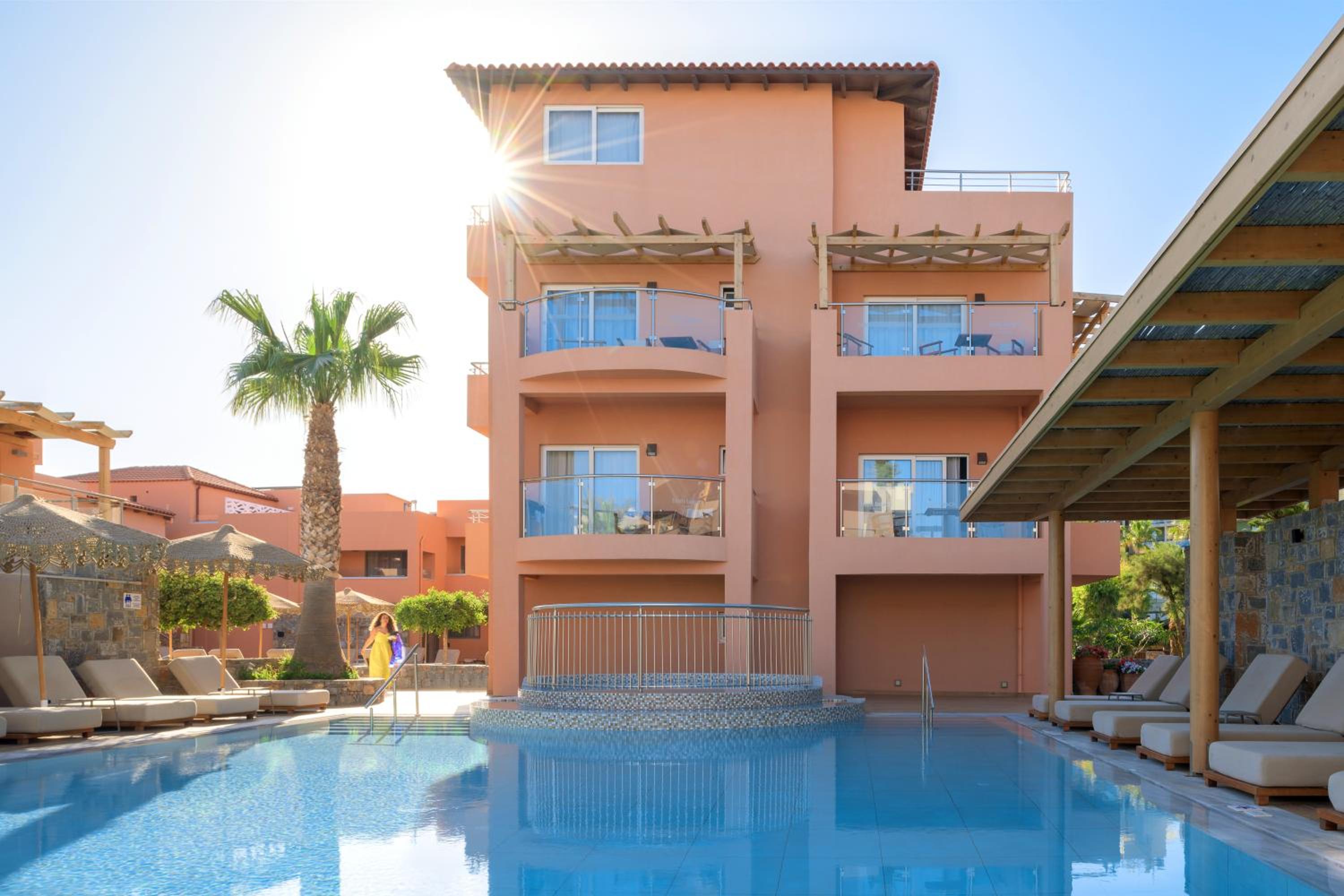 During our trip to Greece we stayed at 3 different properties and this had a good location if you are looking for a lively scene especially at night. The beach was beautiful but pretty busy and packed with people. We received a free room upgrade at check in which was spectacular and came with designated beach chairs.