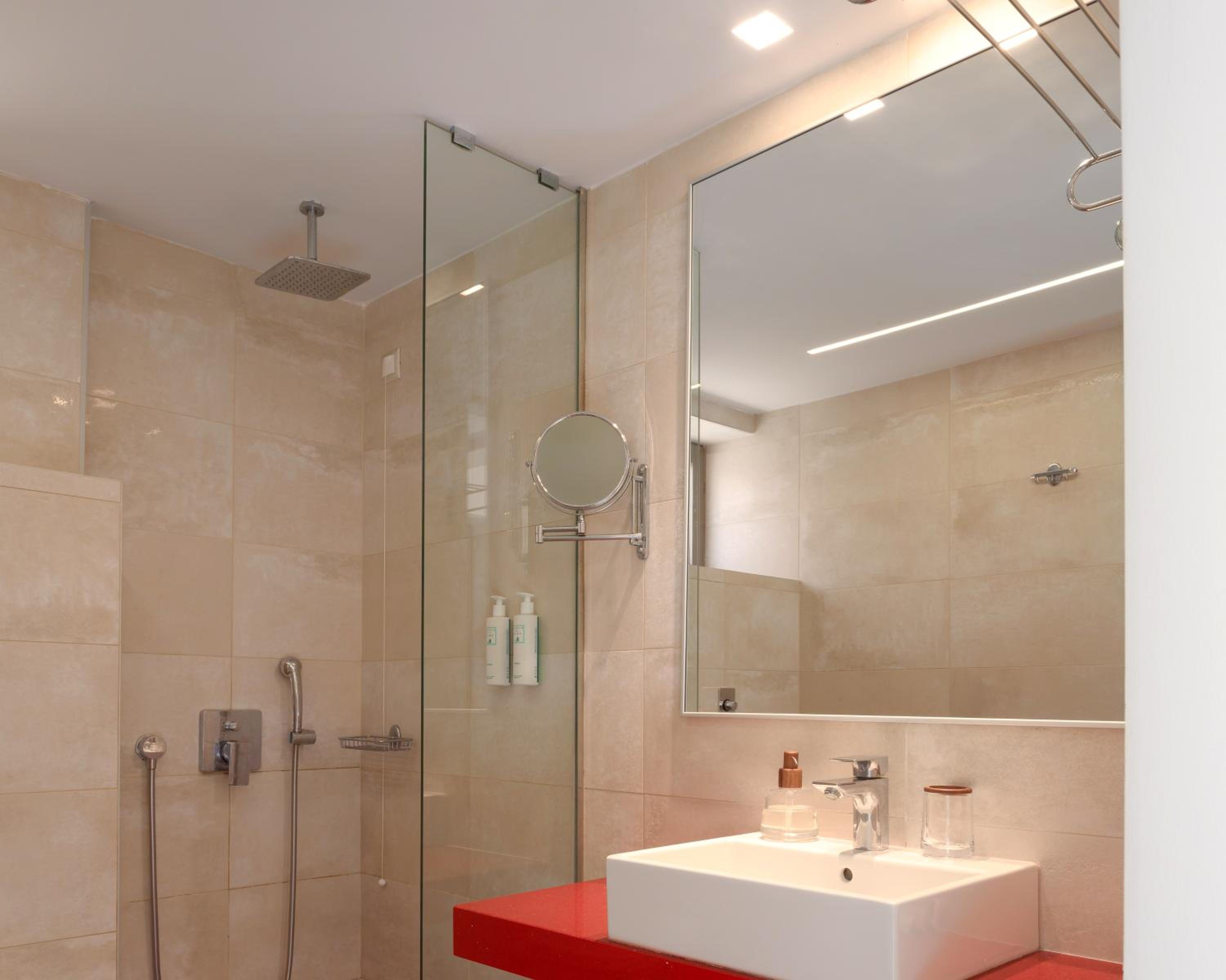 Indulge in the comfort of spacious rooms adorned with vivid colors and modern decor. Each room comes with a private bathroom, balcony, fridge, and LCD satellite TV for your convenience.