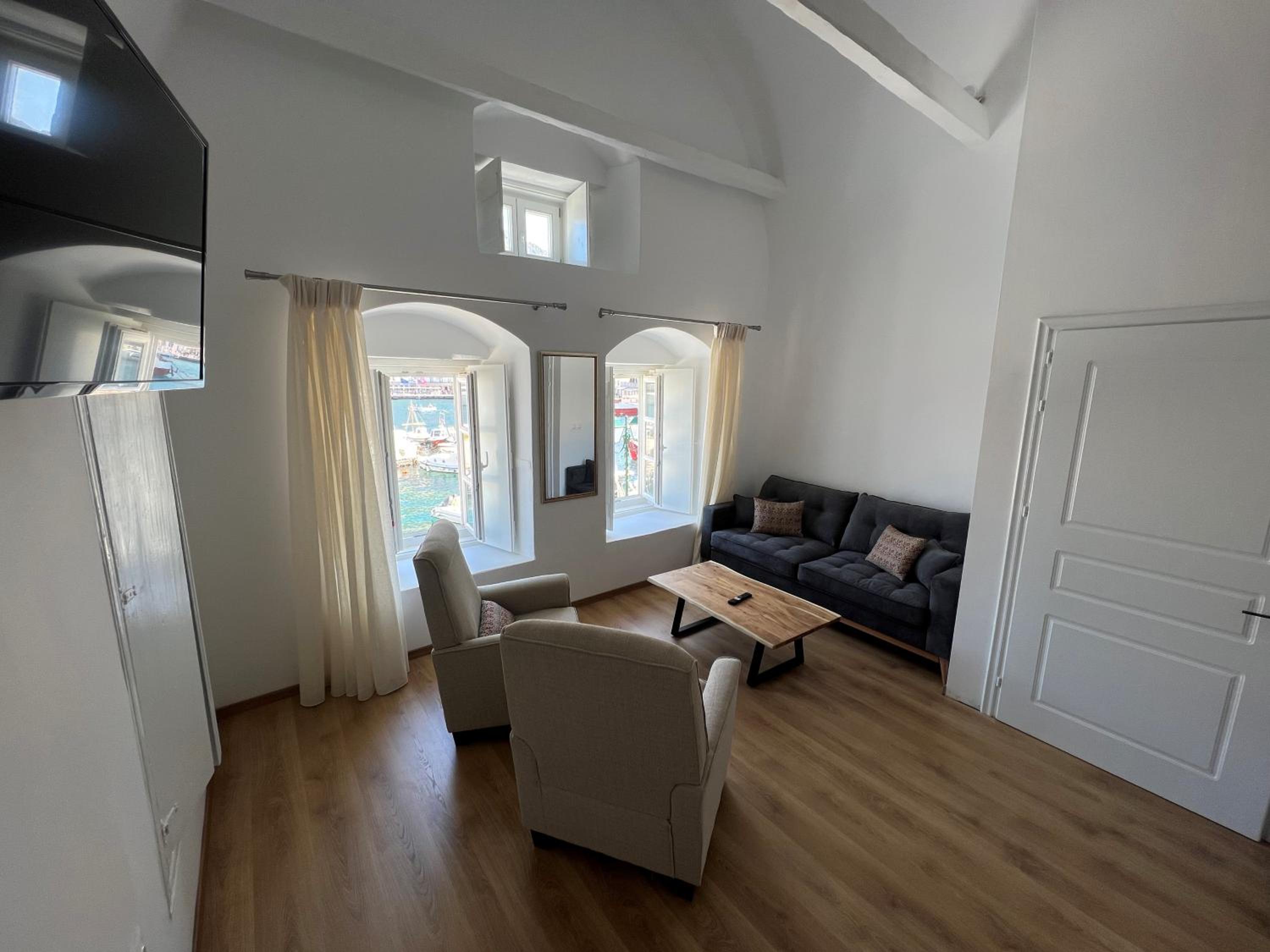 The location of the Douskos Port House was excellent, and the harbor view from our room was amazing!!