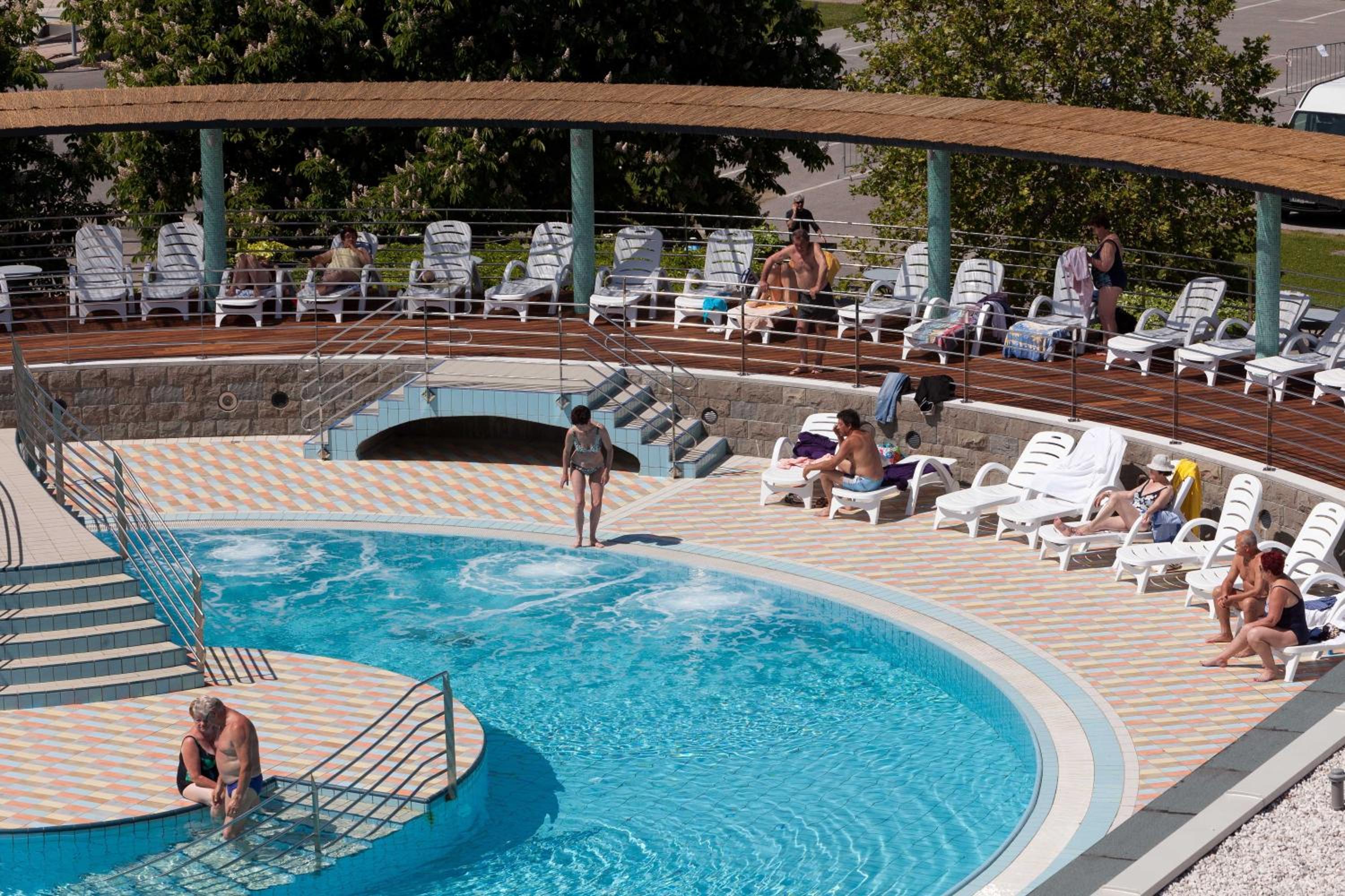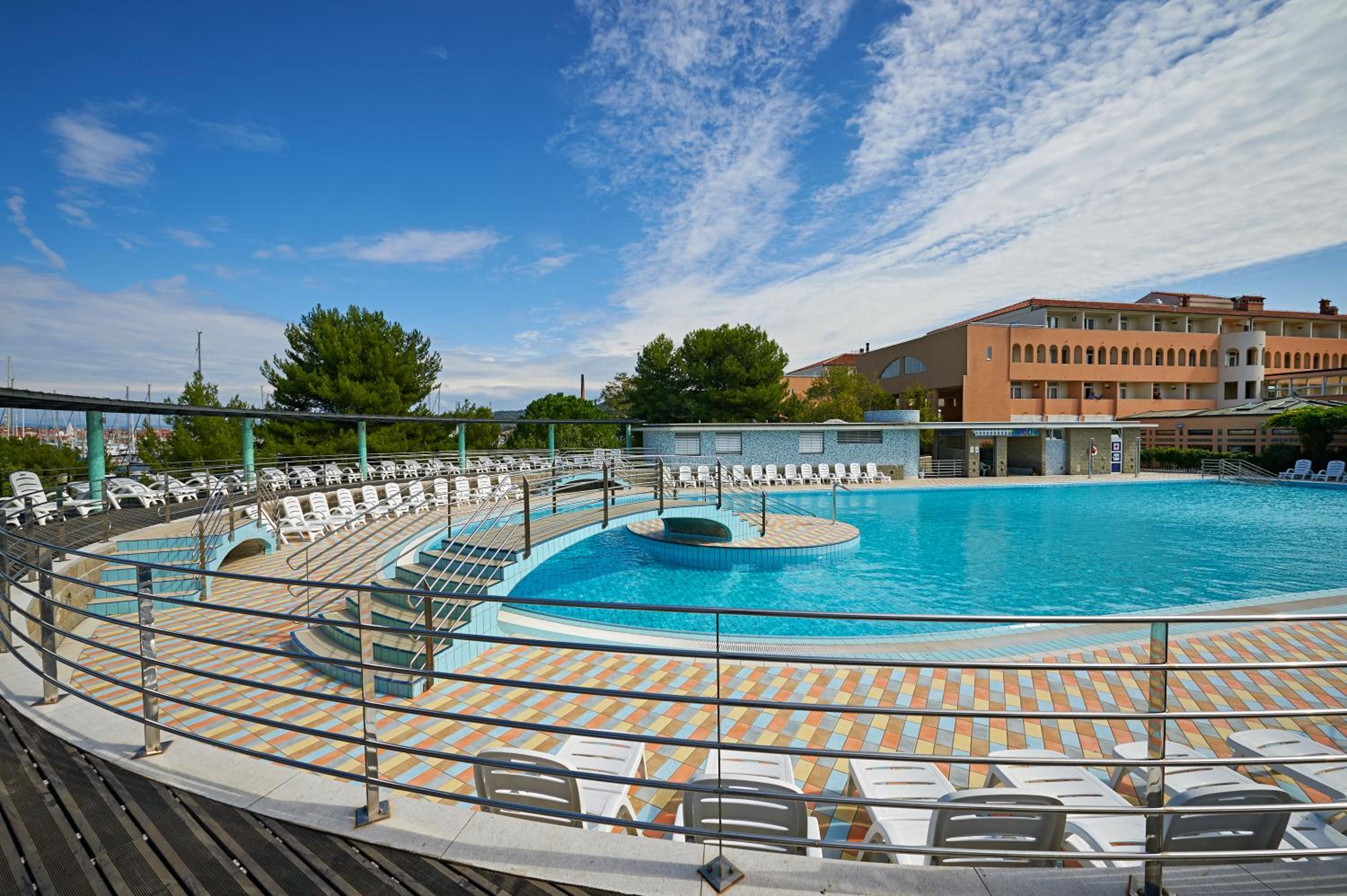 Hotel Delfin in Izola offers a luxurious stay with both indoor and outdoor pools, complete with sun loungers for ultimate relaxation. The free WiFi throughout ensures you stay connected during your visit.