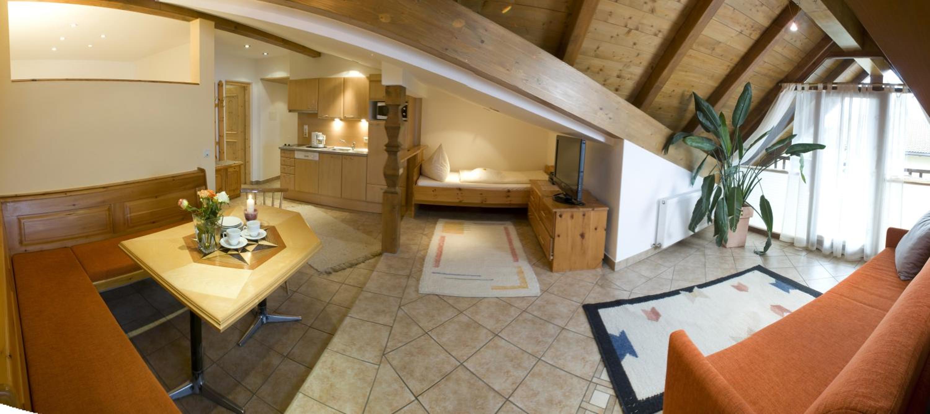 We stayed self-catering in this apartment. It's really for two people and we thank our hosts for setting it up for three. It's very clean and tidy and well equipped. It has a nice balcony and has a great Tyrolean style. There's plenty of parking. The hosts are exceptional and we very much enjoyed meeting Gunther and being able to taste his schnapps in his distillery. It's well located for the motorway, train station, Innsbruck and River Inn villages and valleys.