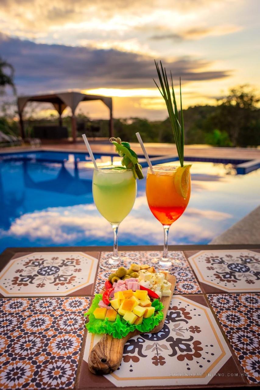 Indulge in the stunning infinity edge outdoor pool and savor delicious meals at the on-site restaurant at Pousada Boyrá.