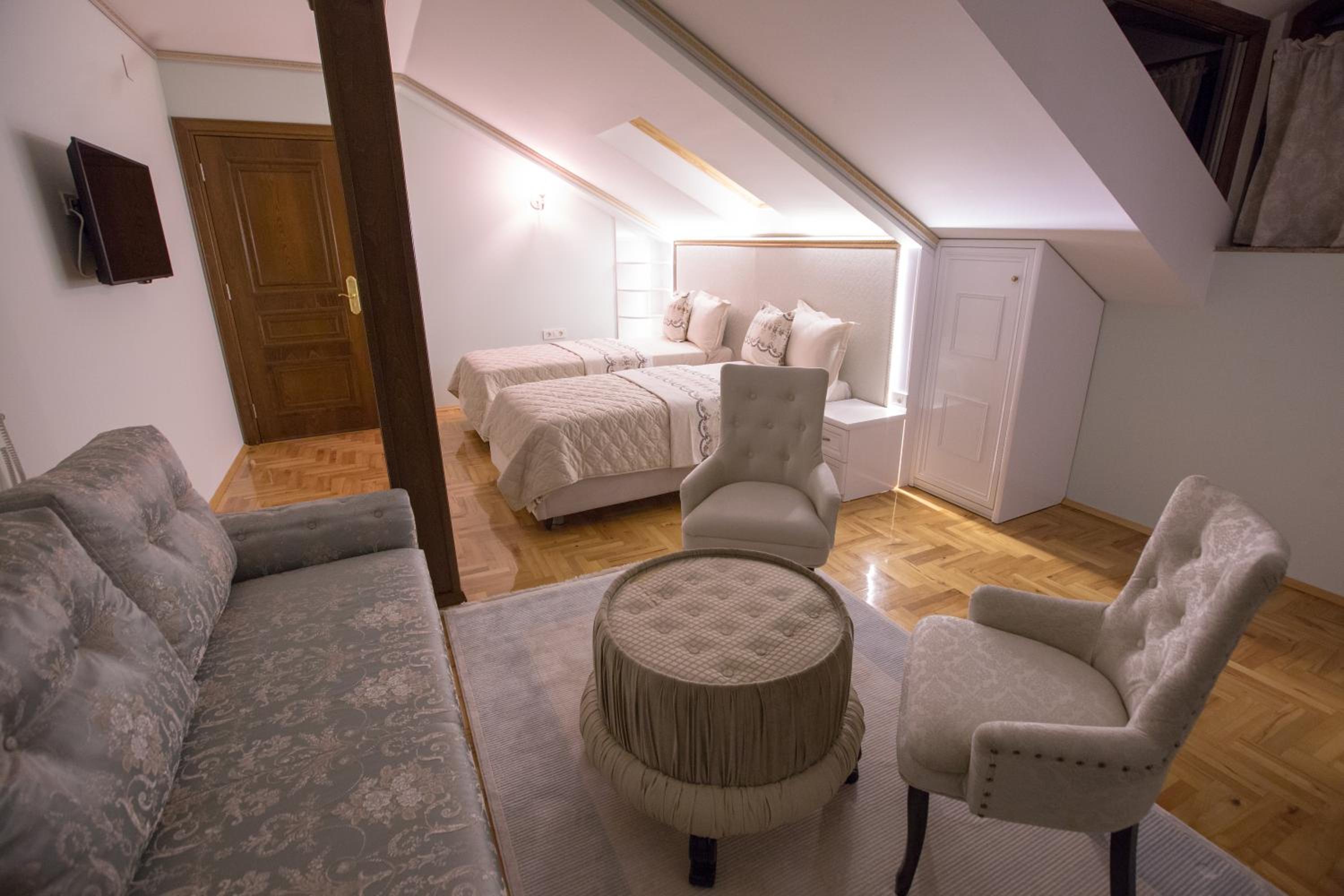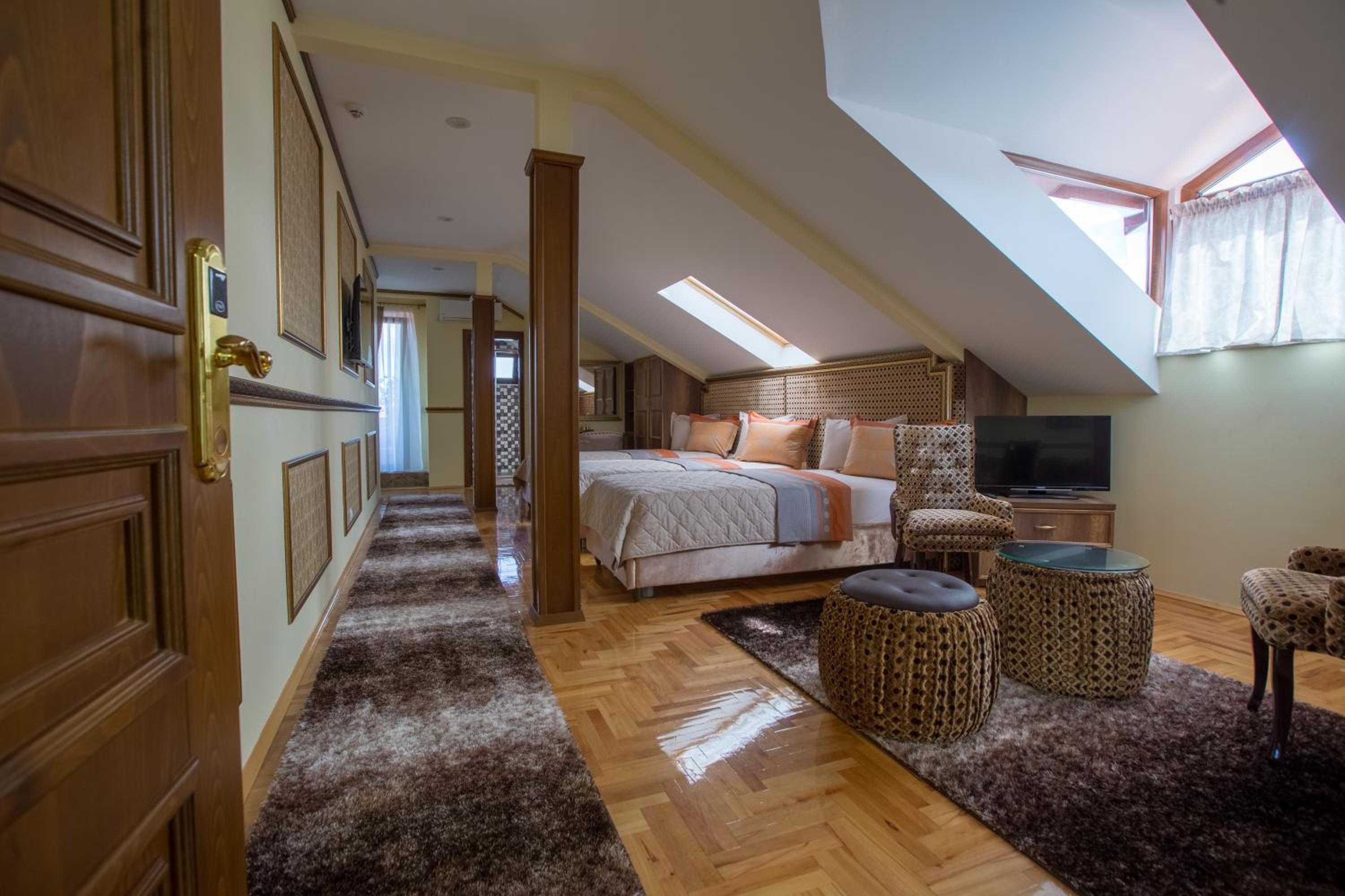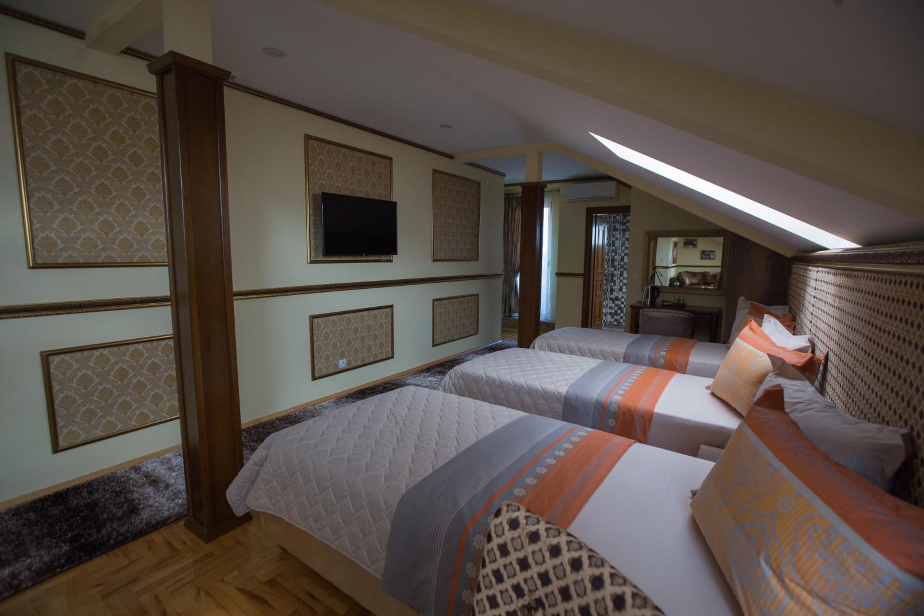 Luxurious Amenities: Indulge in air-conditioned rooms with modern amenities such as a flat-screen TV, minibar, and private bathroom at Robevski luxury rooms.