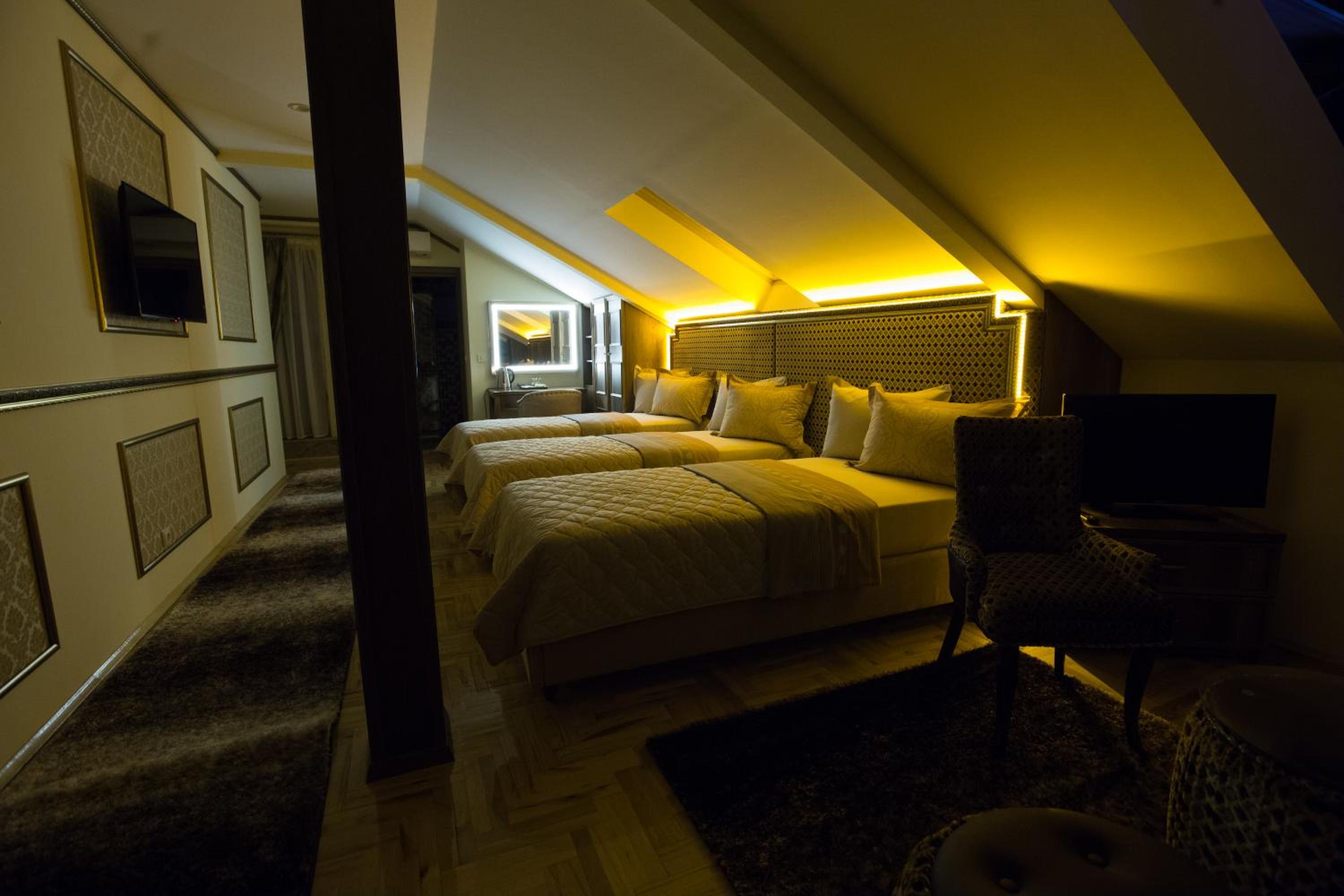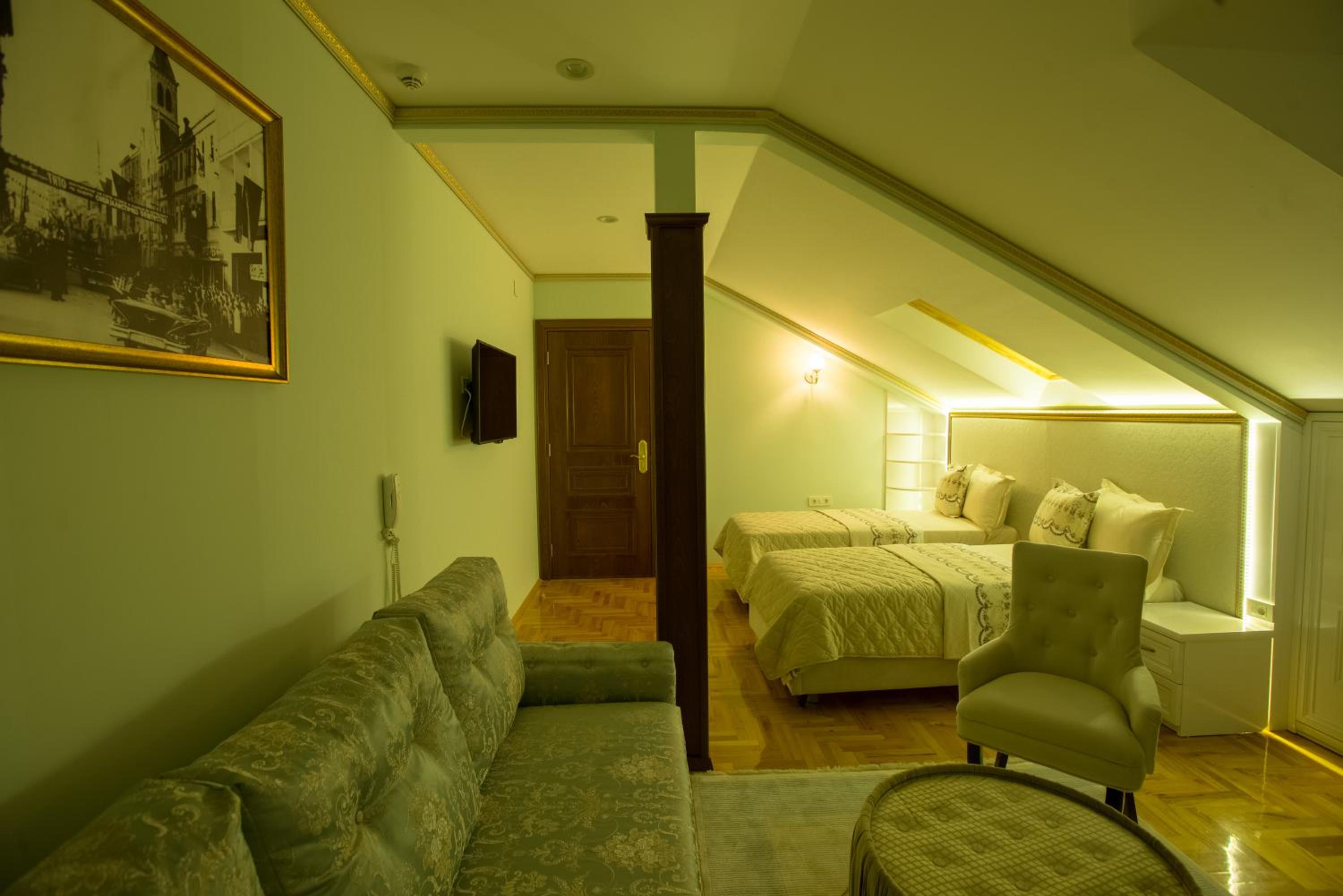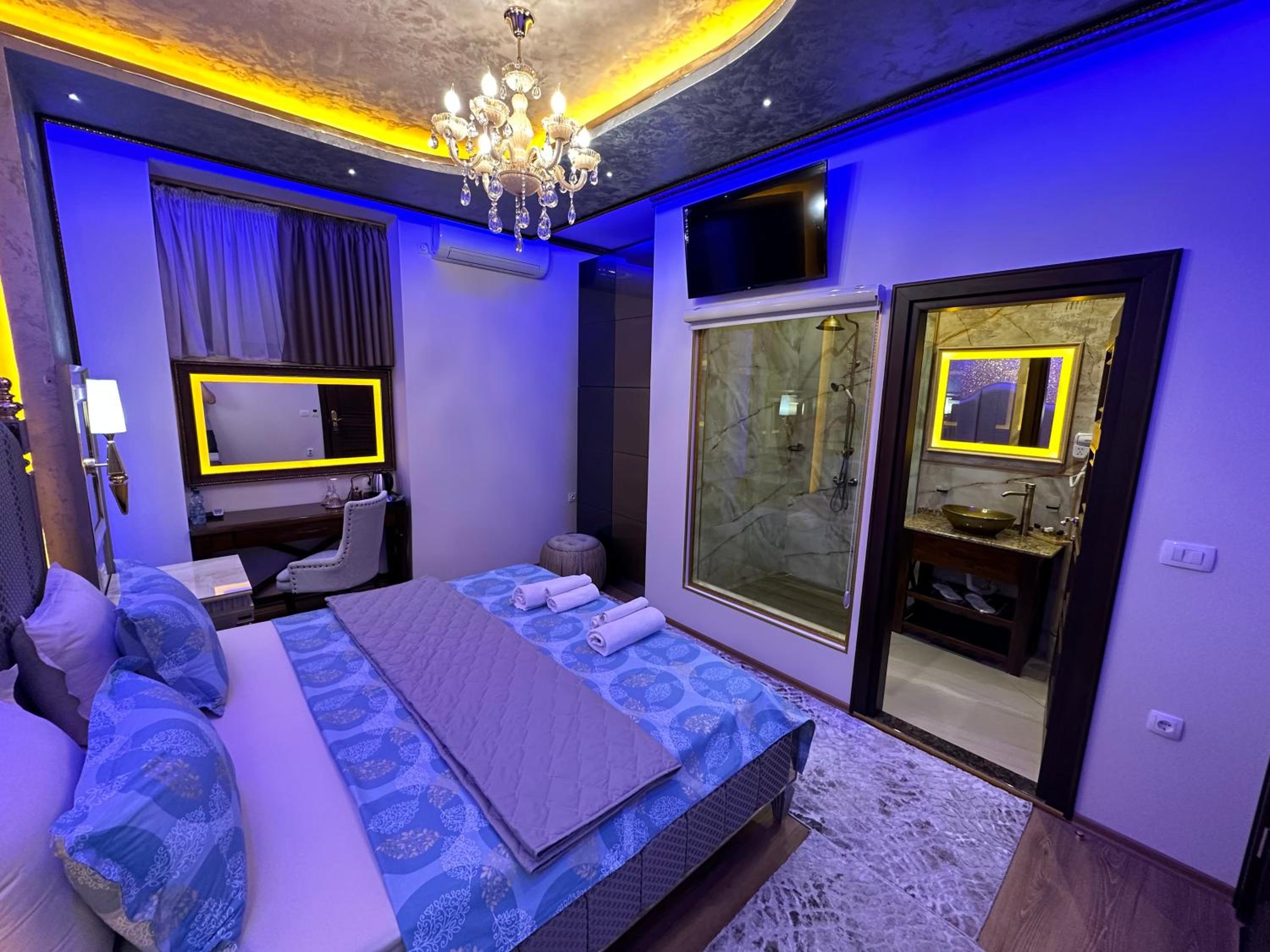 Luxurious Amenities: Indulge in air-conditioned rooms with modern amenities such as a flat-screen TV, minibar, and private bathroom at Robevski luxury rooms.
