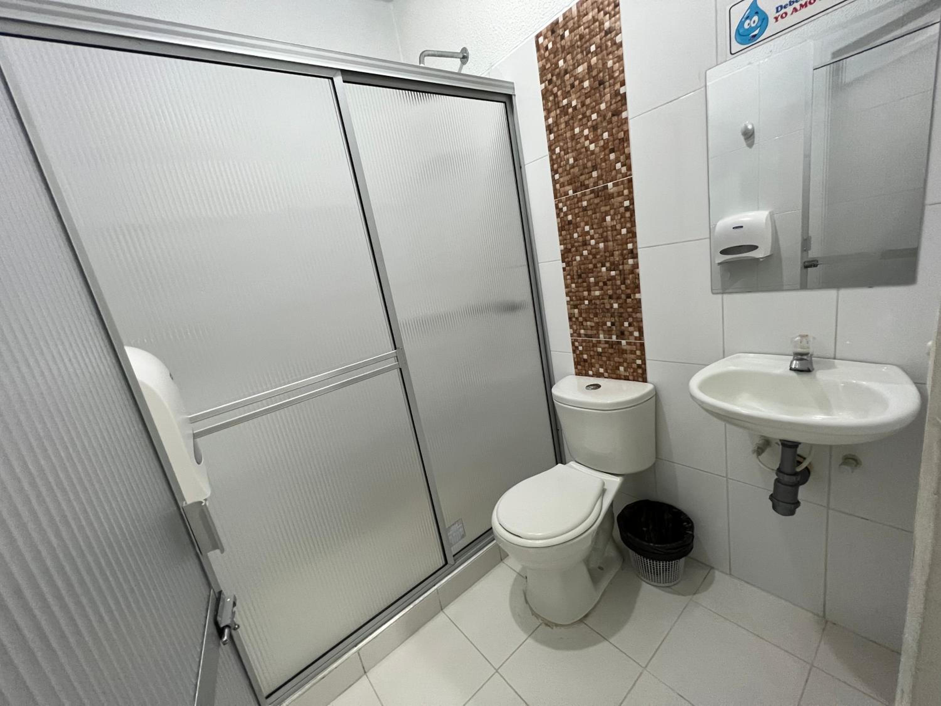 La zona es cercana a la plaza y el olor a la entrada a lixiviado es fuerte, pero afortunadamente ya arriba no se siente el olor. En los baños falta un lugar para poner frascos o elementos de aseo personal.