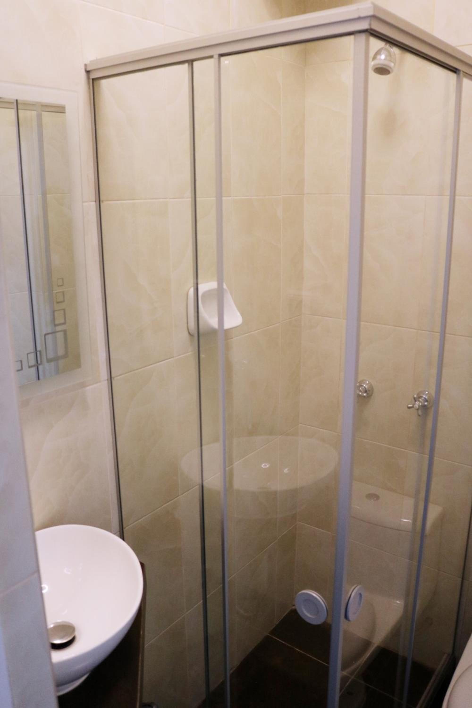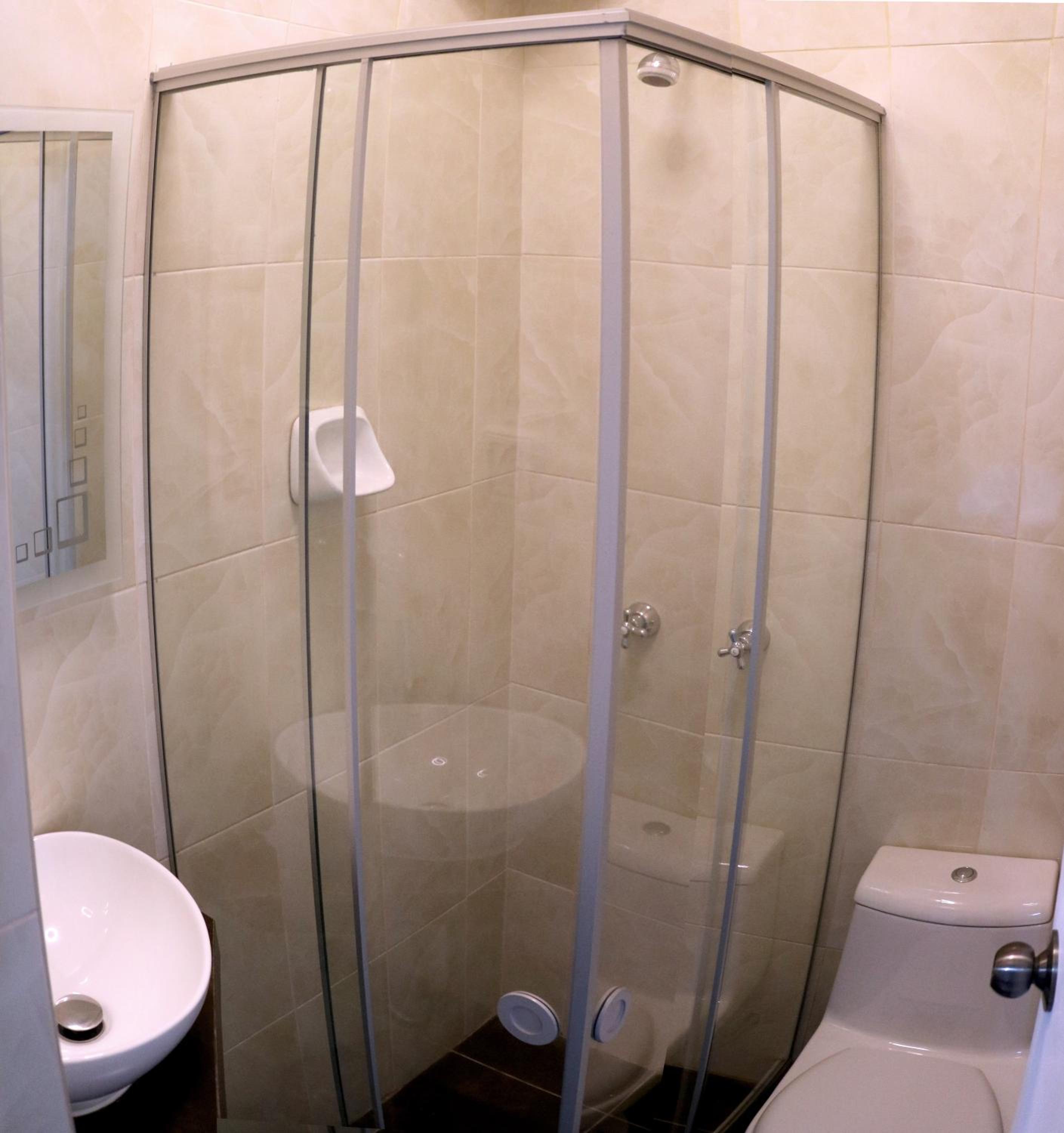 Chambre étouffante même avec le ventilateur car pas de fenêtre et il fait chaud dans cette ville. La vitre de protection de douche est presque impossible à fermer d'où un arrosage intempestif du sol. Il ne reste plus que le "trou" de la poignée de la porte de la salle de bain...'