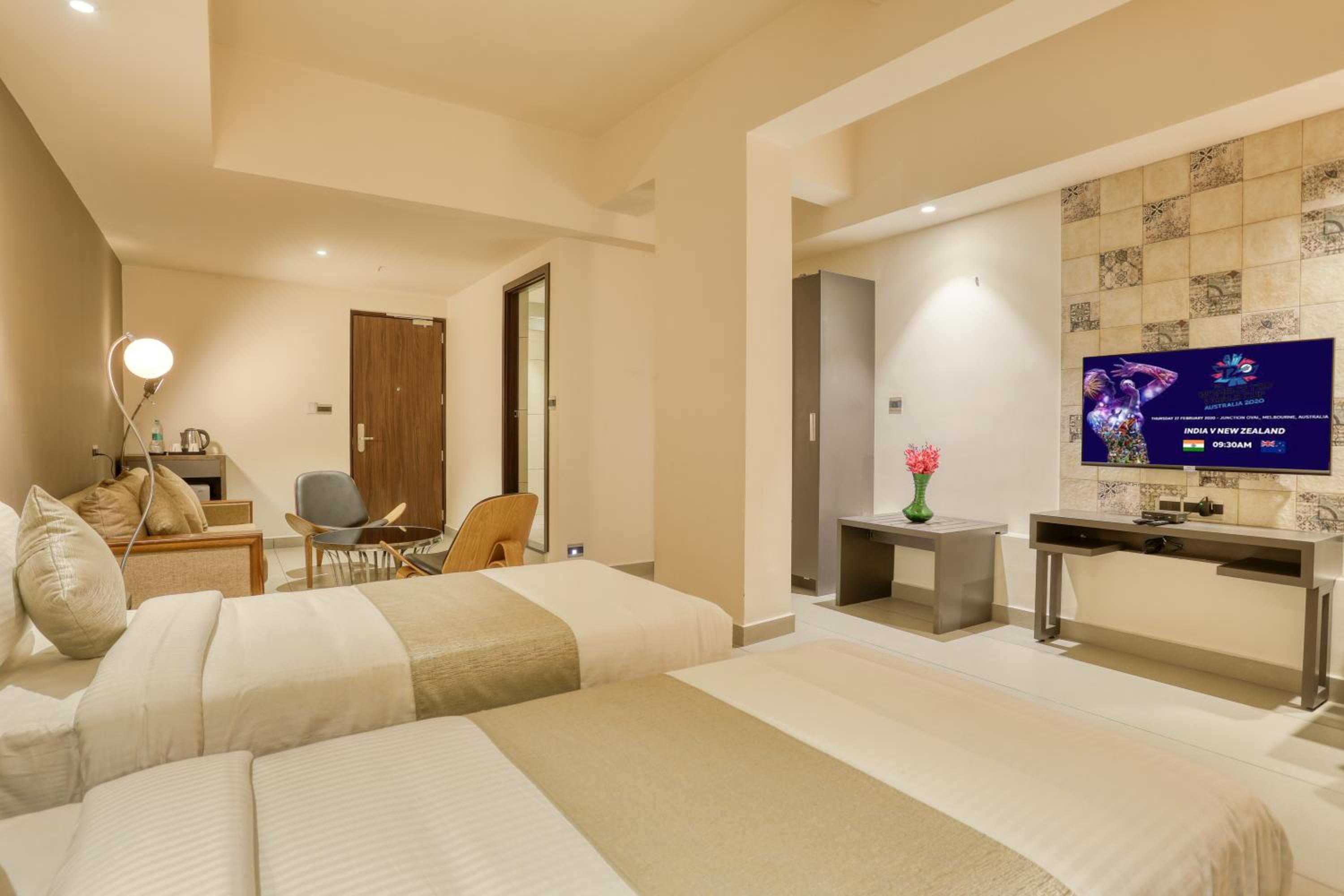 Conveniently located just 4 km from Cochin International Airport, the hotel provides free shuttle service, making travel hassle-free. Guests can also dine at the on-site restaurant and enjoy the shared lounge area.