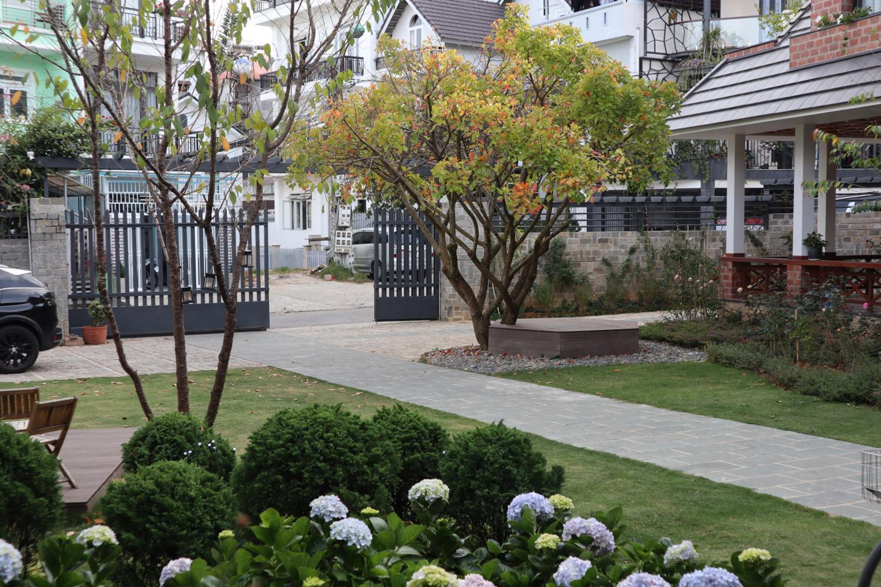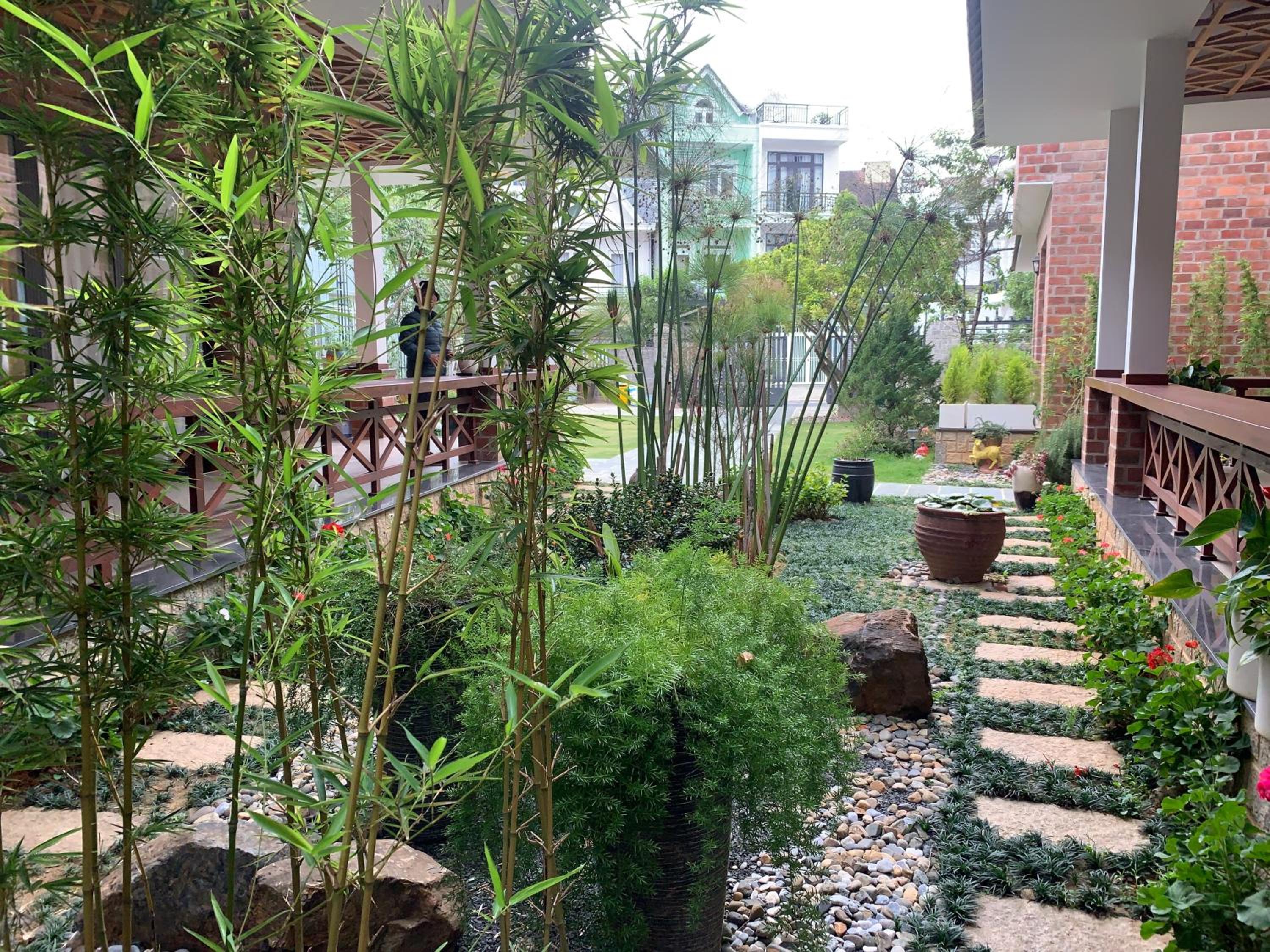Hoang Loc Villa in Da Lat offers a peaceful retreat with garden views from the terrace. Each room is equipped with modern amenities including a flat-screen TV and a private bathroom with complimentary toiletries.