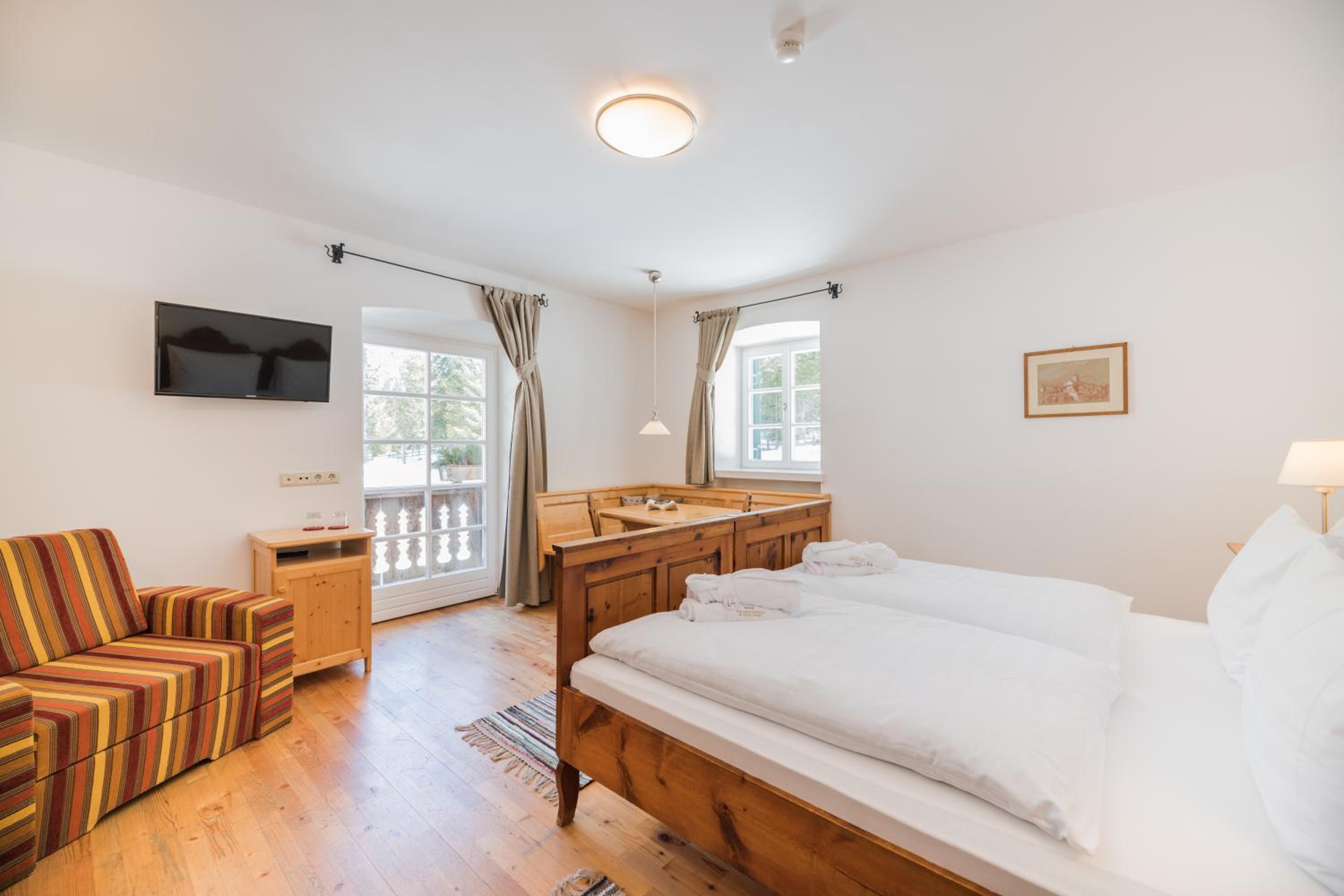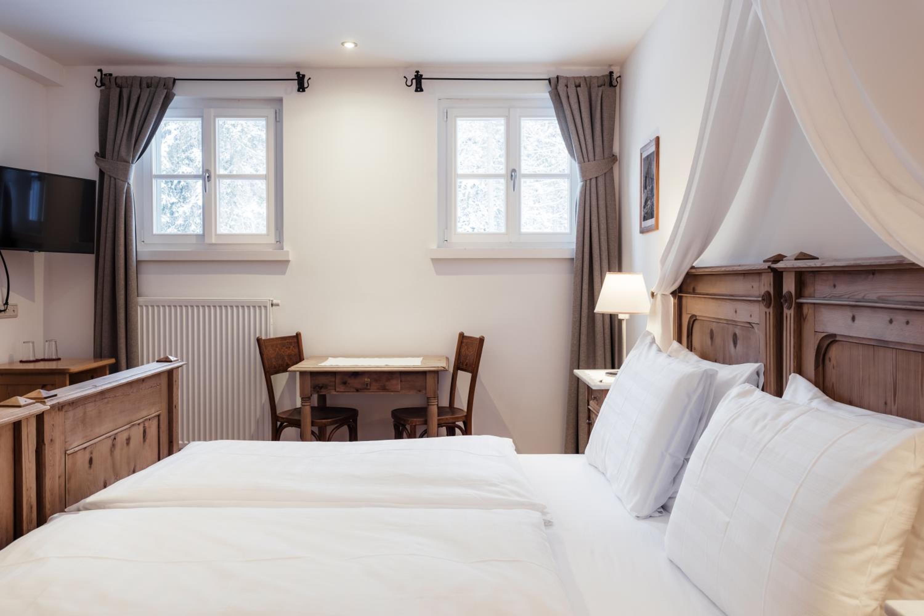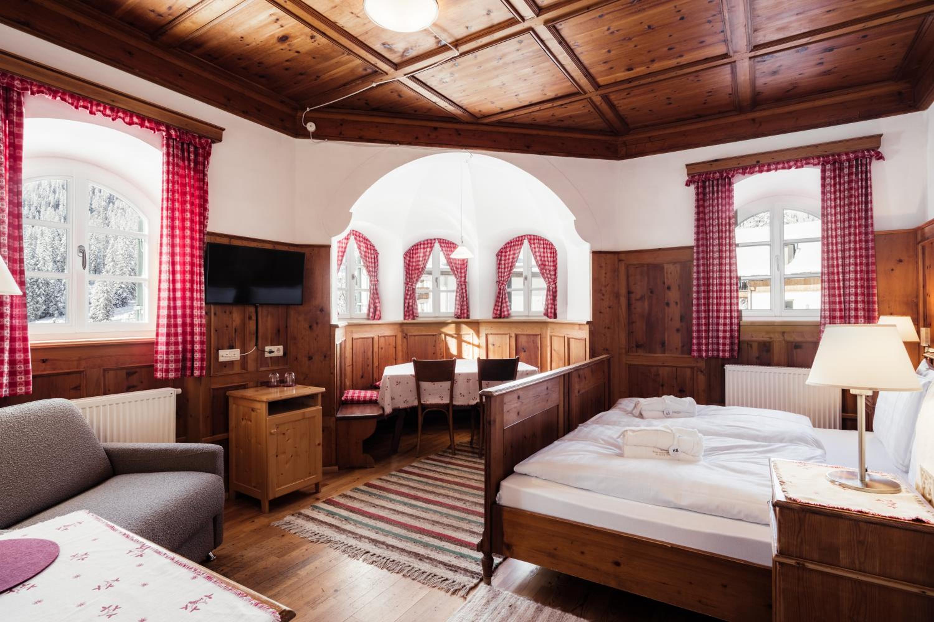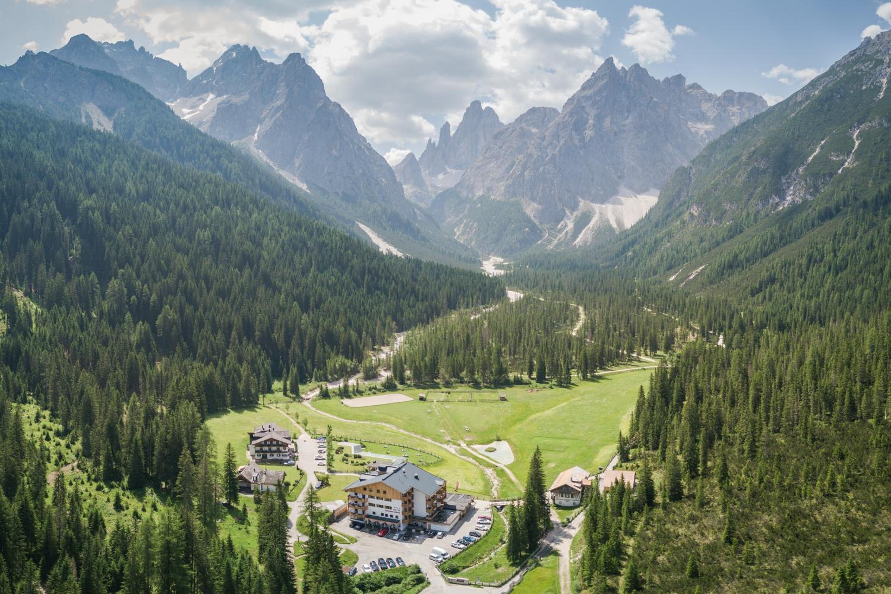 Nestled in the heart of Tre Cime National Park, Hotel Dolomitenhof & Chalet Alte Post offers a tranquil escape with its wellness center and two inviting swimming pools. The interconnected Dolomitenhof and Alte Post buildings boast comfortable rooms with modern amenities, some featuring stunning southern views. The authentic Swiss Stone Pine Wood furnishings in the Dolomitenhof and traditional alpine decor in the Chalet create a charming atmosphere for guests.