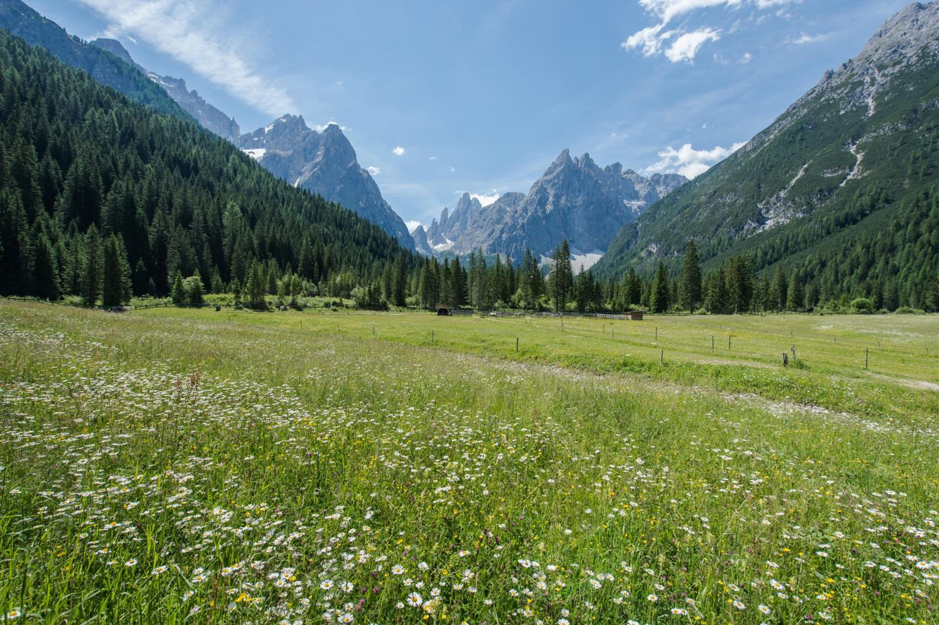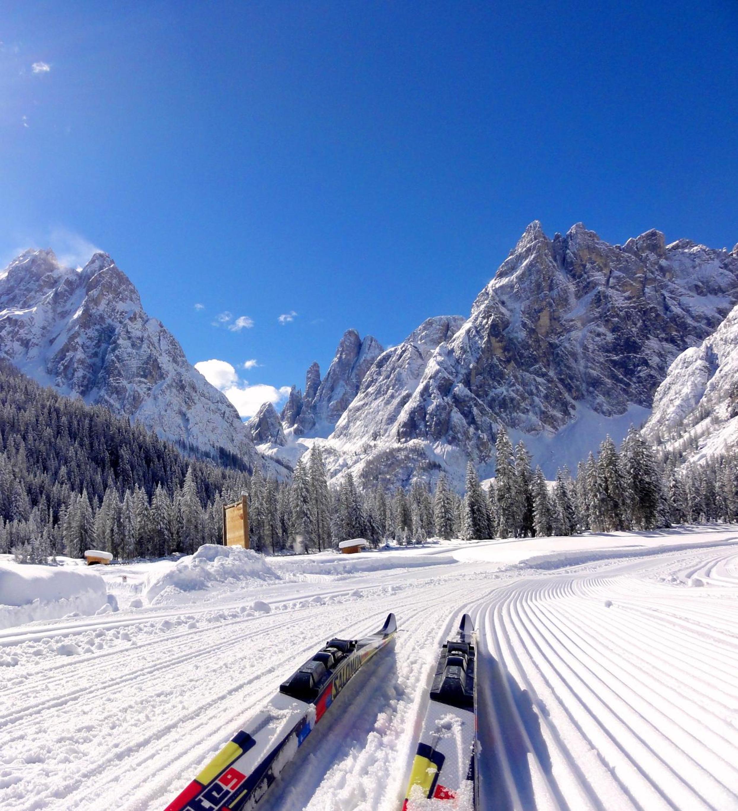 Vista spettacolare sulle Dolomiti di Sesto, posto ideale per lo sci di fondo.
