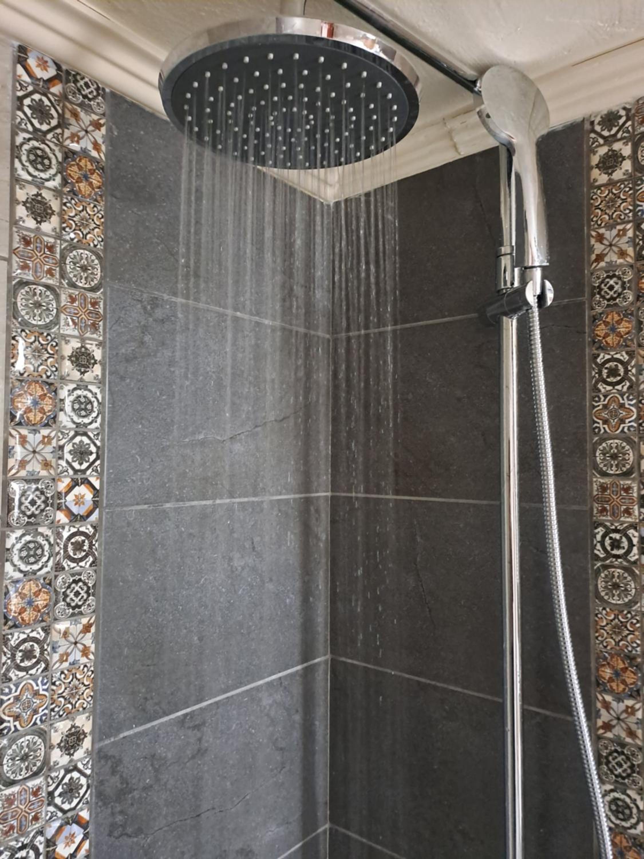 la douche est collé au toilette