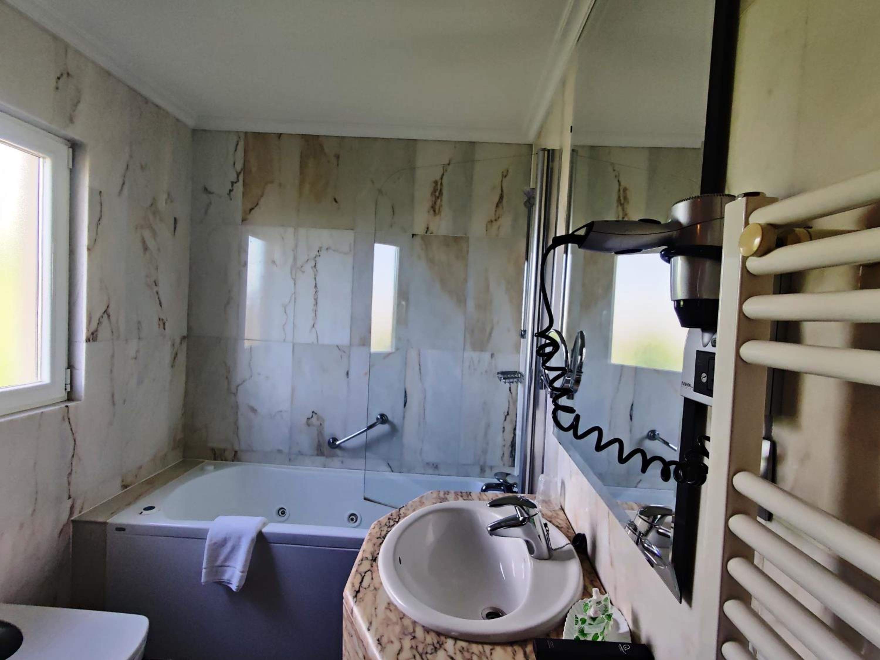 The rooms at Hotel Leonor Mirón are elegantly designed with carpeted floors, cable TV, free Wi-Fi, and a minibar. The private bathrooms are equipped with a hairdryer and complimentary amenities for your convenience.