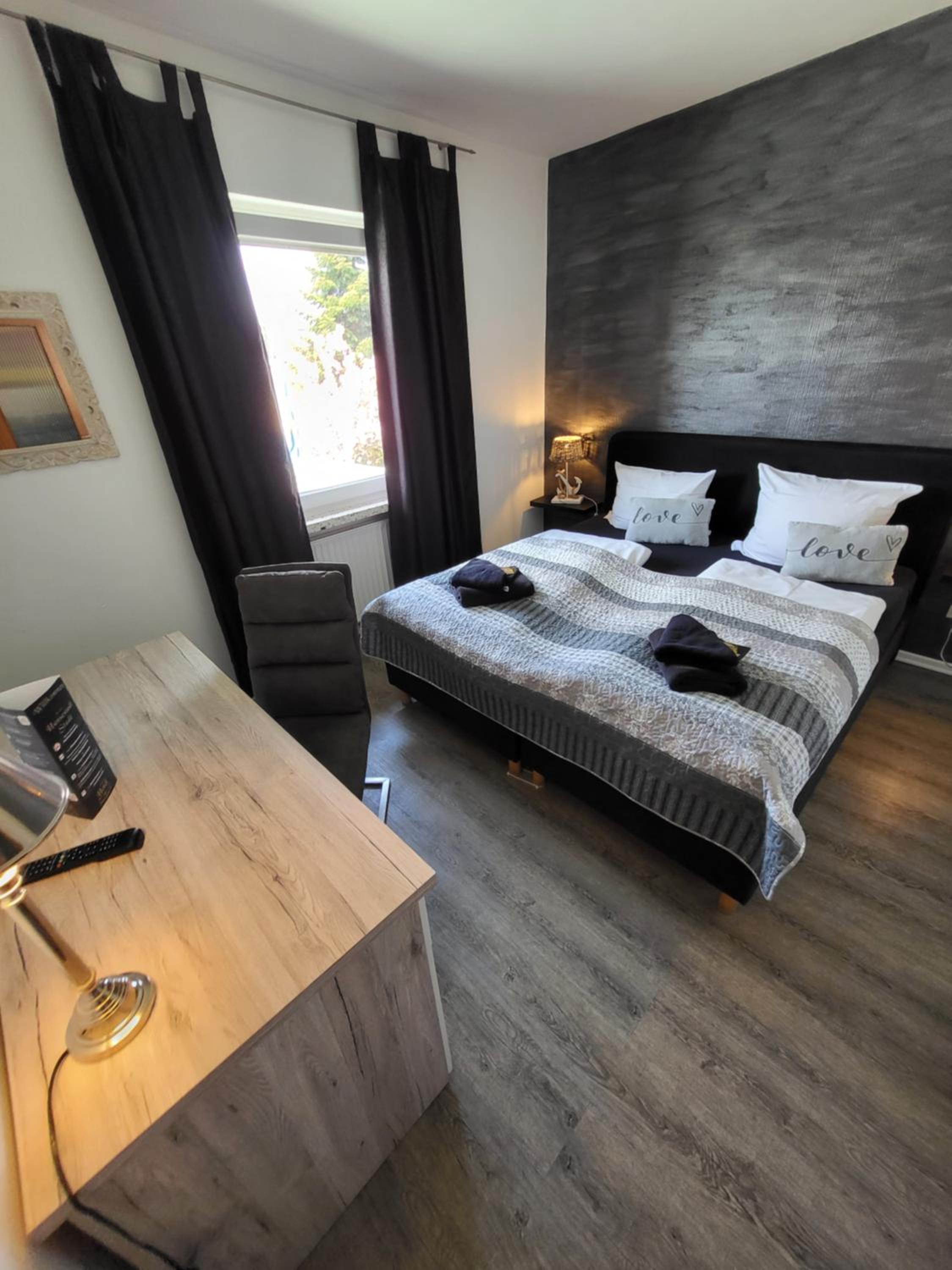 Ehemals "Schwedenkrone" hat sich das gemütlich eingerichtete Hotel "Am schwarzen Berg" deutlich gemausert. Am Eingang befindet sich ein modernes, und wirklich einfache gehaltenes, Check in -System, bei welchem mühelos der Schlüssel ausgegeben und elektronisch, die von der Stadt Stade geforderte, Übernachtungssteuer, kassiert wird.